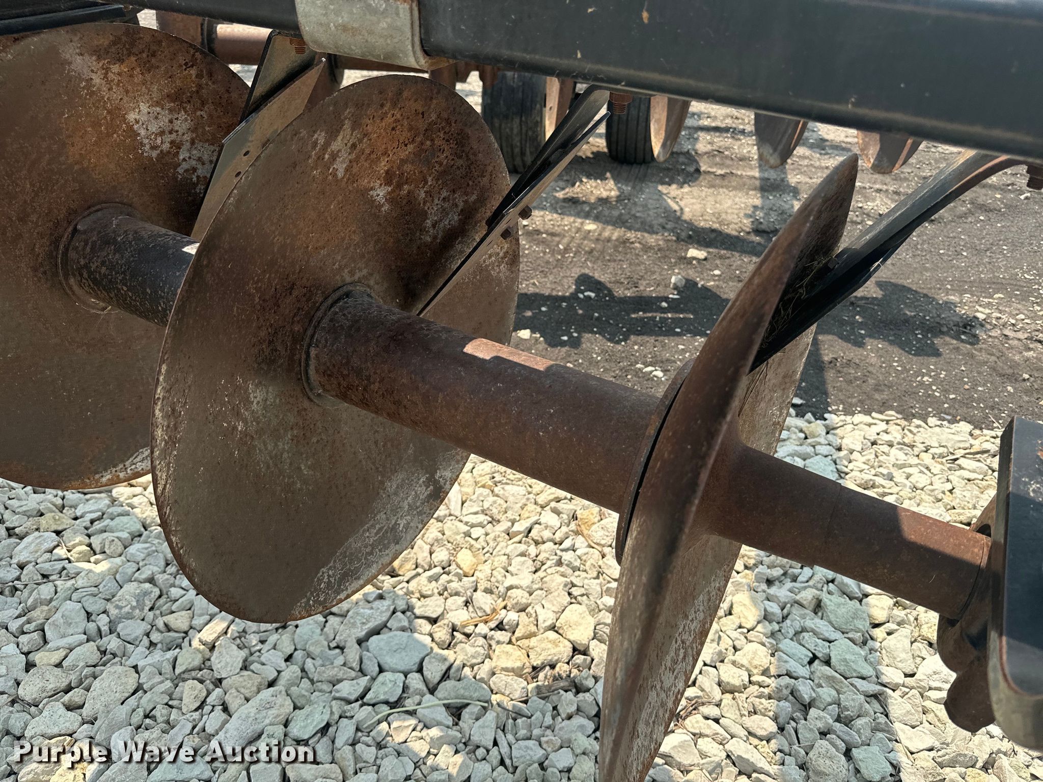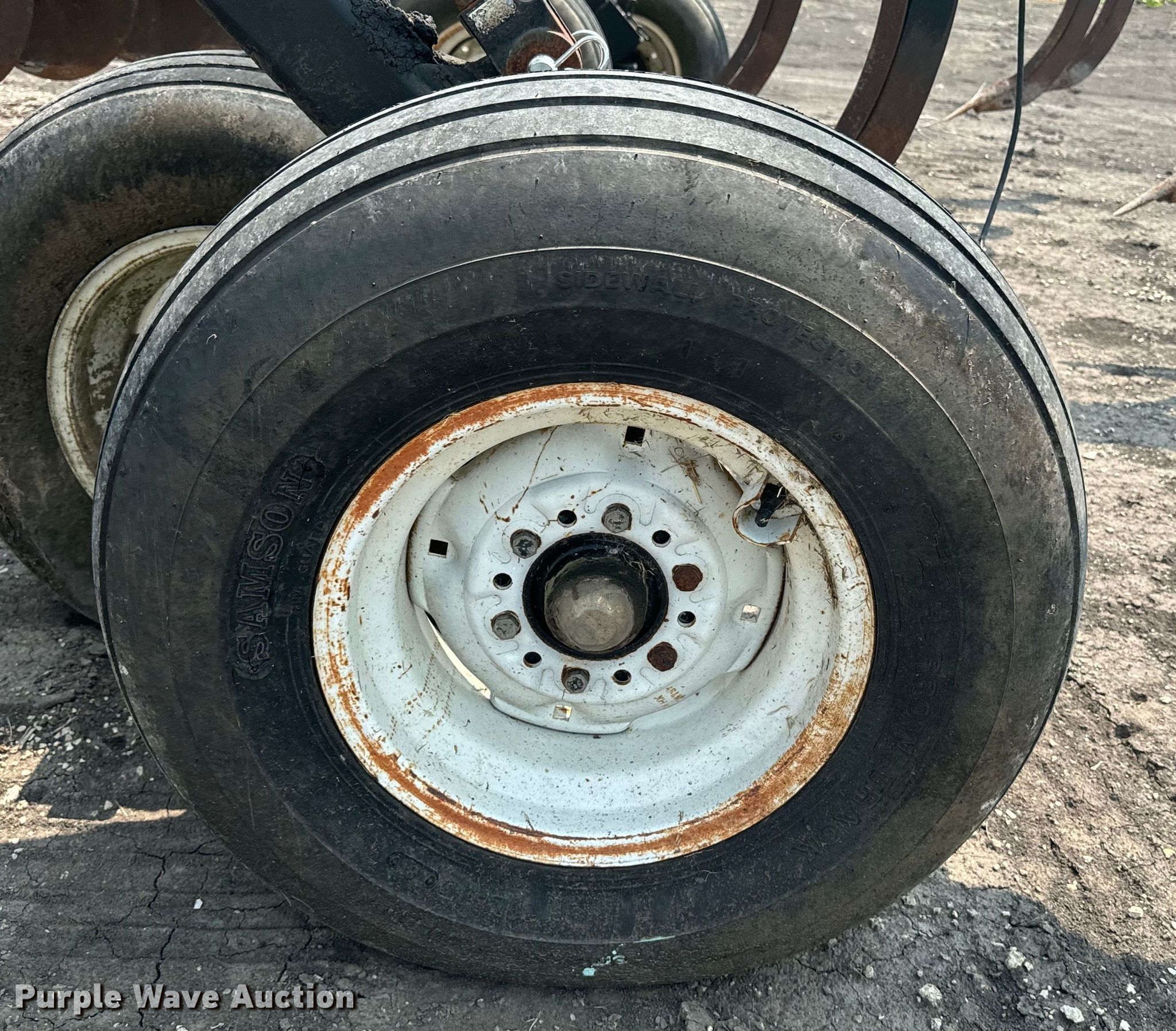 Landoll 2217-7-30 disk ripper. Overall width: 18' 6", Serial: 13G9800309. Features Blade diameter Front: 21", Spacing: 14.5", Disk scrapers, Rippers: 7 Length: 24", Spacing: 29", Operation Hydraulic lift, Leveler: Manual. Tires Tire size: 11L-15. White Brothers Farm & Livestock. Belvue , KS 66407