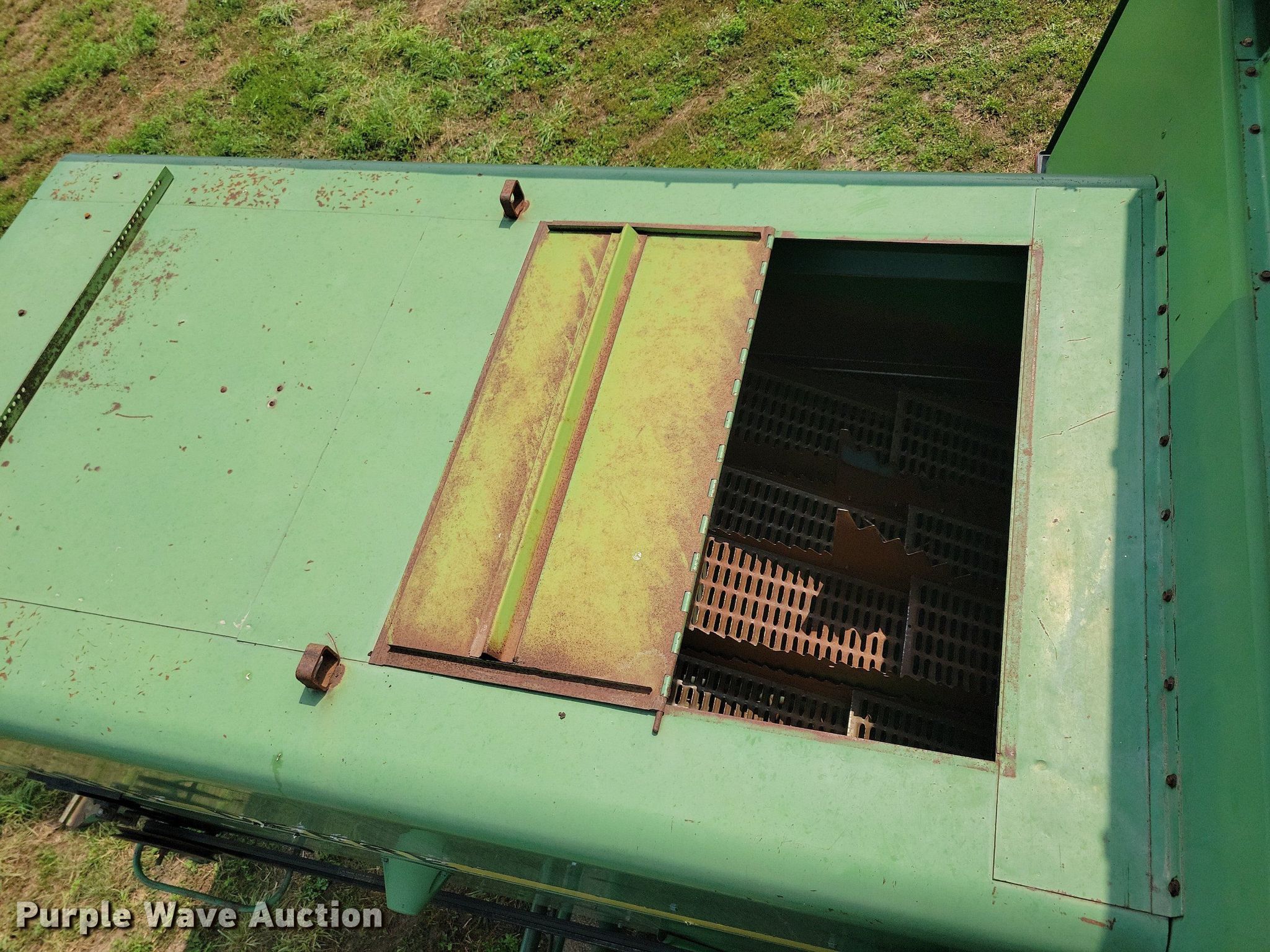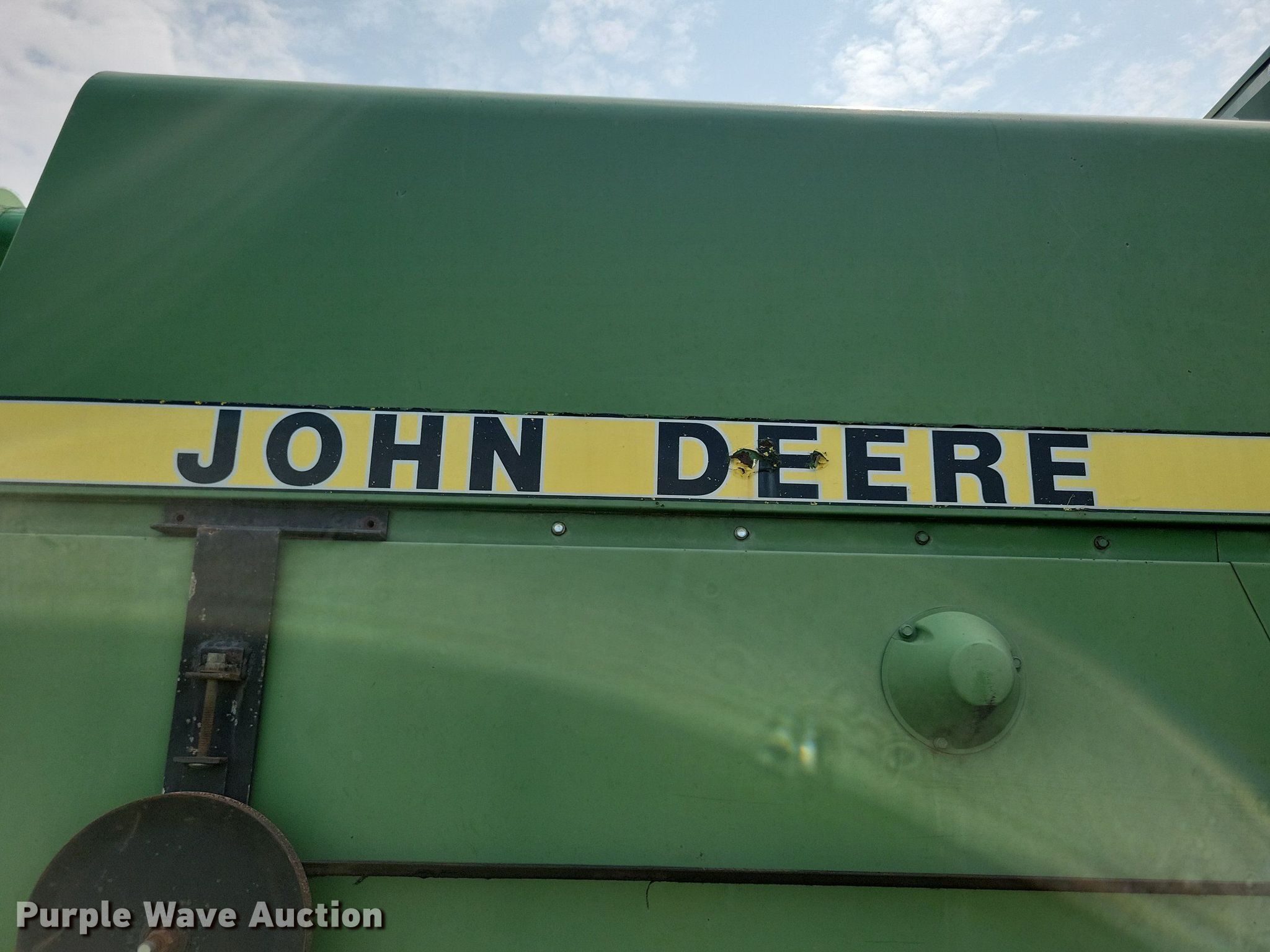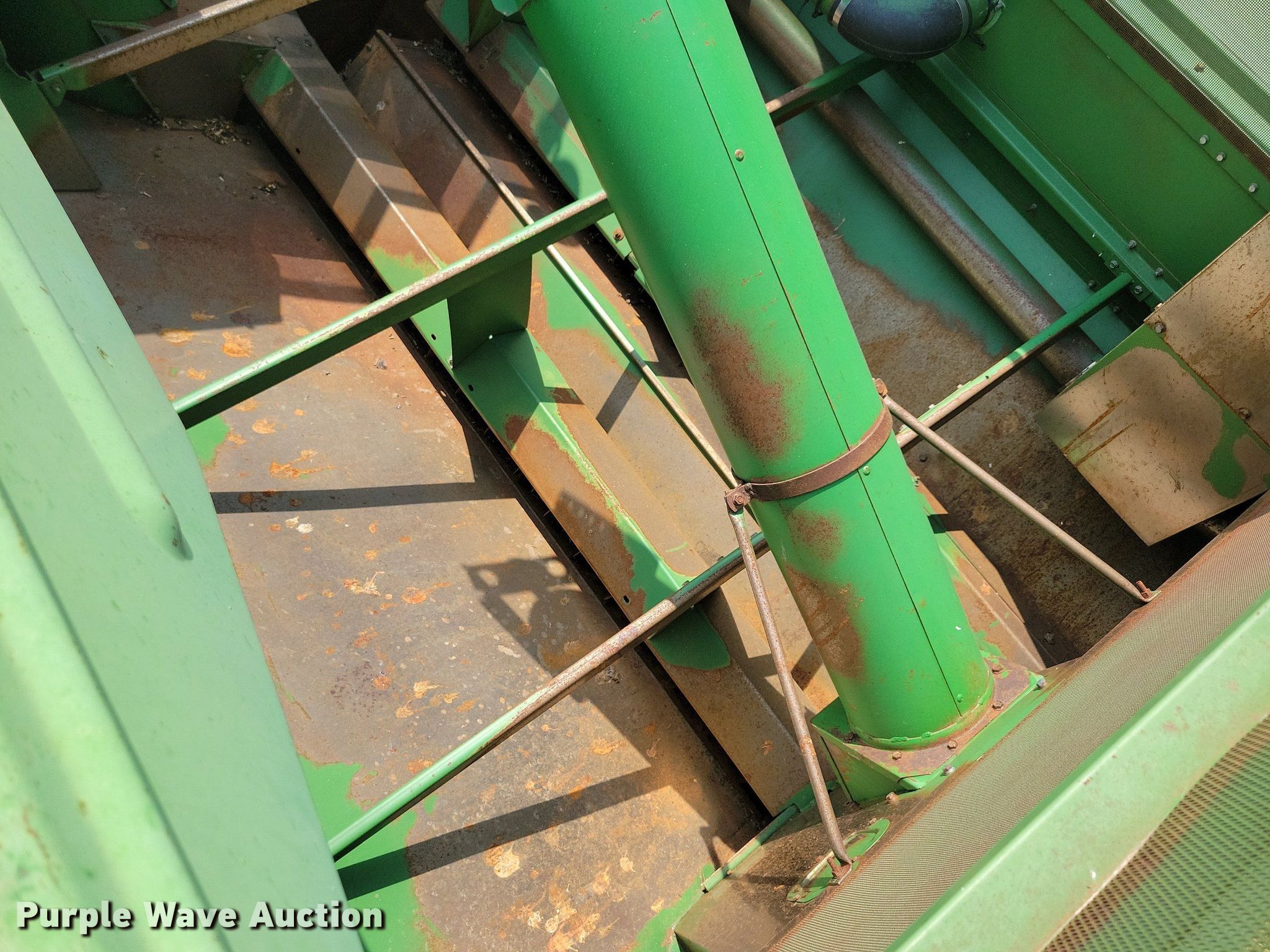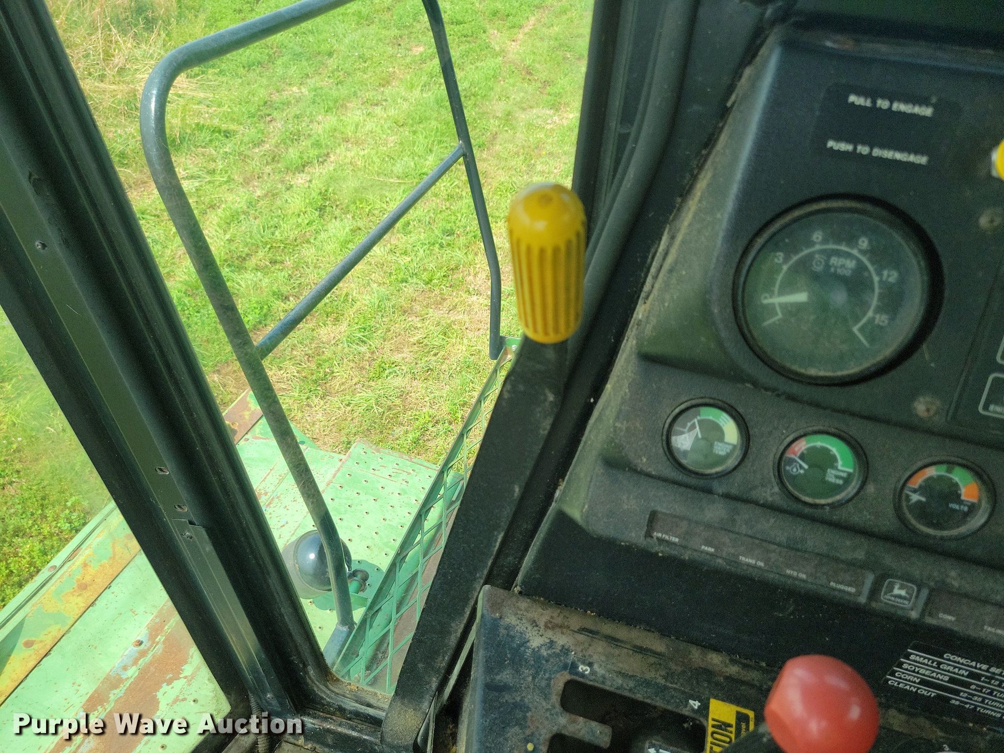 1984 John Deere Turbo 7720 combine. Engine hours: 5,697 on meter, Serial: H07720X602416. Engine John Deere, Serial: RG6466T281598, Cylinders: 6, Fuel type: Diesel. Transmission Hydrostatic, 4F - 4R. Interior AC, Heat. Features Straw chopper, Unloading auger length: 17', Rear hitch. Tires Front: 30.5L-32, Rear: 14.9-24. T & T Equipment. Redfield, IA 50233
