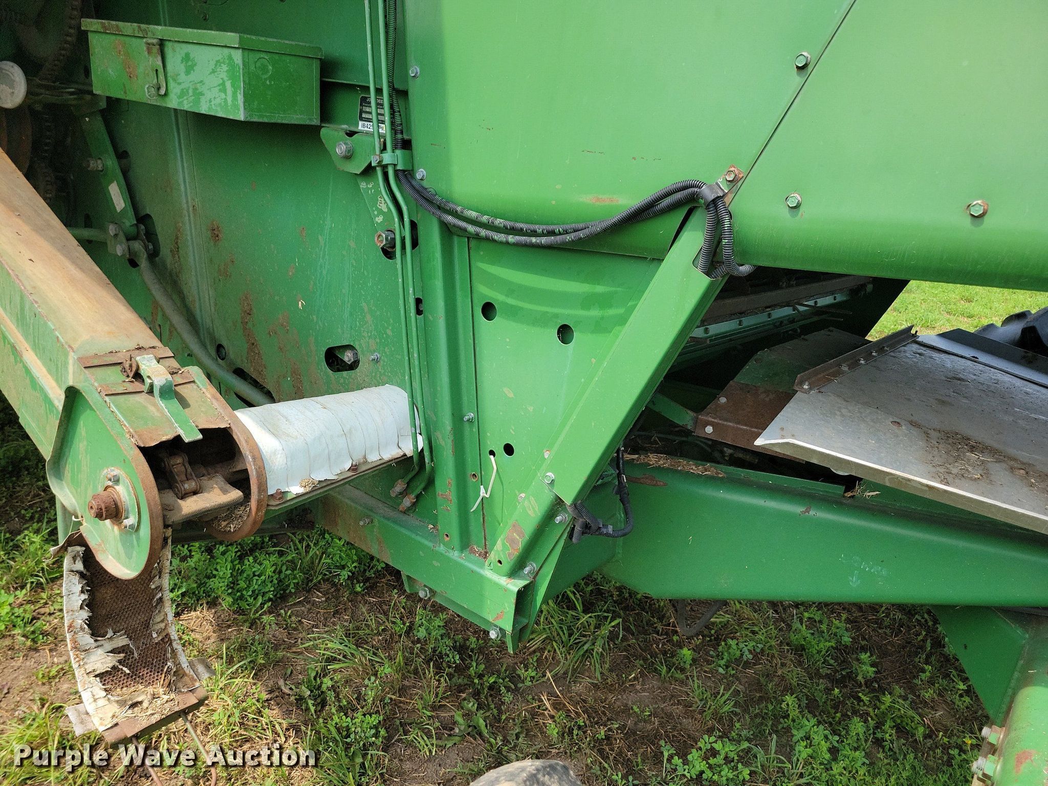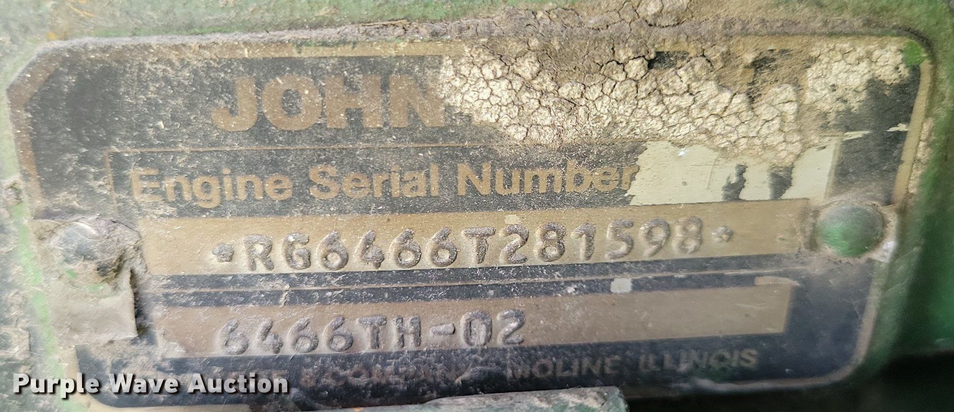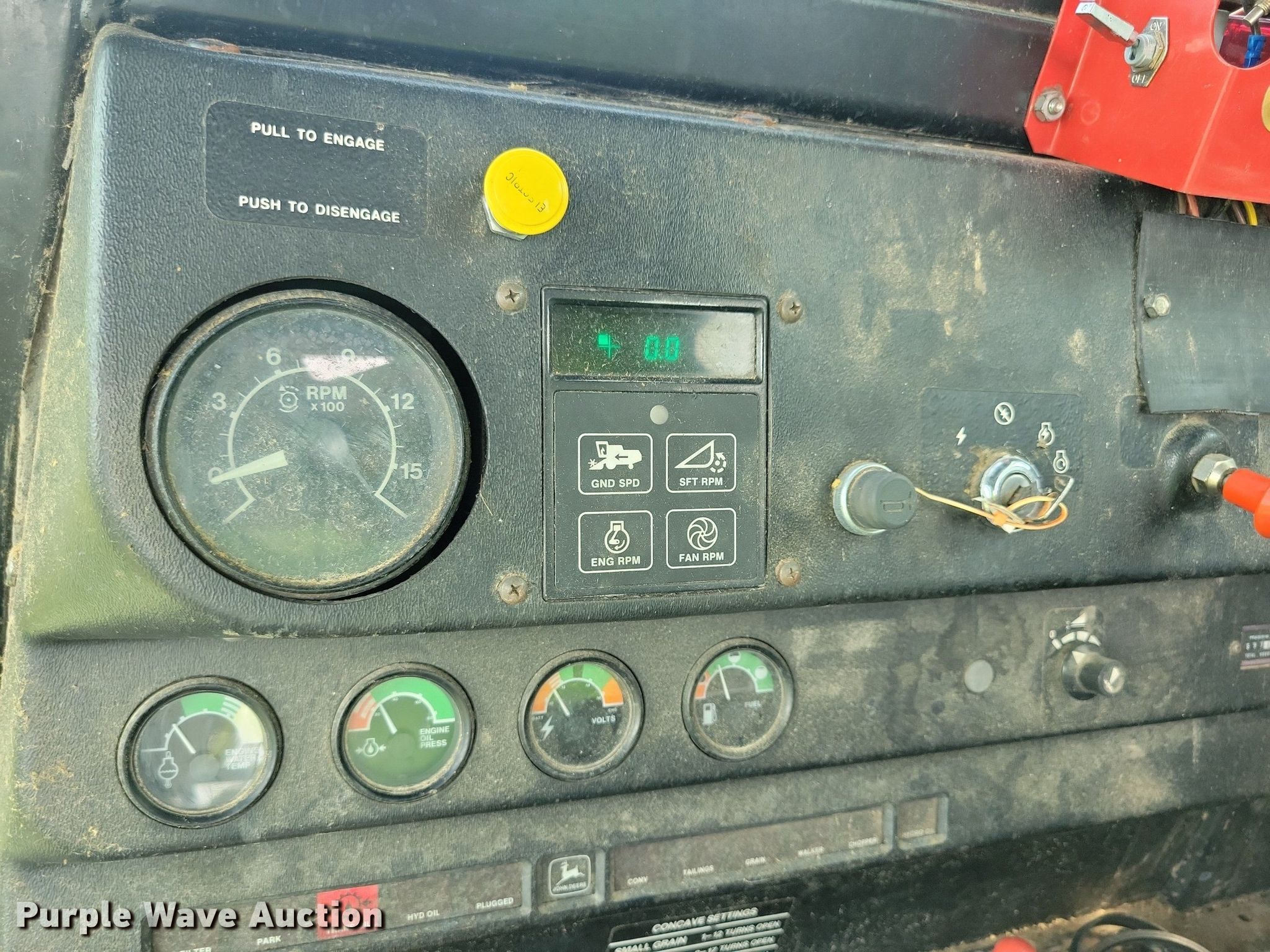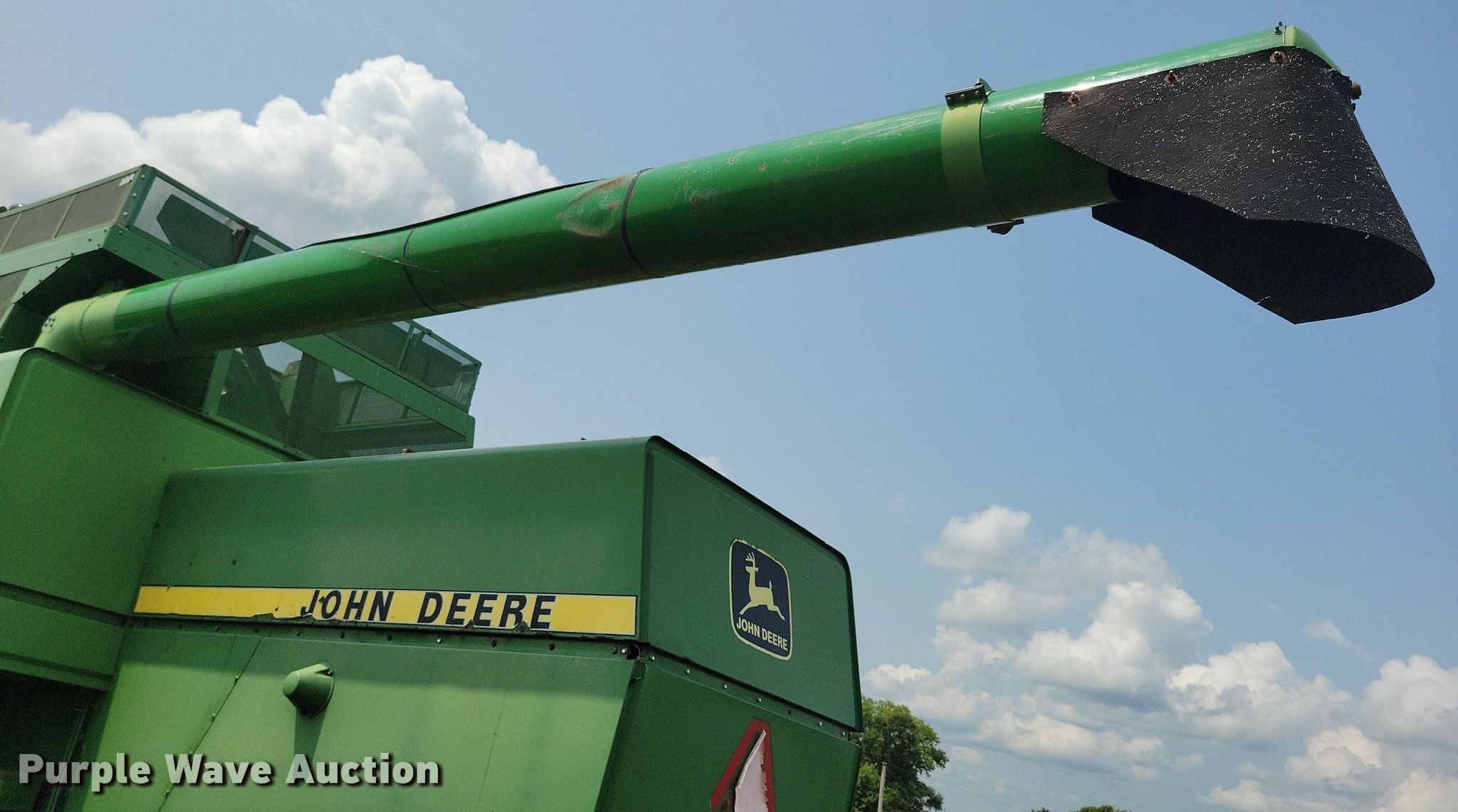 1984 John Deere Turbo 7720 combine. Engine hours: 5,697 on meter, Serial: H07720X602416. Engine John Deere, Serial: RG6466T281598, Cylinders: 6, Fuel type: Diesel. Transmission Hydrostatic, 4F - 4R. Interior AC, Heat. Features Straw chopper, Unloading auger length: 17', Rear hitch. Tires Front: 30.5L-32, Rear: 14.9-24. T & T Equipment. Redfield, IA 50233