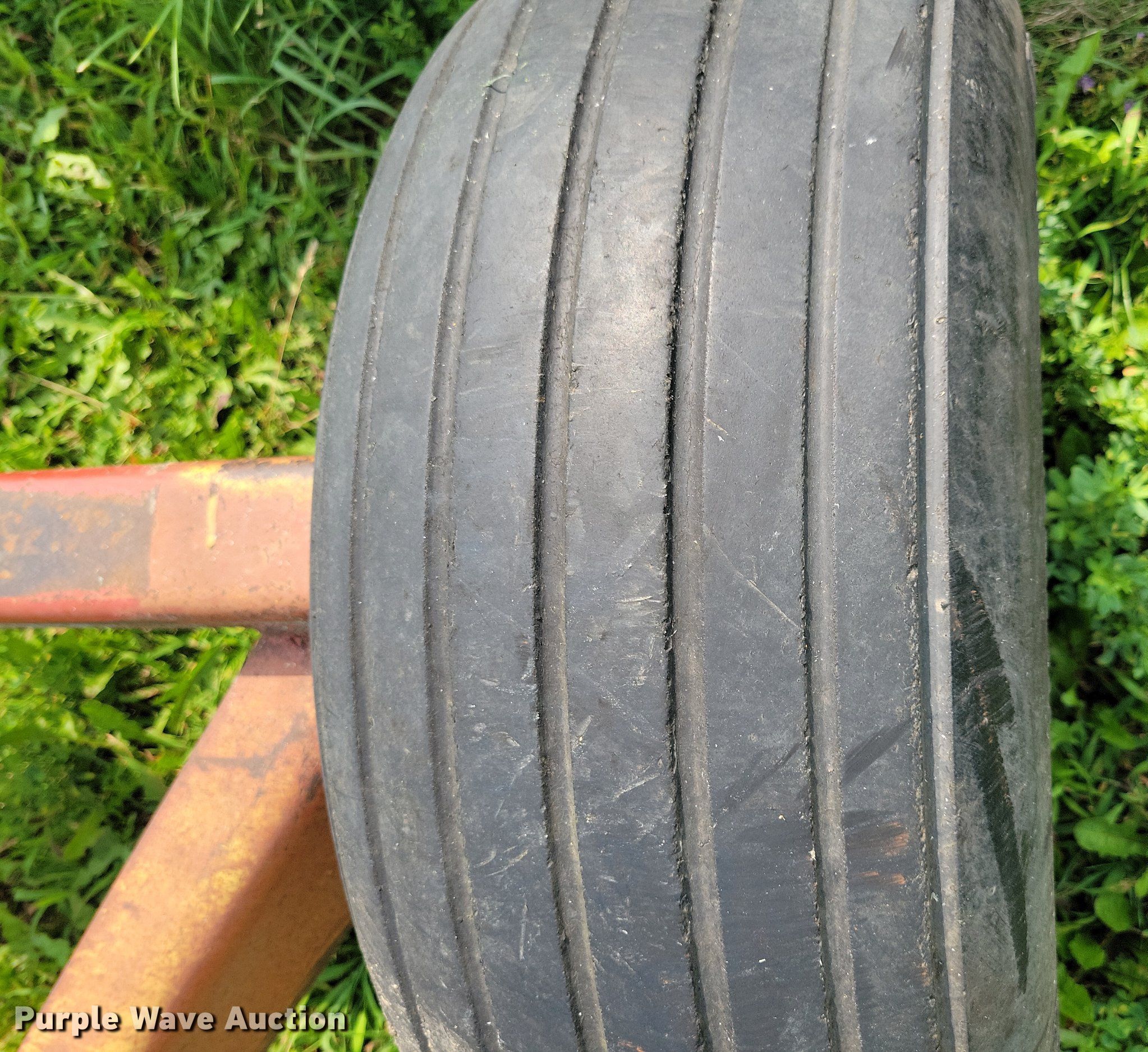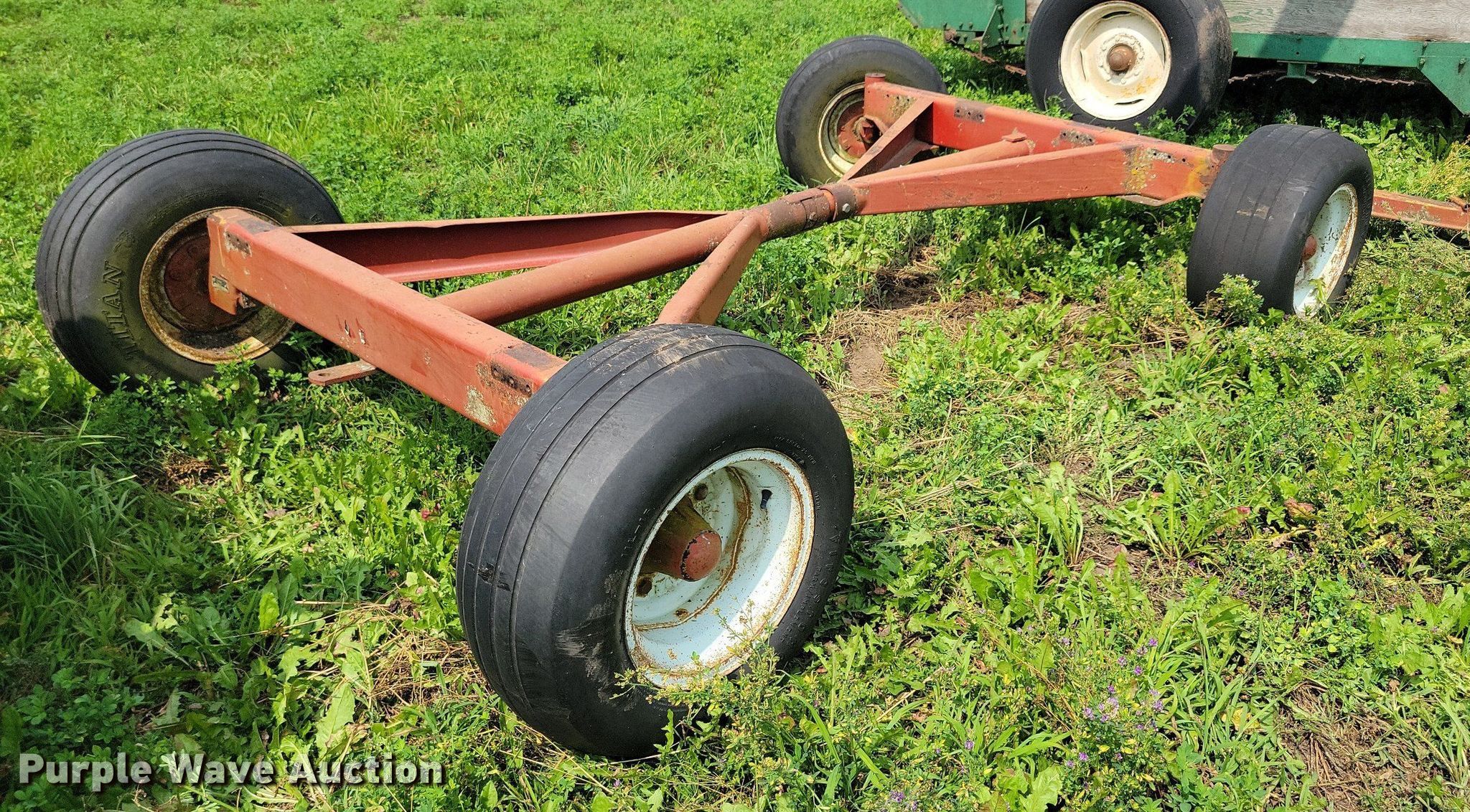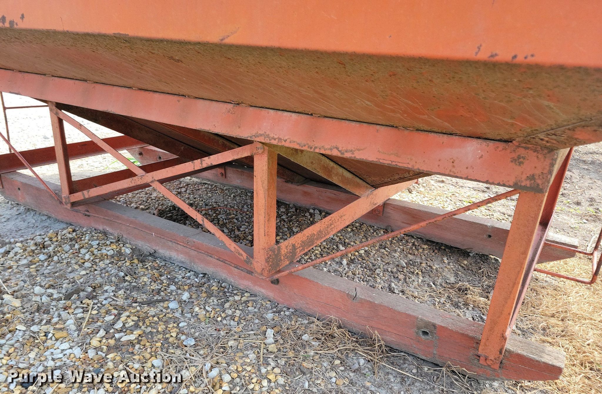 Killbros gravity wagon. Capacity: 250 bushels. Tires Size: 11L-15. Notes Running gear removed but included, Steering linkage broken. T & T Equipment. Redfield, IA 50233
