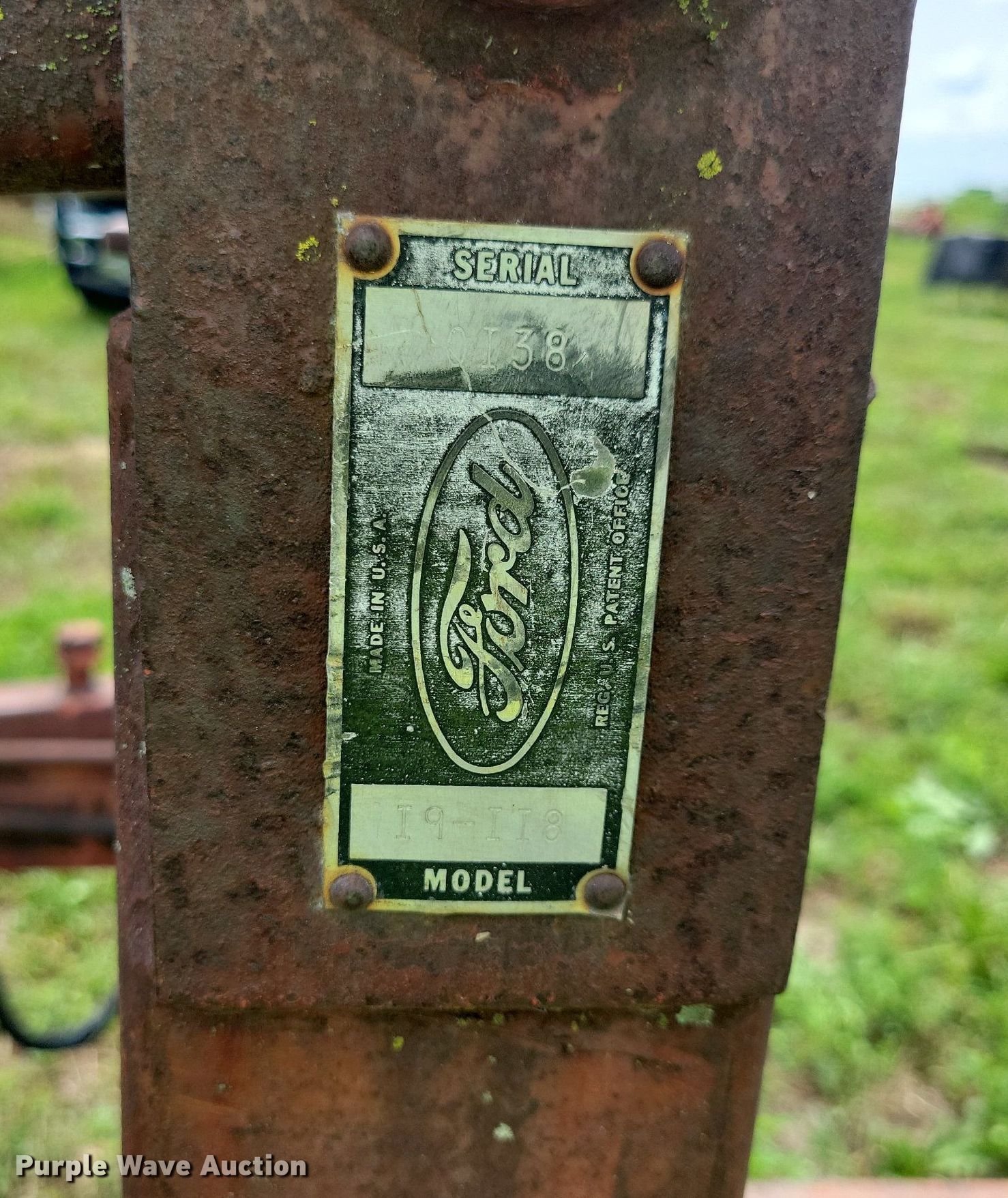 Ford 19-118 loader. Serial: 0I38. Features Bucket Width: 80". Notes Mounting brackets included, Fits Ford 8N or N series tractor. T & T Equipment. Redfield, IA 50233