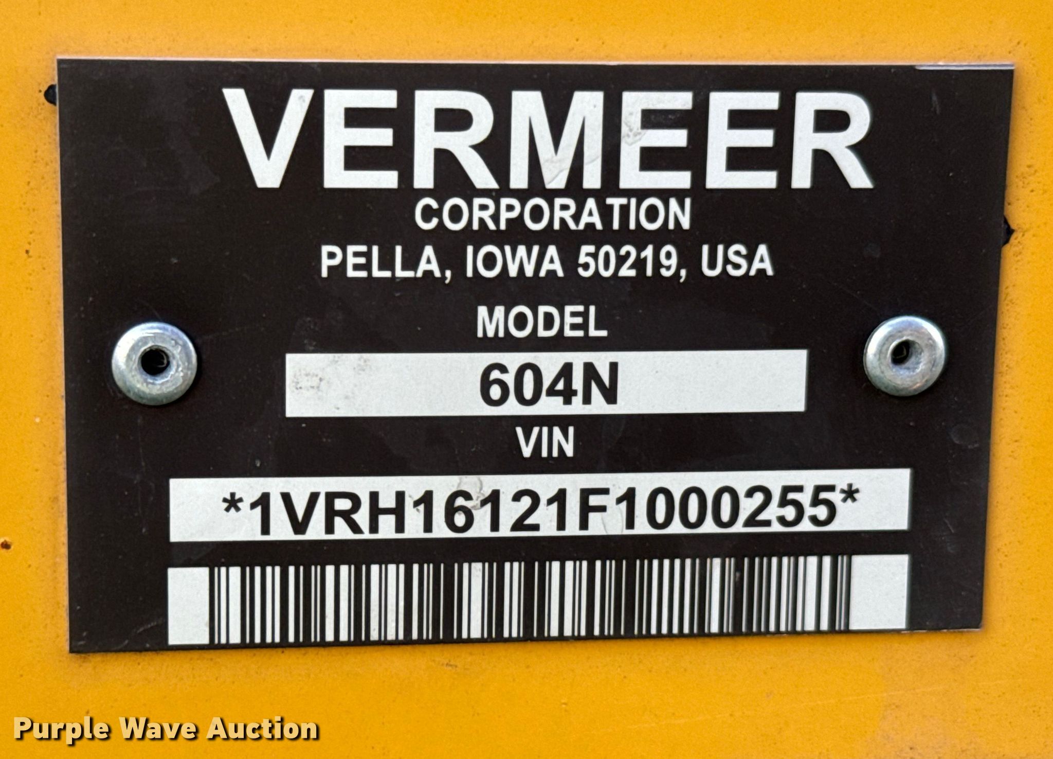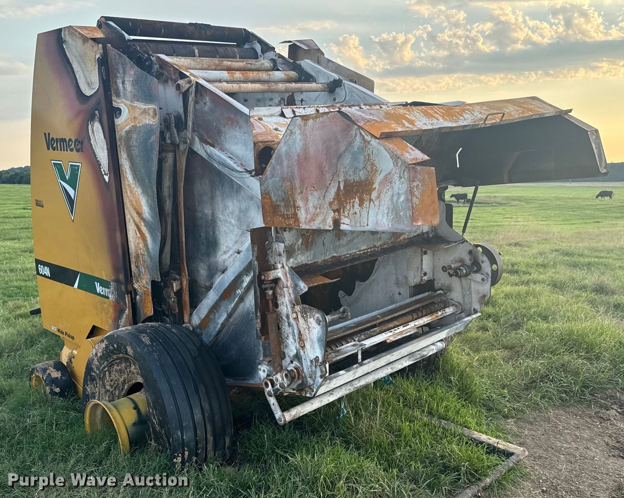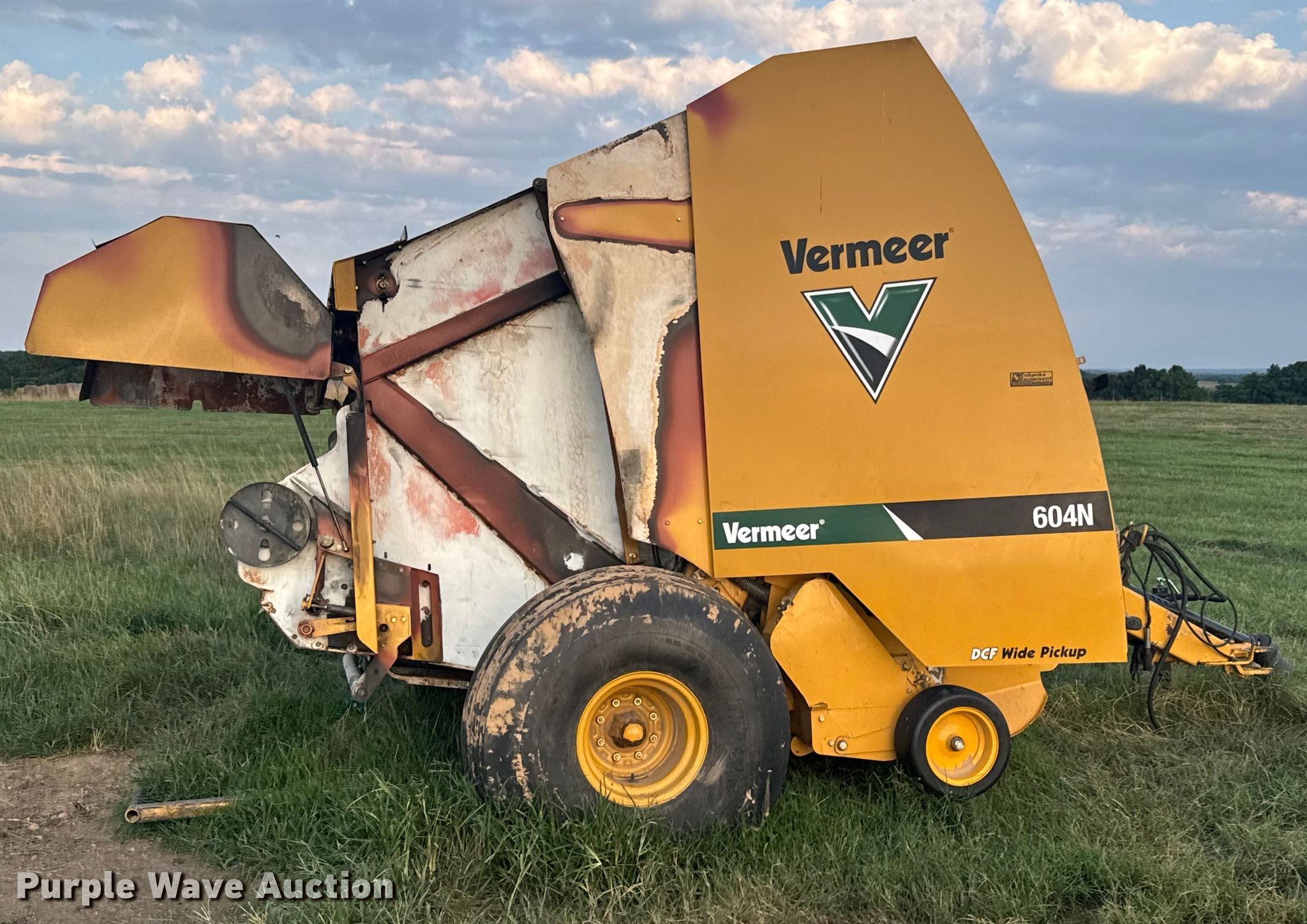 Purple Wave is selling a used Round Baler in Oklahoma. This item is a Vermeer 604N round baler with the following: Serial: 1VRH16121F1000255, Insurance salvage unit claim #: 4-809159