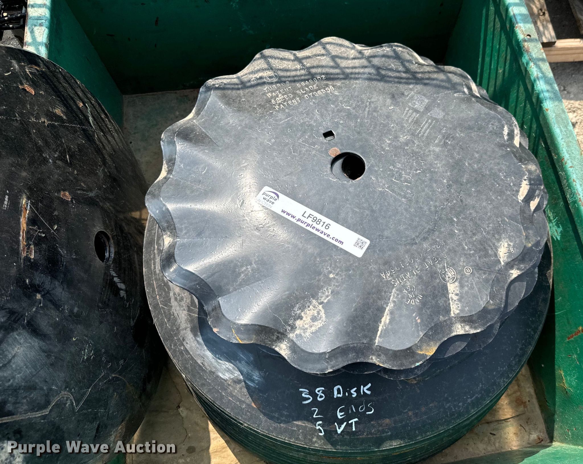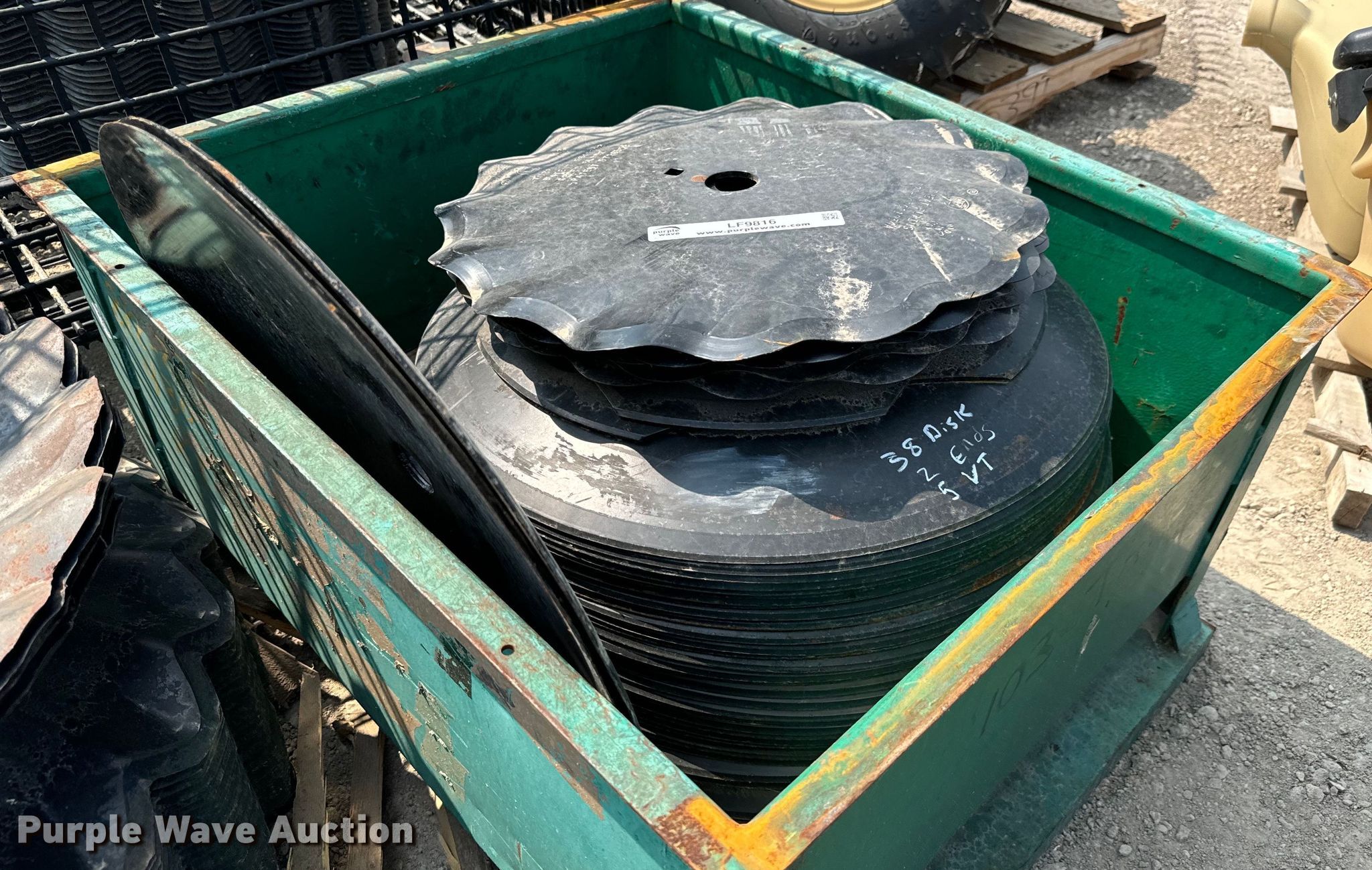 Purple Wave is selling a used Tillage Other in Kansas. This item is a (38) disks with the following: (5) vertical tillage disks, (2) disk ends