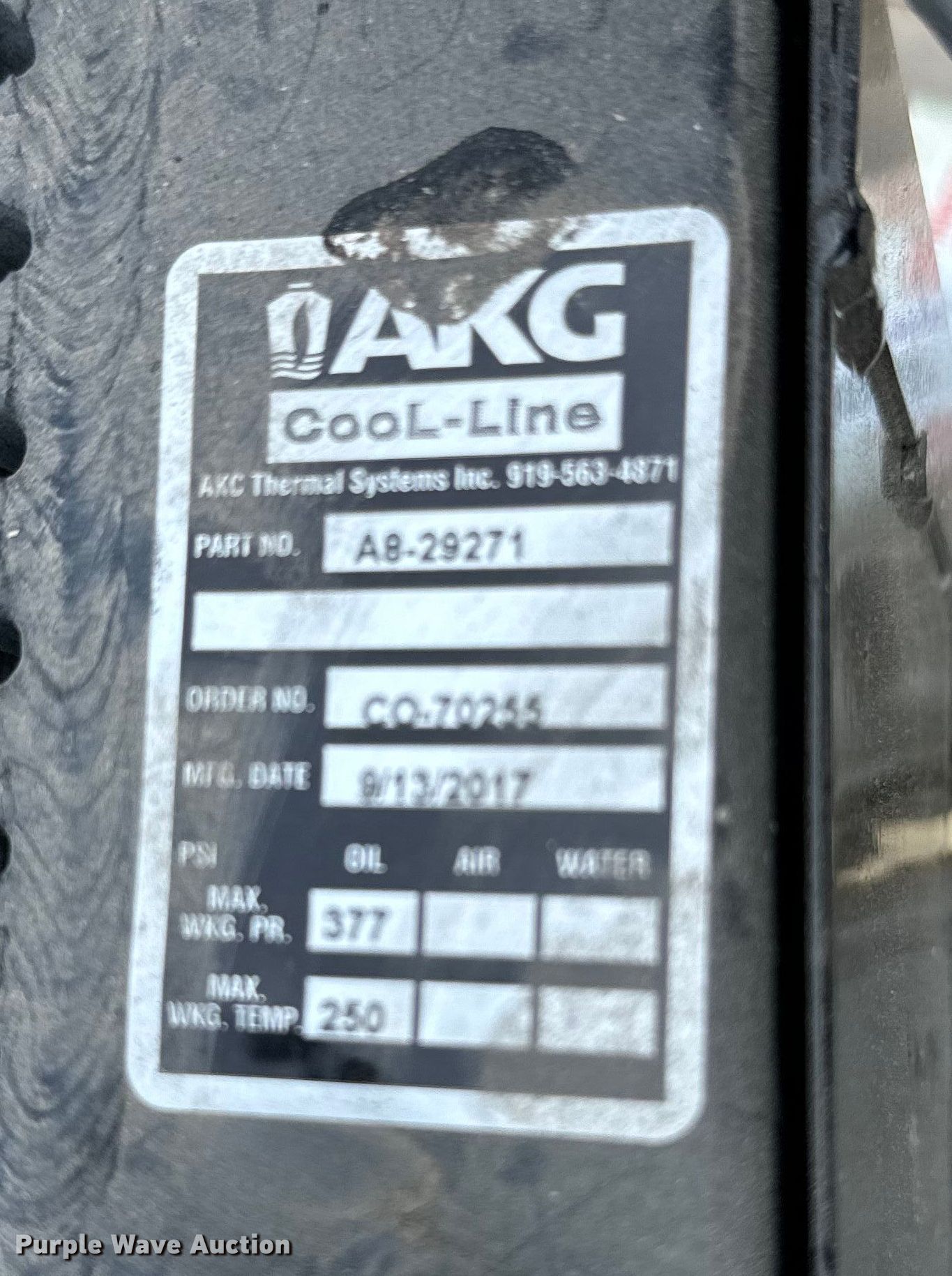 Purple Wave is selling a used Truck Part and Attach. in Kansas. This item is a 2017 AKG Cool-Line Wet kit with the following: PTO, Force America, Serial: 1267910