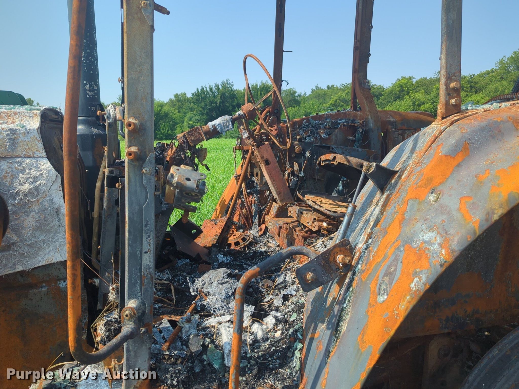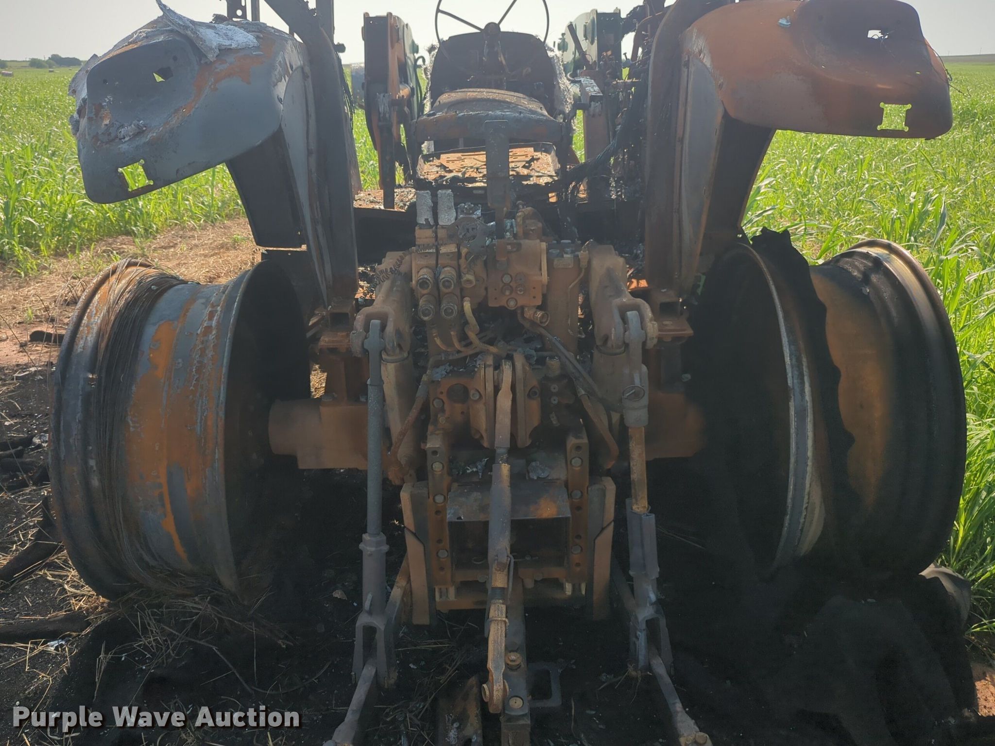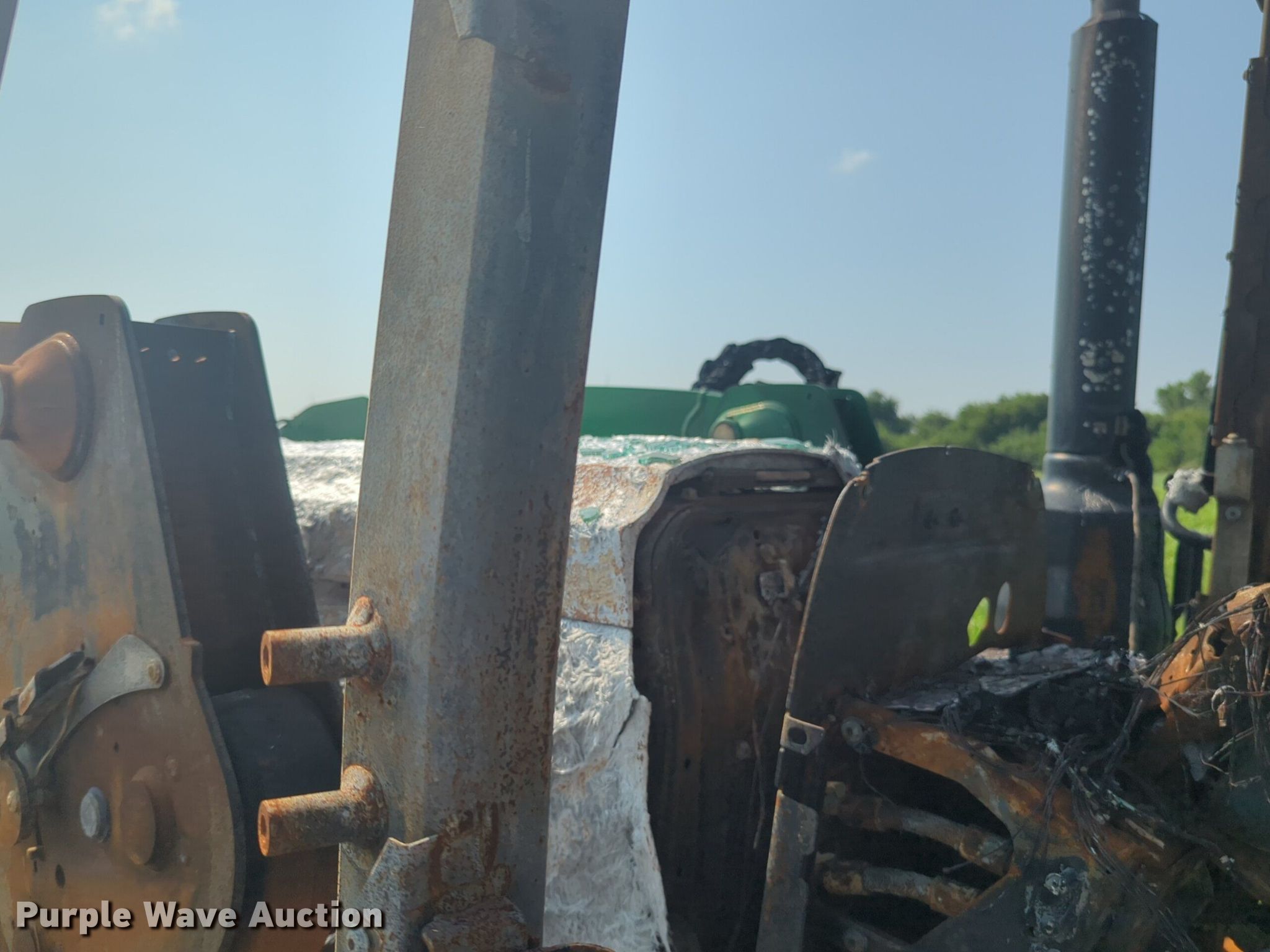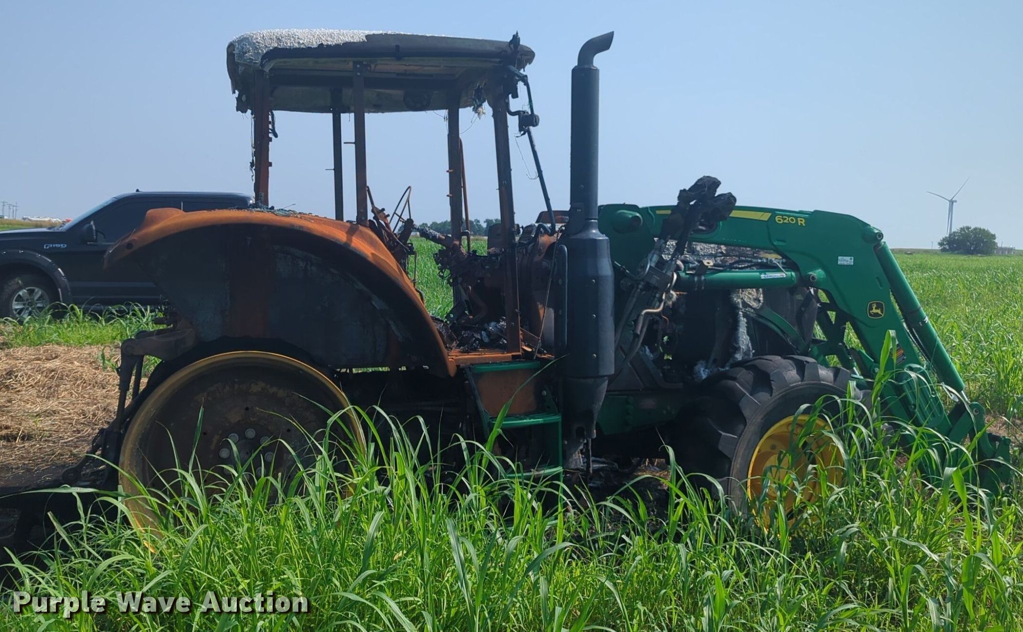 2019 John Deere 6120M MFWD tractor. Serial: 1206120MTJG918647, Insurance salvage unit claim #: 4-809820. Engine John deere, Cylinders: 4, Fuel type: Diesel. Transmission Powershift, 24F - 24R, Left-hand reverser, Differential lock. Features PTO: 540, Three point Top link, Hydraulic remote sets Rear: 2, Loader John Deere 620R, Quick attach, Controls: Joystick. Notes Fire Damage, Tires missing, Non-operational unit. Oklahoma Farm Bureau. Minco, OK 73059