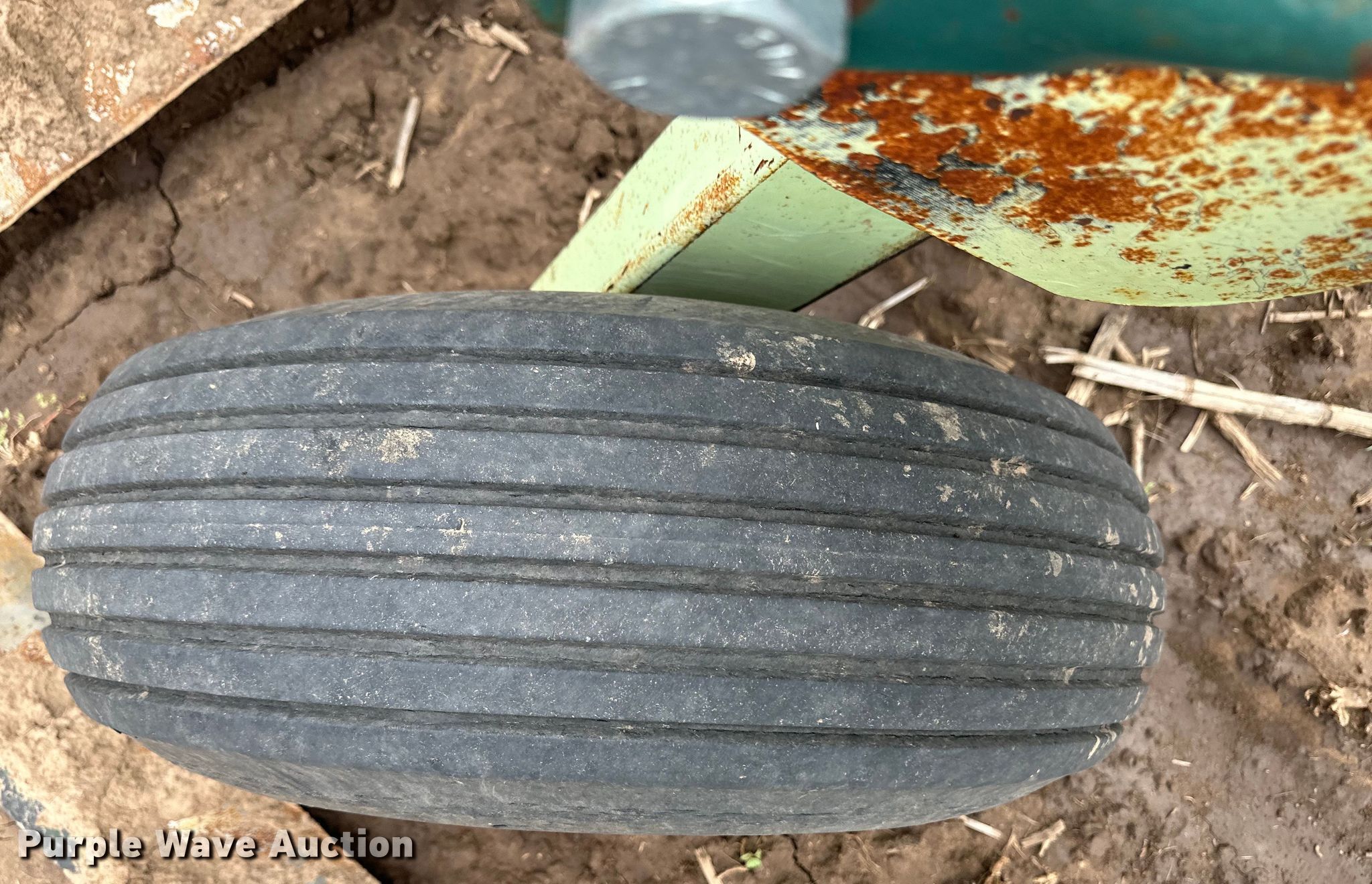 Flex-King KM33 sweep plow. Overall width: 35', Serial: 6674. Features Shanks: 7, Sweep width: 5', Operation Hydraulic lift, Hydraulic fold, Leveler: Manual, Attachments Rolling pickers/ treader. Tires Tire size: 9.5L-15SL. Rundell Farms. Garden City, KS 67846