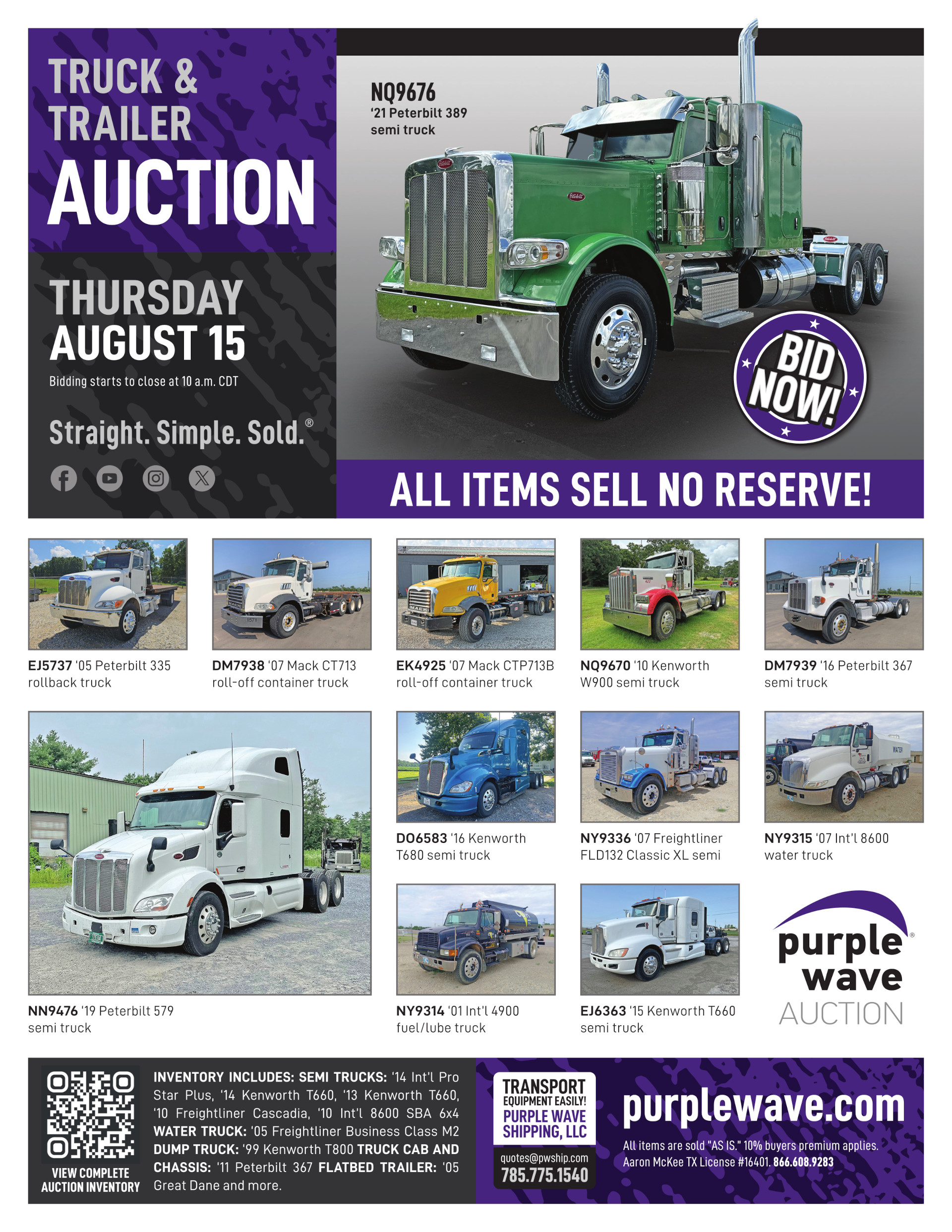 SOLD! Truck and Trailer Auction | 8-15-2024