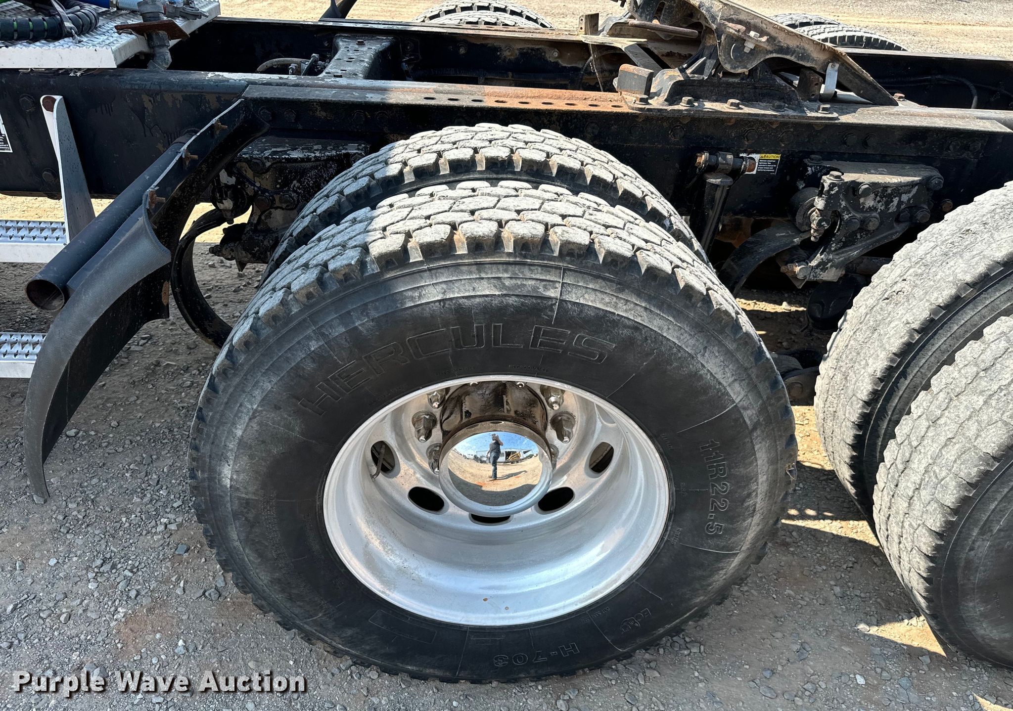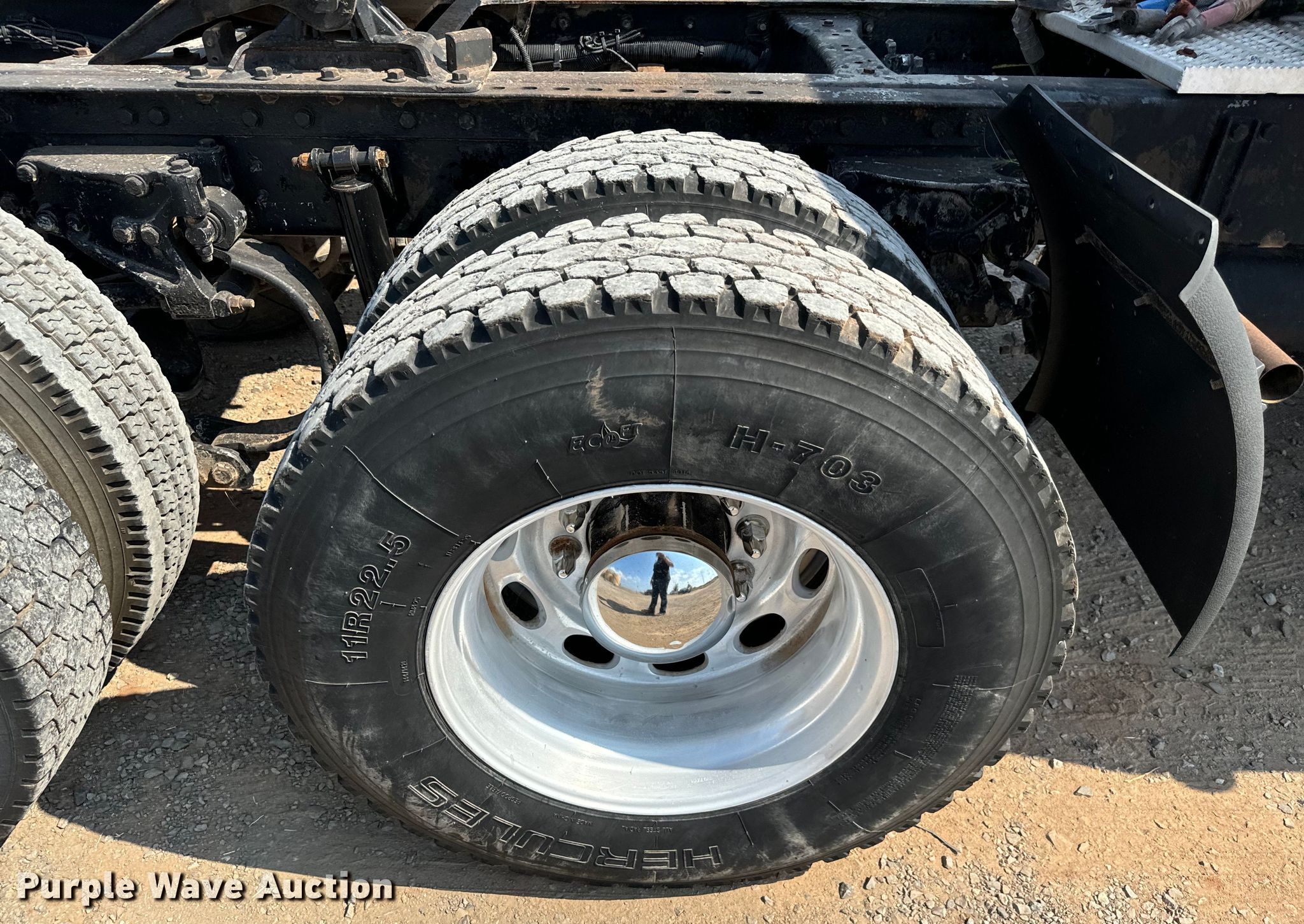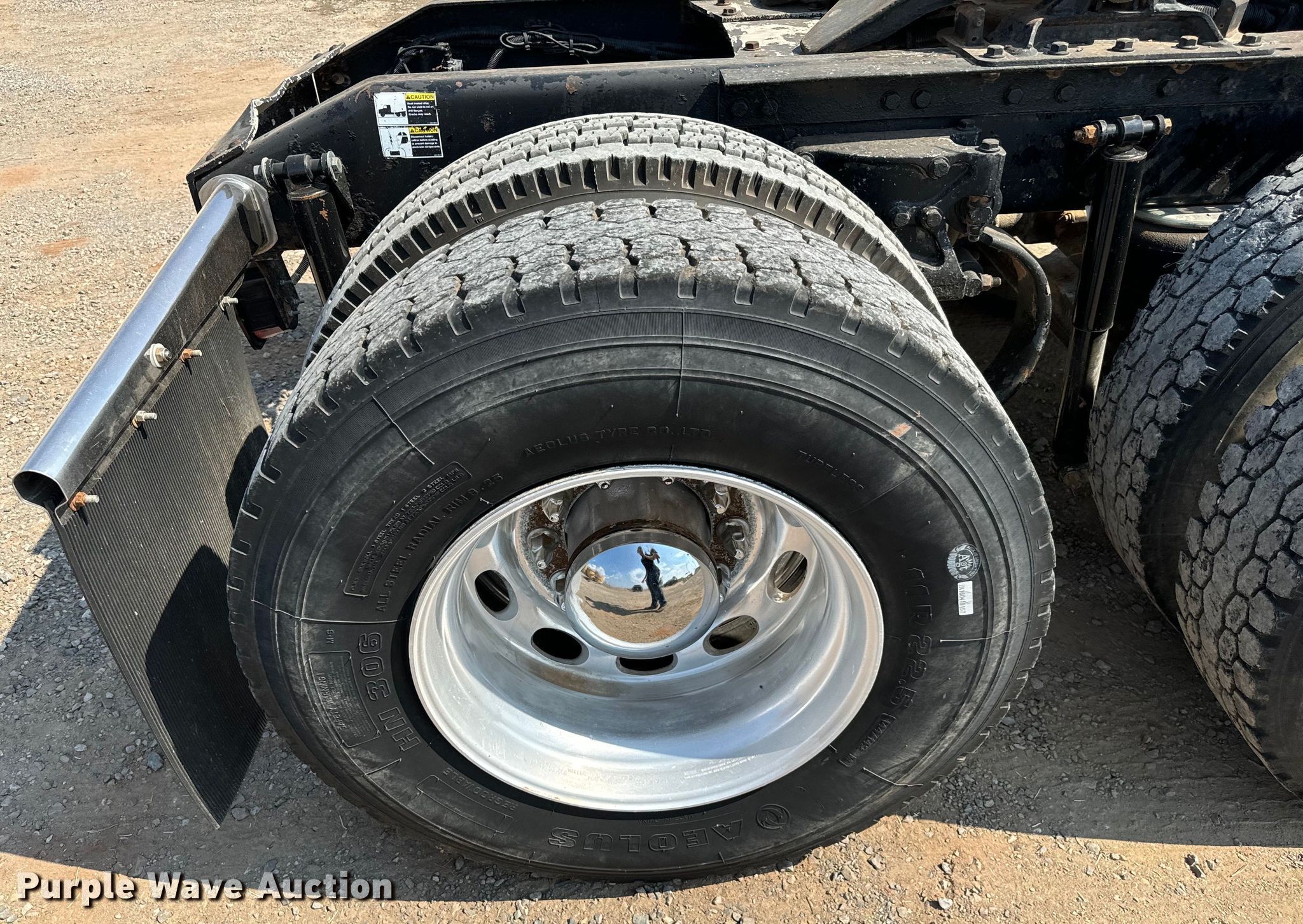 2007 Peterbilt 378 semi truck. Miles: 106,975 on odometer, Hours: 34,508 on meter, VIN: 1XPFDU9X27D858500. Engine Caterpillar C13 Acert, Displacement: 12.5L, Cylinders: 6, Fuel type: Diesel, Engine brake. Transmission Manual, Speed: 10. Chassis Axles: Tandem, Differential lock: Inter-axle, Suspension: Air Dump valves, Brakes: Air, PTO, GVWR: 48,000 lbs FAWR: 12,000 lbs, IAWR: 18,000 lbs, RAWR: 18,000 lbs. Interior AC, Heat, Heated mirrors, Power windows, Cruise control, Air ride cab, Sleeper Sleeper length: 4', Beds: Single, Rear climate control. Features Deck plate: Aluminum, Fifth wheel type: Fixed, Fuel tank: Dual. Tires Front: 295/75R22.5, Rear: 11R22.5. Notes Dash warning indicator: ABS, Windshield chipped or cracked. Oklahoma title. Title has a lien that will be released following the close of the auction. Title distribution may be delayed up to 30 days from verification of funds. Clune Construction LLC. Maysville, OK 73057