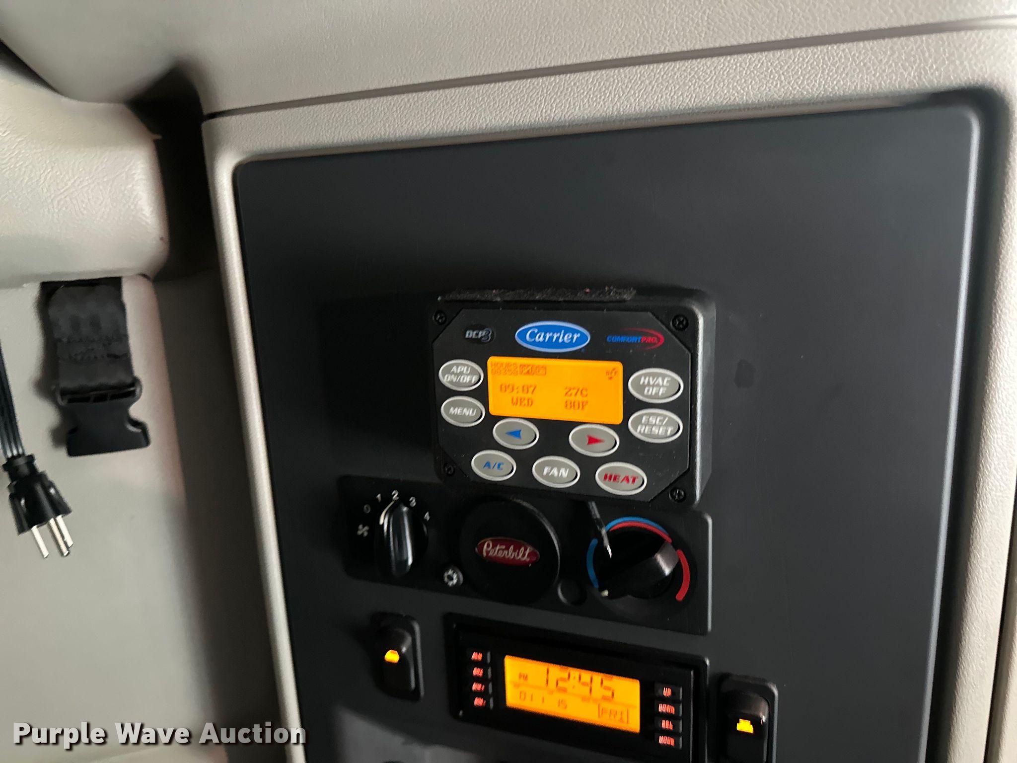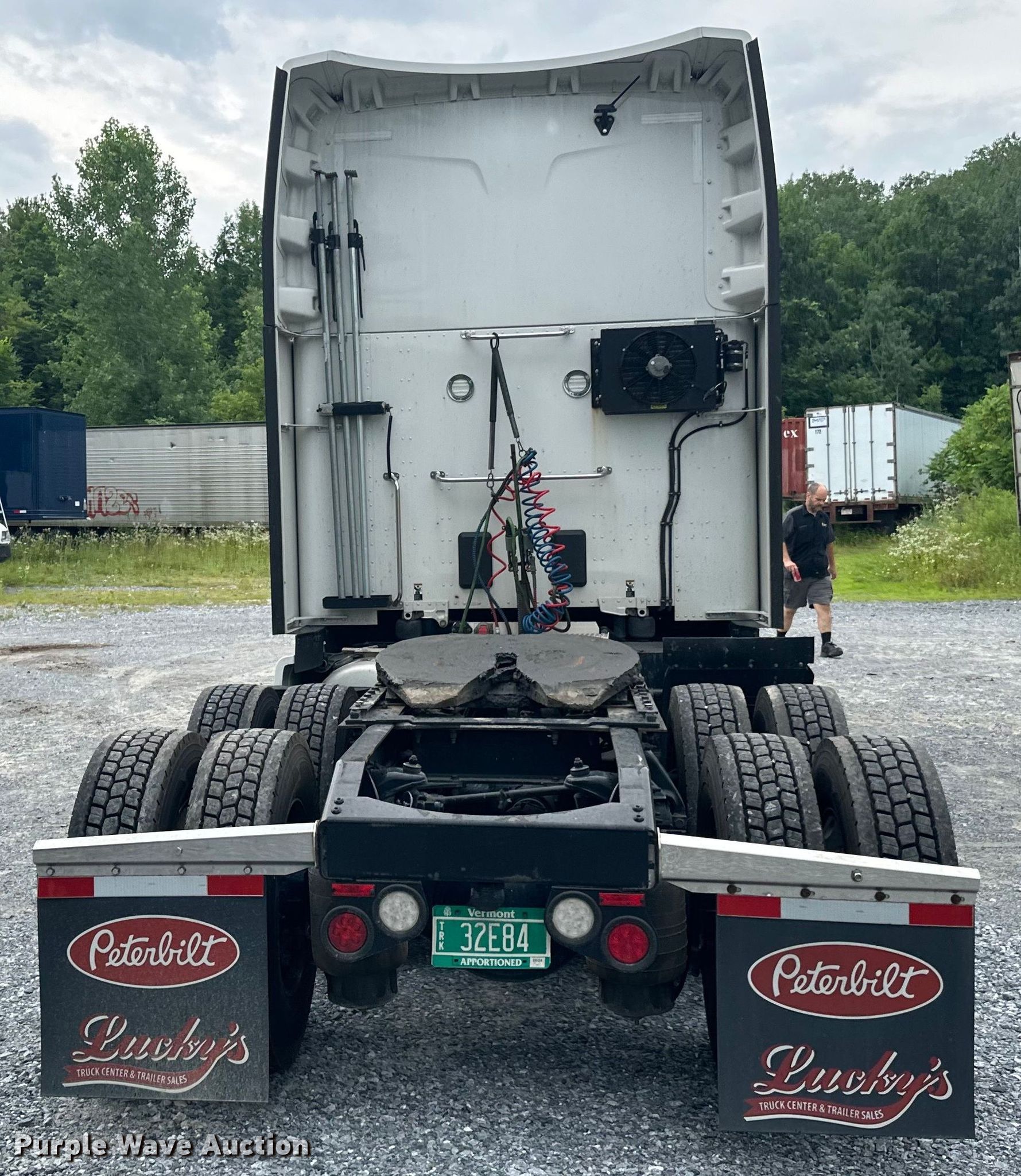 2019 Peterbilt 579 semi truck. Miles: 445,658 on odometer, Hours: 9,858 on meter, VIN: 1XPBDP9X7KD628010. Engine Paccar MX13, Displacement: 12.9L, Cylinders: 6, Fuel type: Diesel, Engine brake. Transmission Automated manual. Chassis Axles: Tandem, Differential lock: Inter-axle, Suspension: Air Dump valves, Brakes: Air, GVWR: 53,200 lbs FAWR: 13,200 lbs, IAWR: 20,000 lbs, RAWR: 20,000 lbs. Interior AC, Heat, Heated mirrors, Power windows, Power locks, Cruise control, Air ride cab Beds: Double bunk, Refrigerator, Microwave, Rear climate control, Auxiliary power unit Carrier. Features Deck plate: Aluminum, Fifth wheel type: Air operated, Sliding, Fuel tank: Dual. Tires Size: 295/75R22.5. Vermont title. Title has a lien that will be released following the close of the auction. Title distribution may be delayed up to 30 days from verification of funds. Fetch Transportation. New Haven, VT 05472