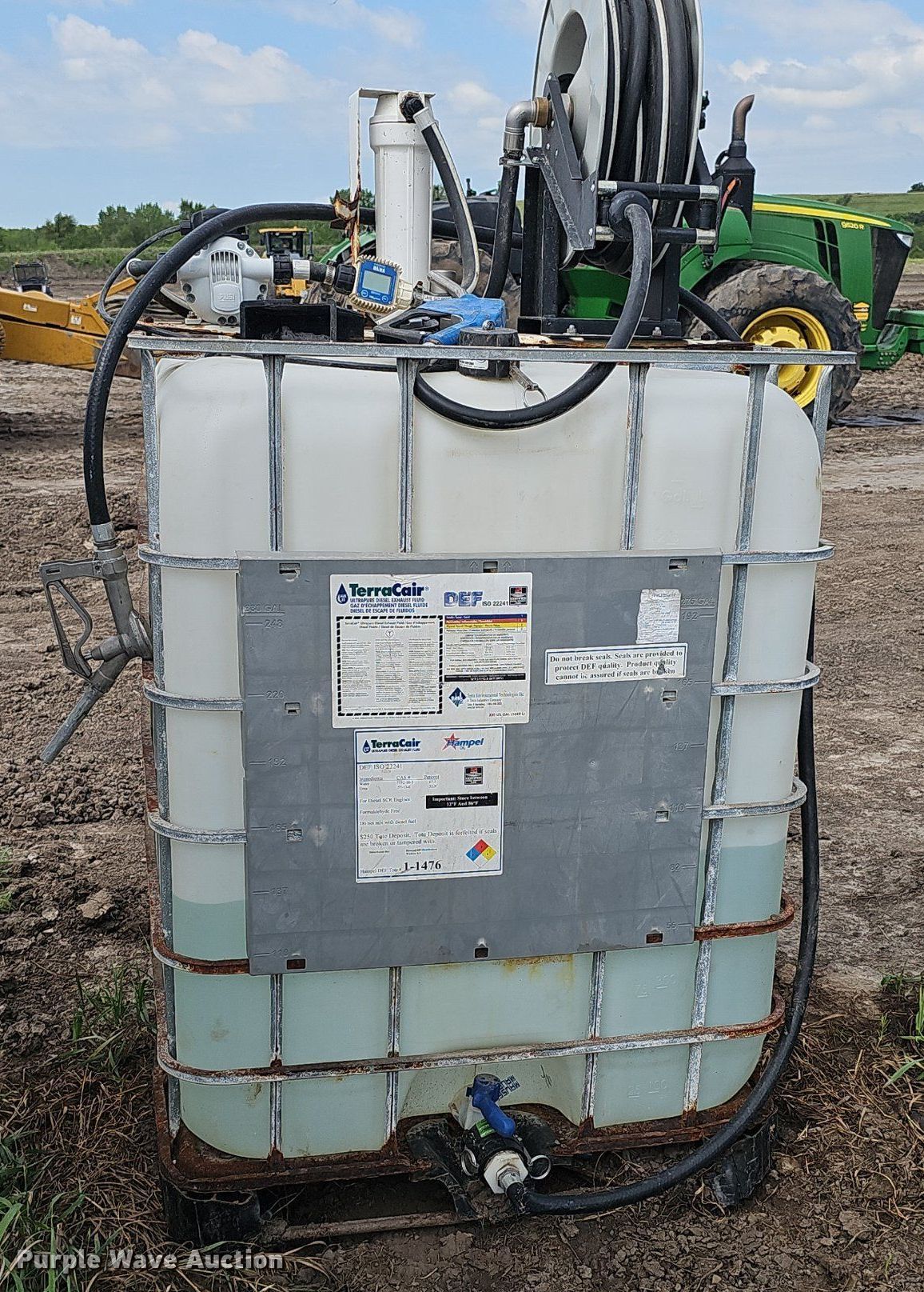 DEF tank. 48" x 40" x 53", Capacity: 330 gallons, 2023 Piusi 01911100B pump Volts: 120, LiquiDynamics hose reel, Hose, Nozzle. Notes Tank will be drained prior to auction. Superior Excavating LLC - Open Inspection August 14 and 19. 10401 North Woodlawn Boulevard. Valley Center, KS 67147