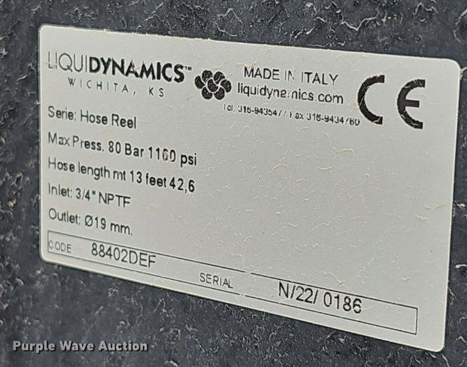 Purple Wave is selling a used Fuel and Lube in Kansas. This item is a DEF tank with the following: 48" x 40" x 53", Capacity: 330 gallons, 2023 Piusi 01911100B pump, Volts: 120, LiquiDynamics hose reel, Hose, Nozzle