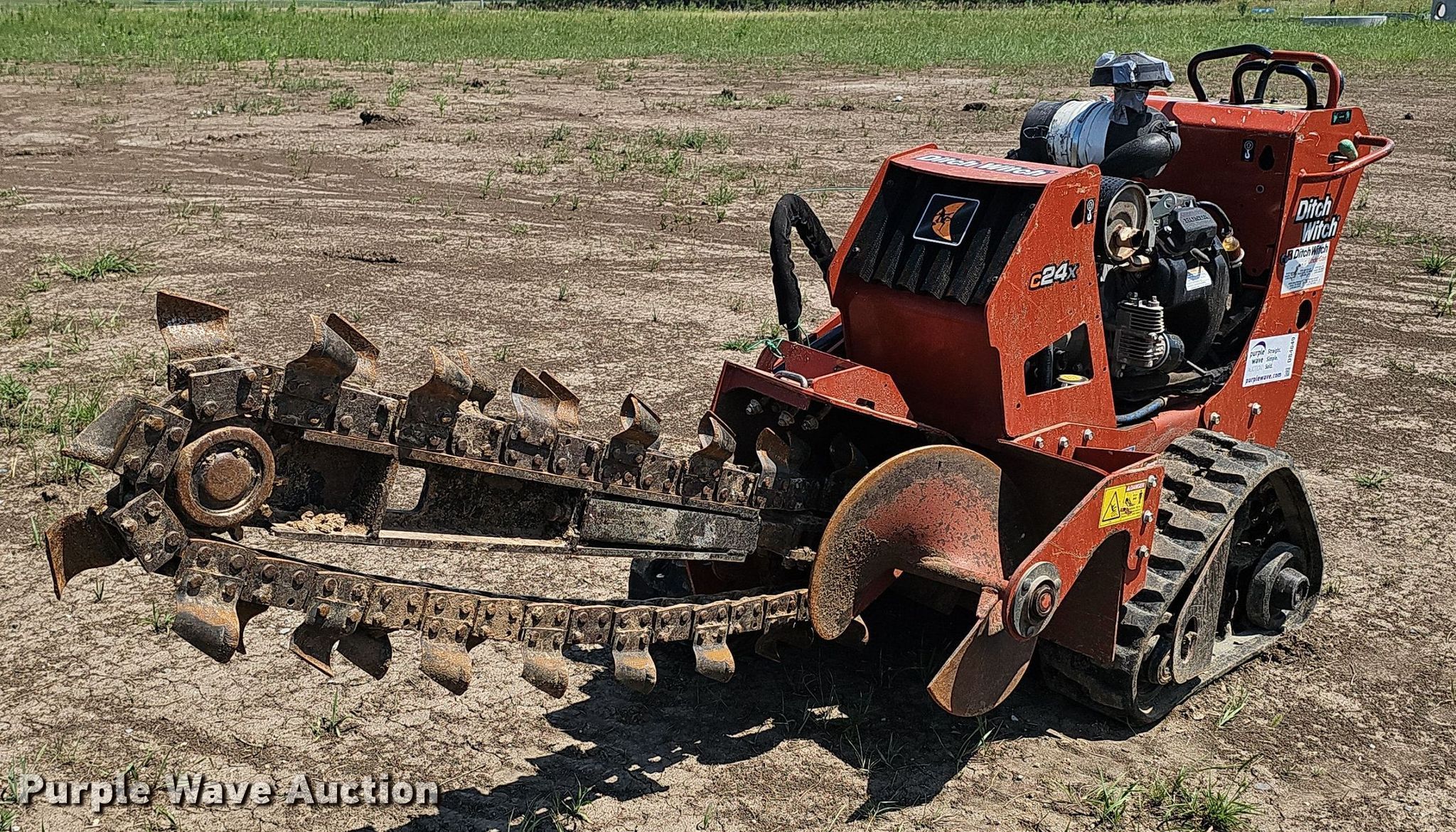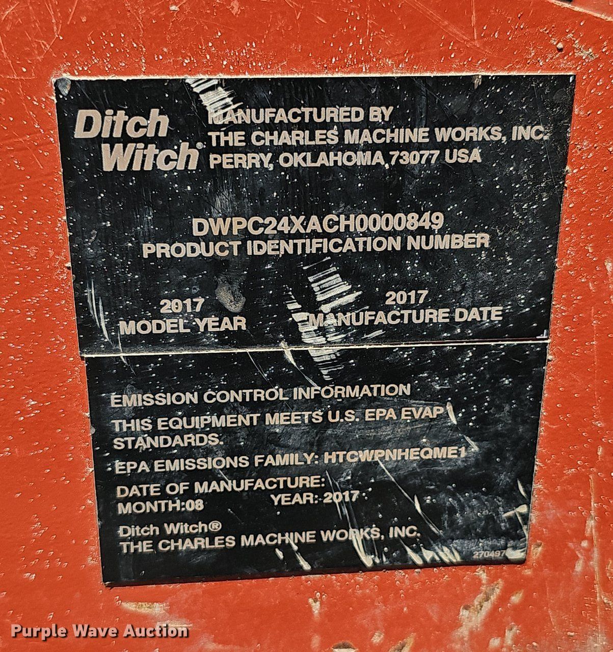 Purple Wave is selling a used Trencher or Rock Saw in Kansas. This item is a 2017 Ditch Witch C24X trencher with the following: Hours: 306 on meter, Miles or hours may vary, unit still in use, Serial: DWPC24XACH0000849, Unit #: E-64