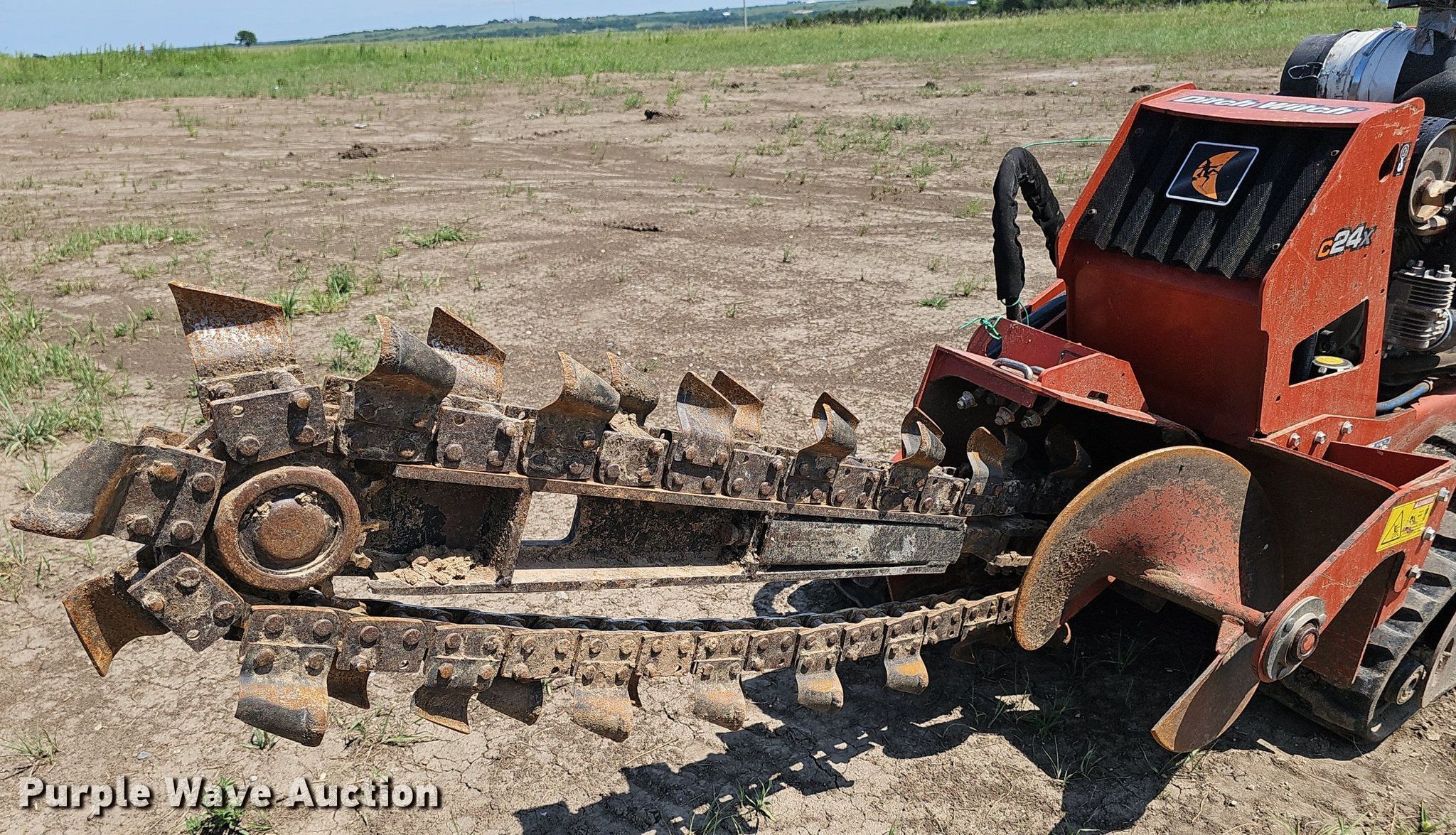 2017 Ditch Witch C24X trencher. Hours: 306 on meter, Miles or hours may vary, unit still in use, Serial: DWPC24XACH0000849, Unit #: E-64. Engine Honda GX690, Displacement: 688 cc, Cylinders: 2, Fuel type: Gas. Transmission Hydrostatic. Features Trencher Estimated dig depth: 56", Cutting width: 4.5", Teeth: Dirt, Manual crumber. Tracks Width: 8", Rubber. Notes Crumber removed but included. Superior Excavating LLC - Open Inspection August 14 and 19. 10401 North Woodlawn Boulevard. Valley Center, KS 67147