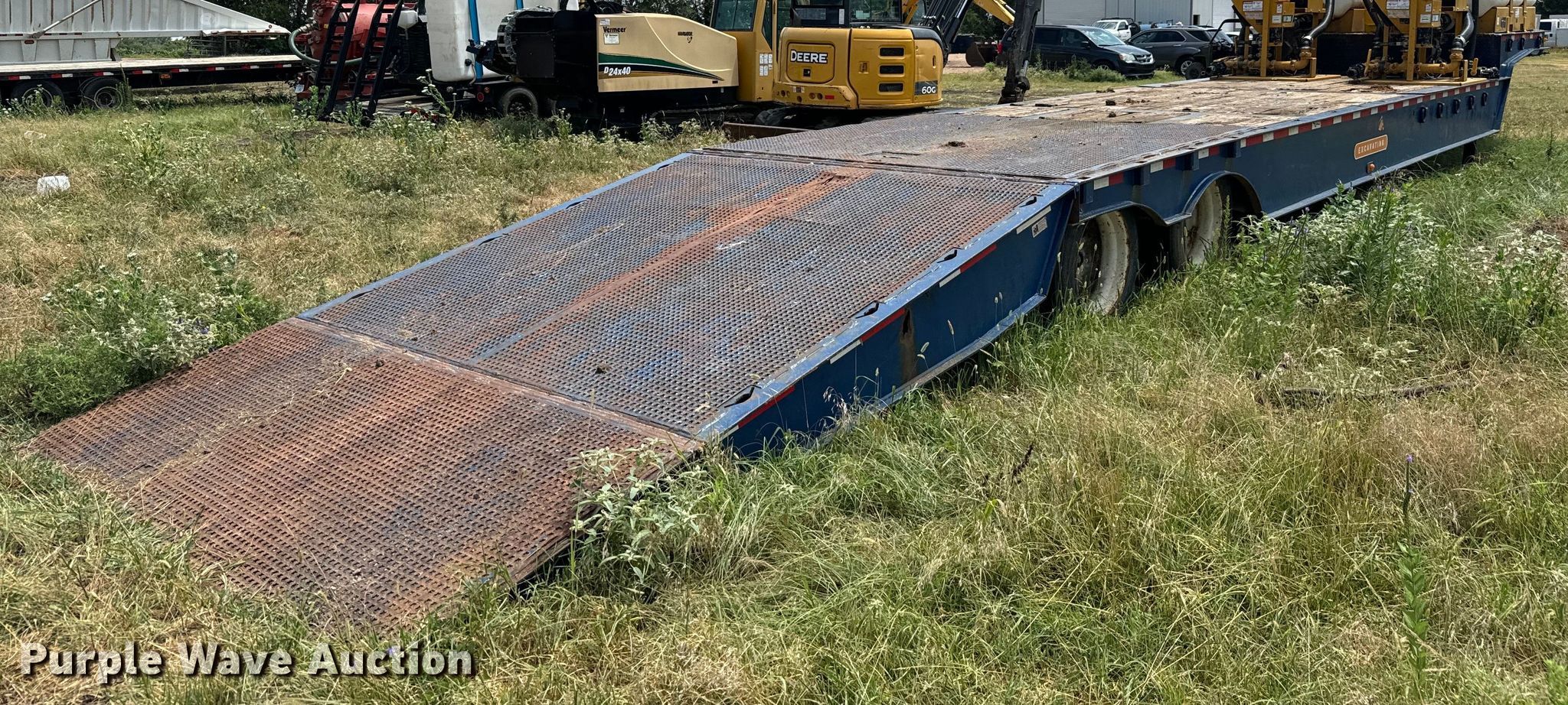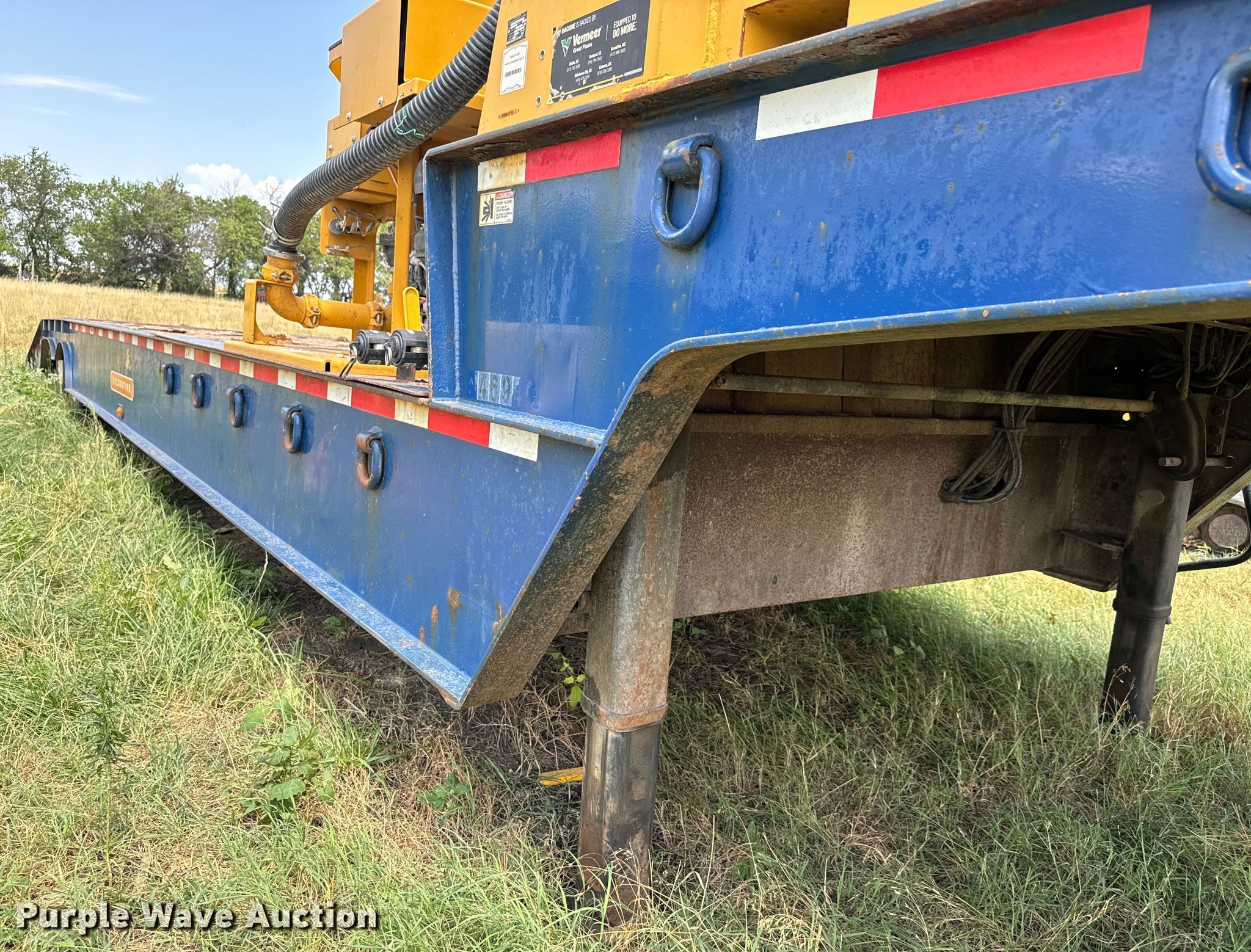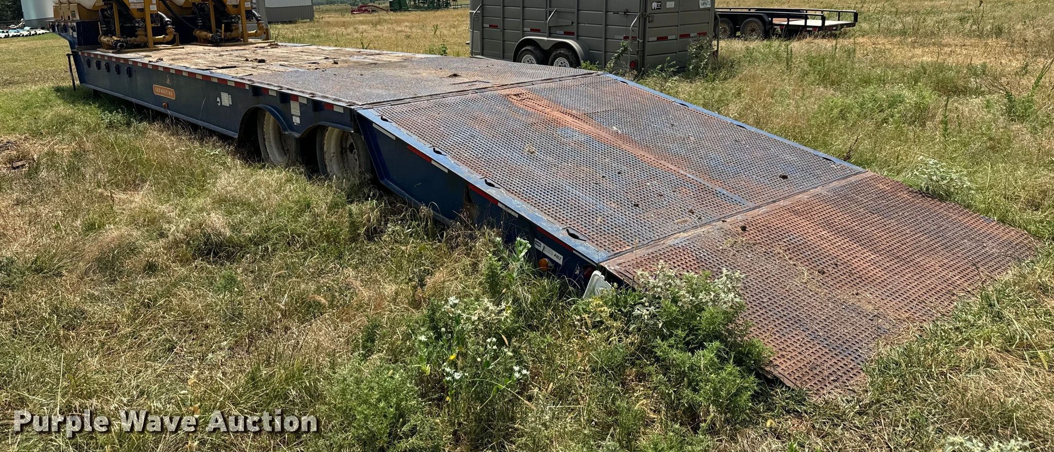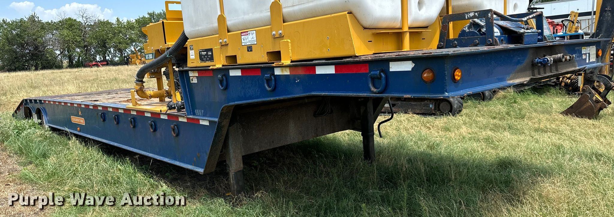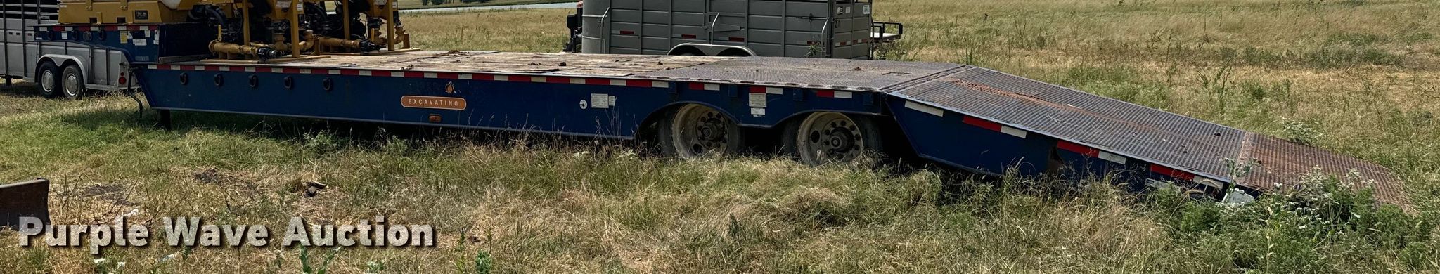 2007 Trail-Eze TE80HT48 drop deck hydratail equipment trailer. VIN: 1DA72C7D47C018738. Dimensions Overall: 48' L x 102" W, Deck: 38' 4" L x 102" W, Top deck length: 9' 10", Deck height: 36", Hydratail length: 8', Ramps: Hydraulic Length: 47". Features Deck type: Wood, Winch Braden Winch Co., Hydraulic controls: Manual. Chassis Landing gear: Dual, Suspension: Air, Brakes: Air, Axles: Tandem, GVWR: 97,400 lbs, GAWR: 20,280 lbs. Tires Steel wheels, Size: 255/70R22.5. Notes Deck boards damaged, Fluid mixer not included, will be removed prior to auction. Kansas title. Title distribution may be delayed up to 30 days from verification of funds. Superior Excavating LLC - Open Inspection August 14 and 19. 10401 North Woodlawn Boulevard. Valley Center, KS 67147