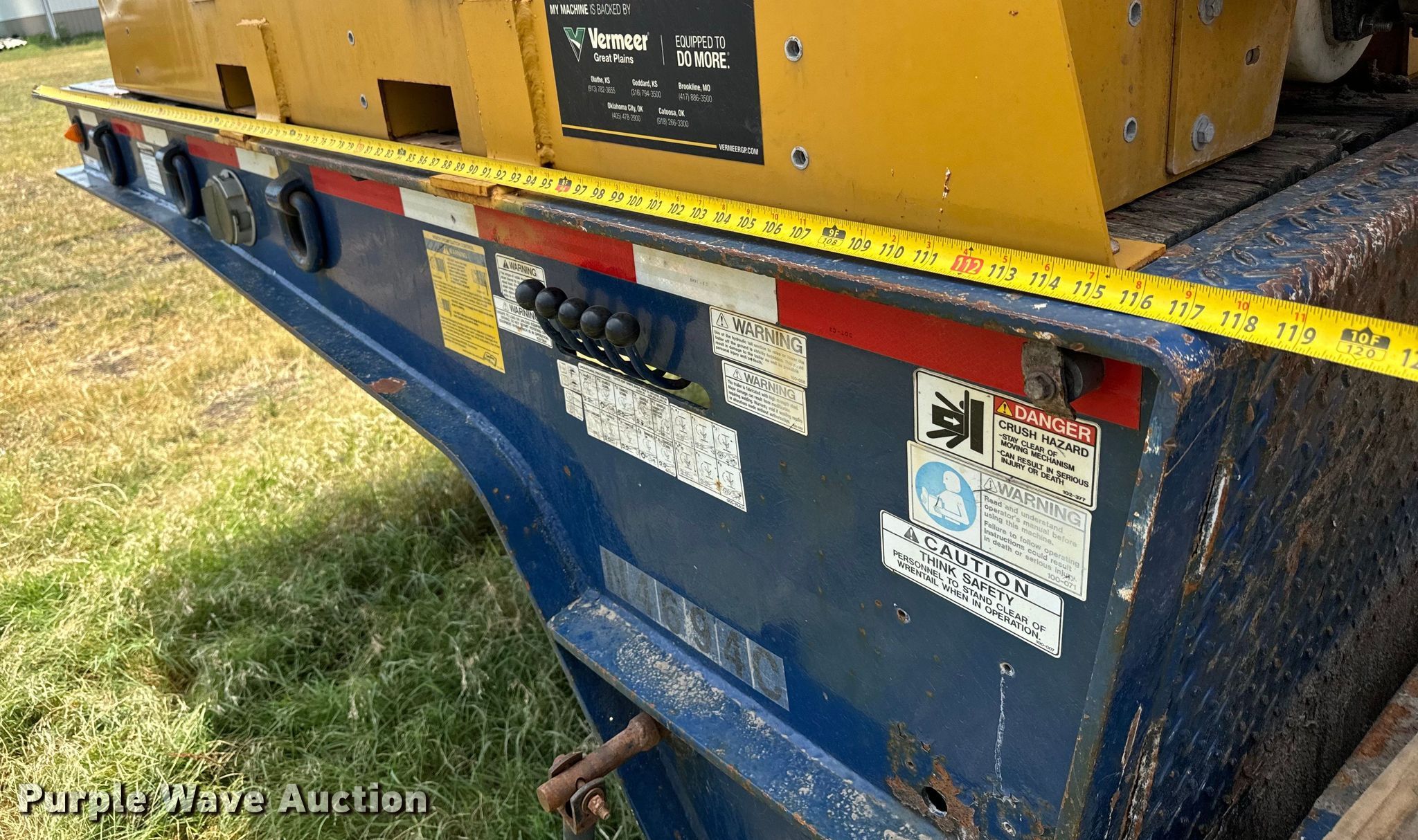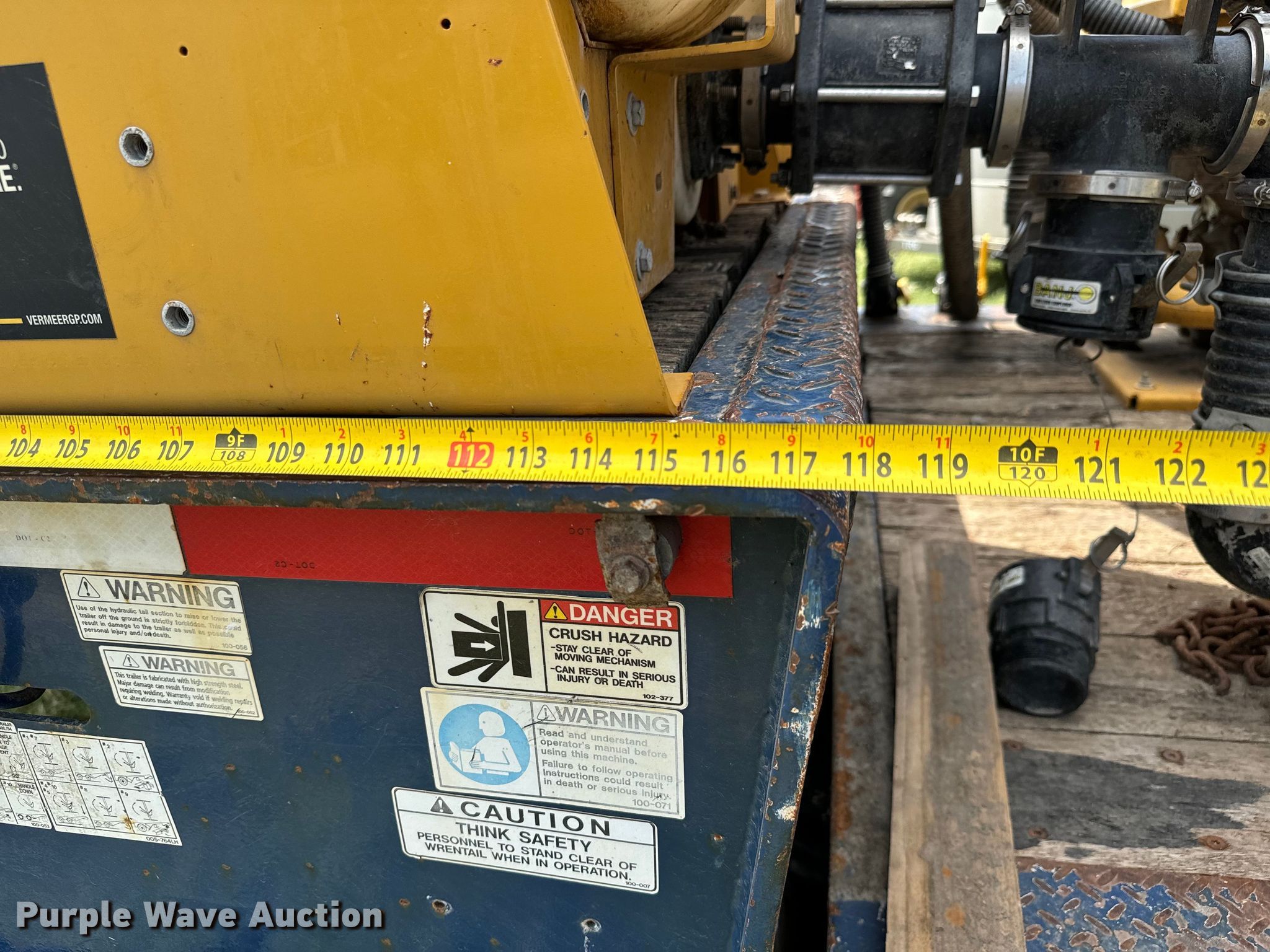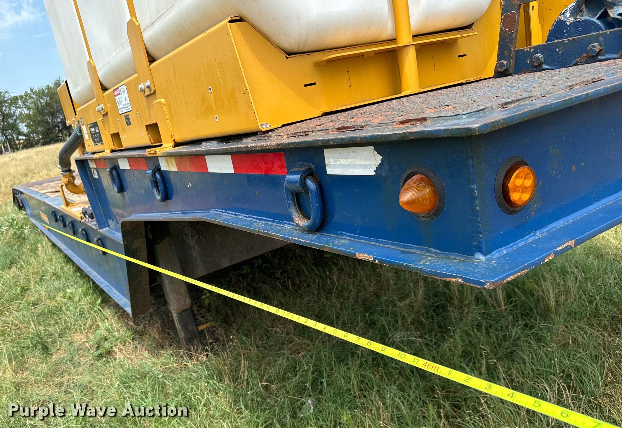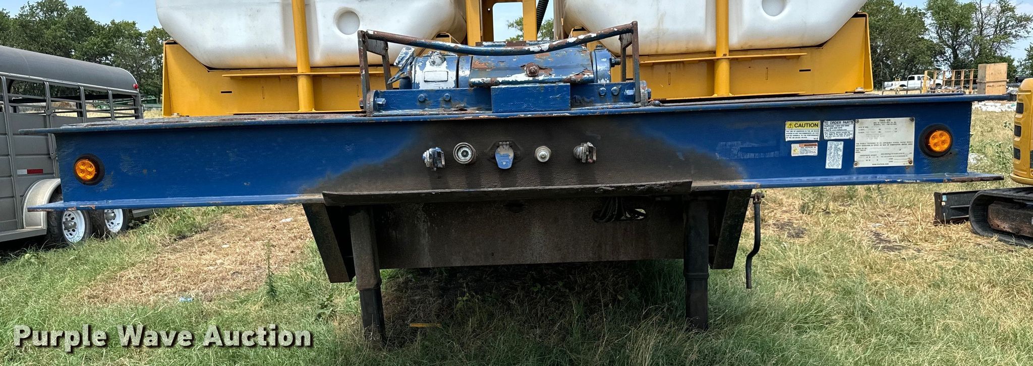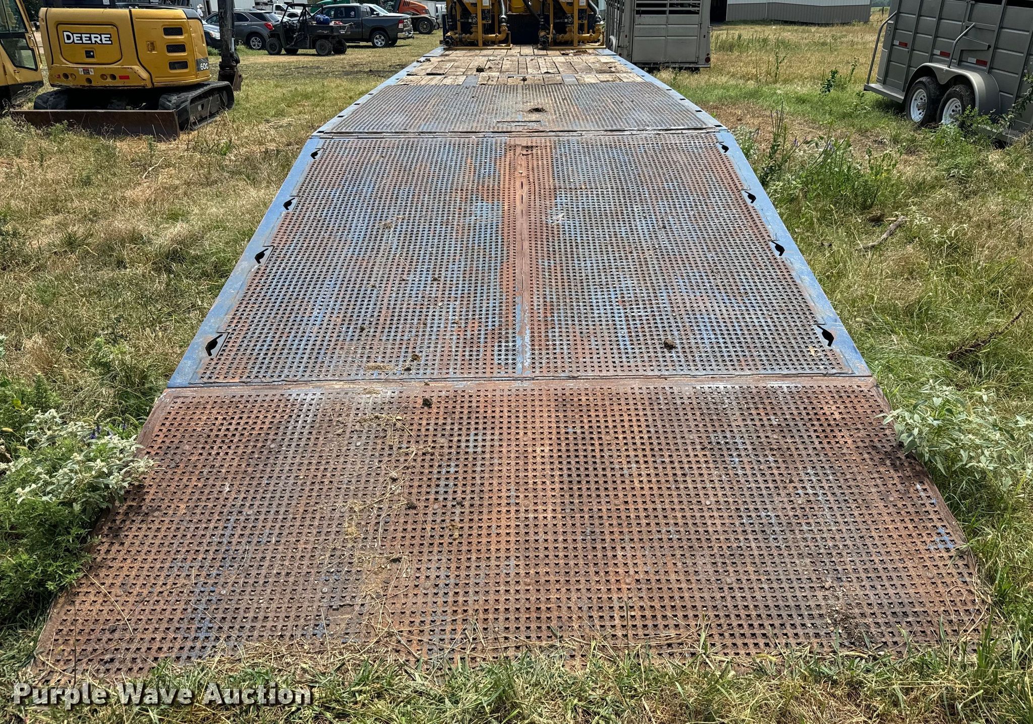 2007 Trail-Eze TE80HT48 drop deck hydratail equipment trailer. VIN: 1DA72C7D47C018738. Dimensions Overall: 48' L x 102" W, Deck: 38' 4" L x 102" W, Top deck length: 9' 10", Deck height: 36", Hydratail length: 8', Ramps: Hydraulic Length: 47". Features Deck type: Wood, Winch Braden Winch Co., Hydraulic controls: Manual. Chassis Landing gear: Dual, Suspension: Air, Brakes: Air, Axles: Tandem, GVWR: 97,400 lbs, GAWR: 20,280 lbs. Tires Steel wheels, Size: 255/70R22.5. Notes Deck boards damaged, Fluid mixer not included, will be removed prior to auction. Kansas title. Title distribution may be delayed up to 30 days from verification of funds. Superior Excavating LLC - Open Inspection August 14 and 19. 10401 North Woodlawn Boulevard. Valley Center, KS 67147