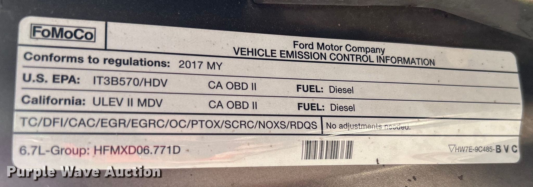 Purple Wave is selling a used 3/4 or 1 Ton Pickup or Van in Oklahoma. This item is a 2017 Ford F350 Super Duty Crew Cab flatbed pickup truck with the following: Miles: 152,058 on odometer, VIN: 1FT8W3DT8HEC62483