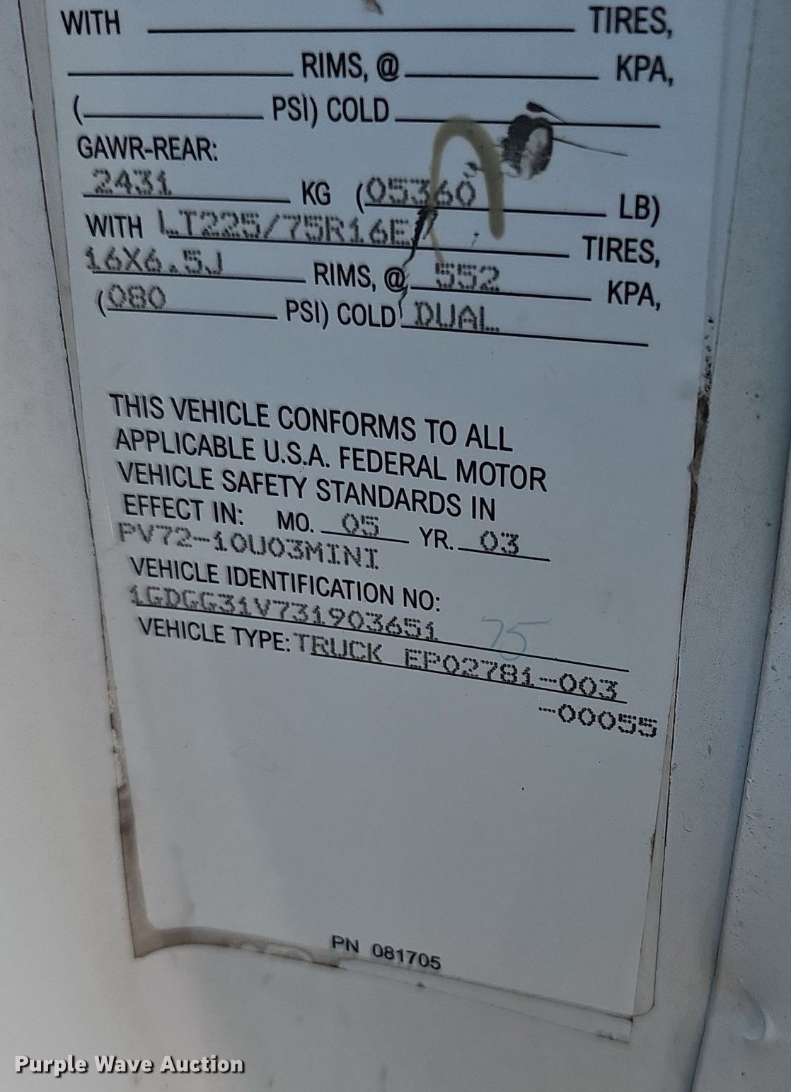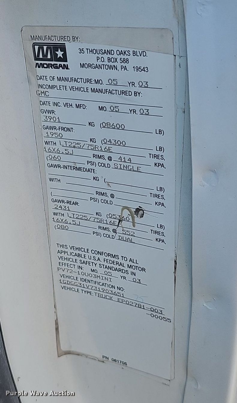Purple Wave is selling a used Box Truck in Missouri. This item is a 2003 GMC Savana box truck with the following: Miles: 125,304 on odometer, VIN: 1GDGG31V731903651