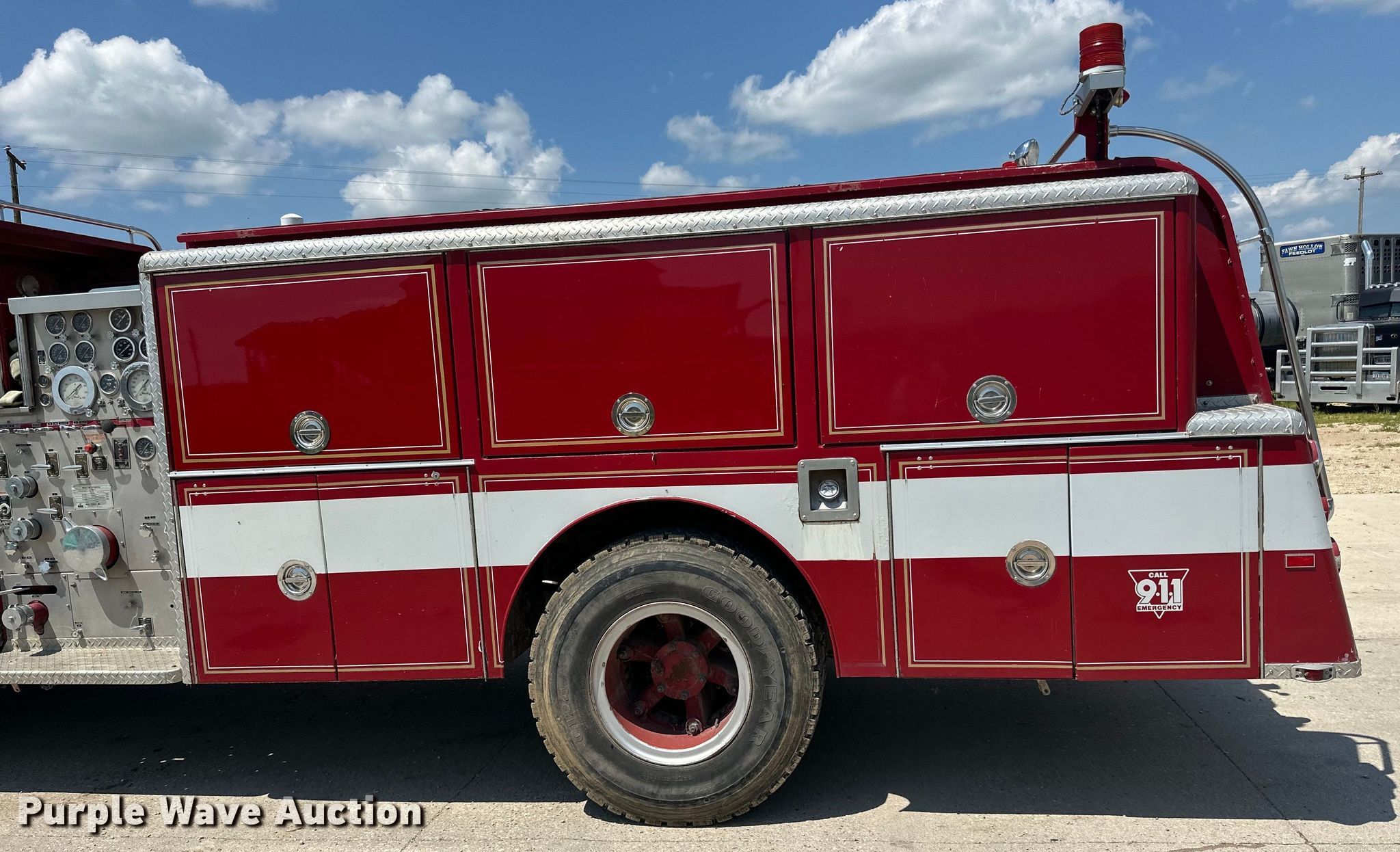 Purple Wave is selling a used Fire Truck or Emergency Vehicle in Iowa. This item is a 1983 Mack 600 MC600 pumper fire truck with the following: Miles: 82,153 on odometer, Hours: 7,500 on meter, VIN: 1M1H123Y7DM001125
