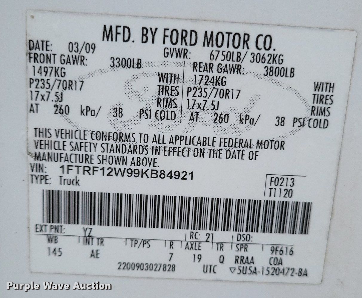 Purple Wave is selling a used 1/2 Ton Pickup or Van in Tennessee. This item is a 2009 Ford F150 pickup truck with the following: Miles: 318,331 on odometer, VIN: 1FTRF12W99KB84921, Unit #: 17
