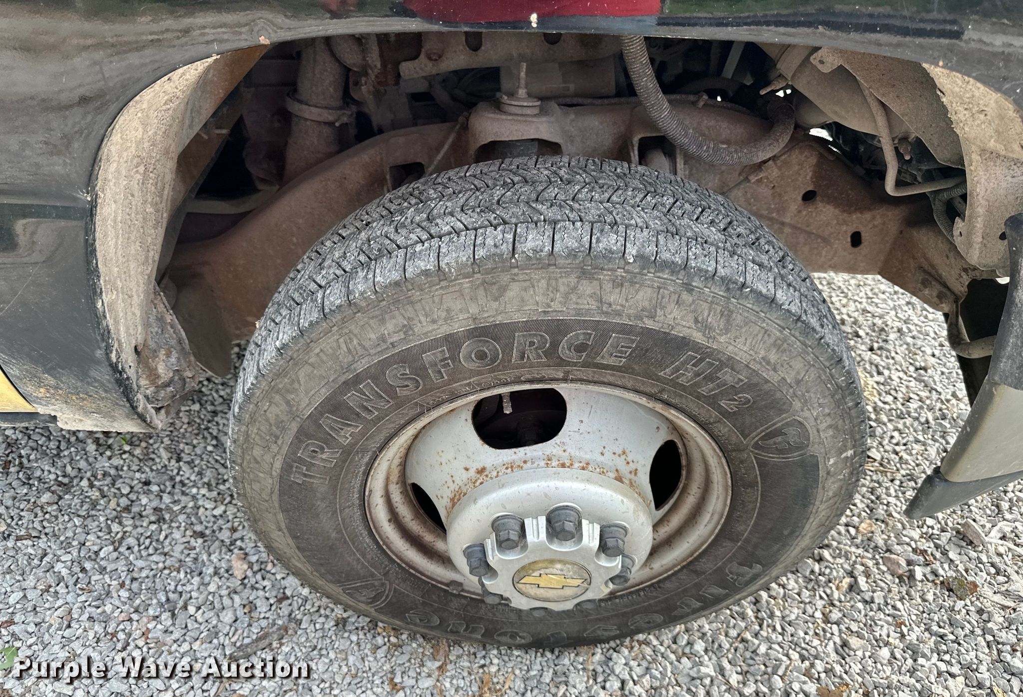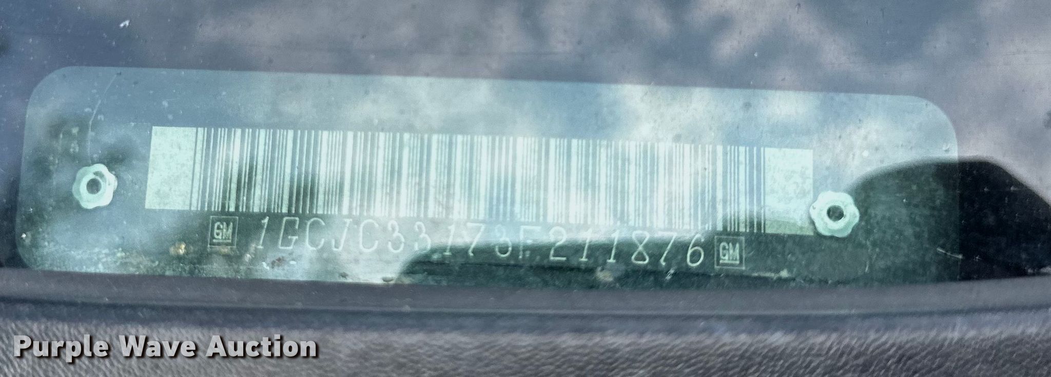 2003 Chevrolet Silverado 3500 Crew Cab flatbed pickup truck. Miles: 278,166 on odometer, VIN: 1GCJC33173F211876. Engine Displacement: 6.6L V8 OHV, Cylinders: 8, Fuel type: Diesel. Transmission Automatic. Interior AC, Heat. Features Flatbed 8' 5" L x 96" W. Tires Size: 235/85R16. Notes Drivers door issues, Floor rust damage , Dash warning indicator: Check engine, ABS, Airbag. Missouri title. Ace Pipe Cleaning, Inc.. Kansas City, MO 64120