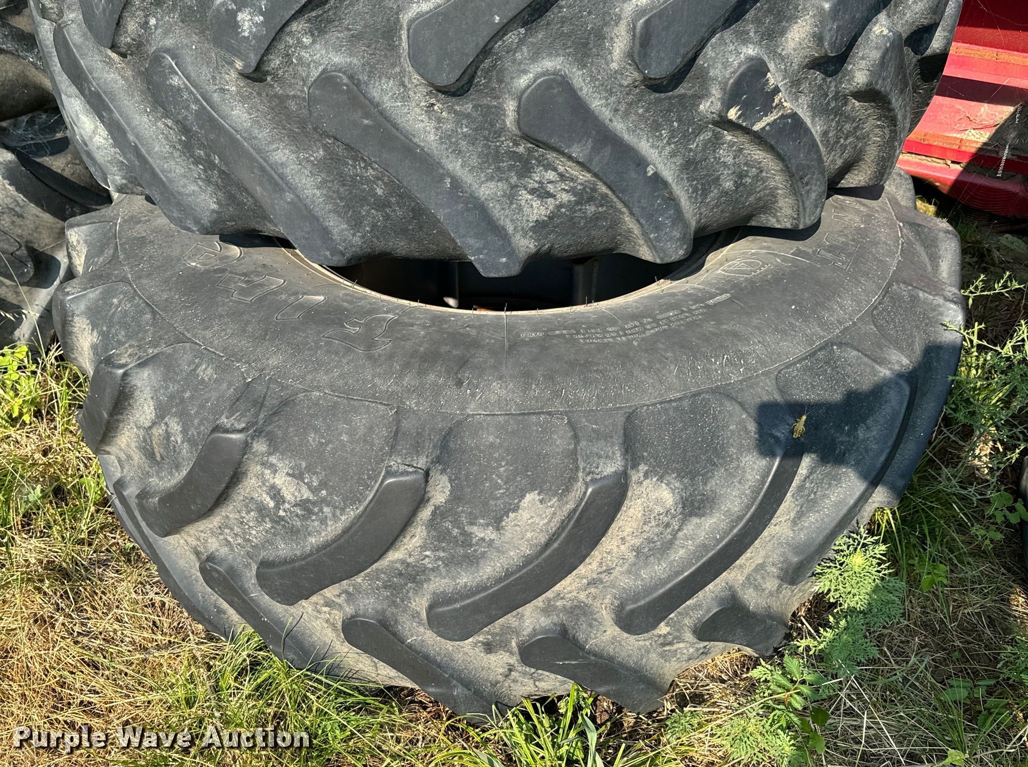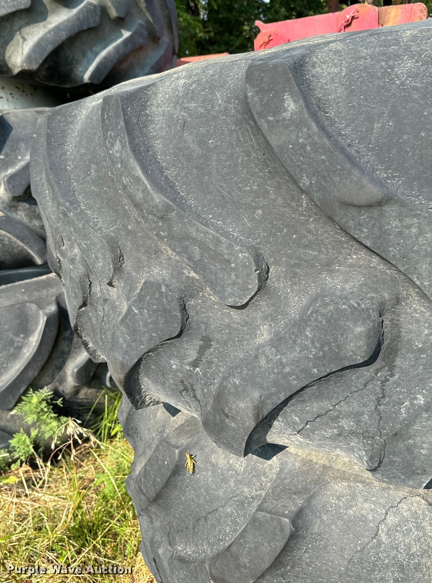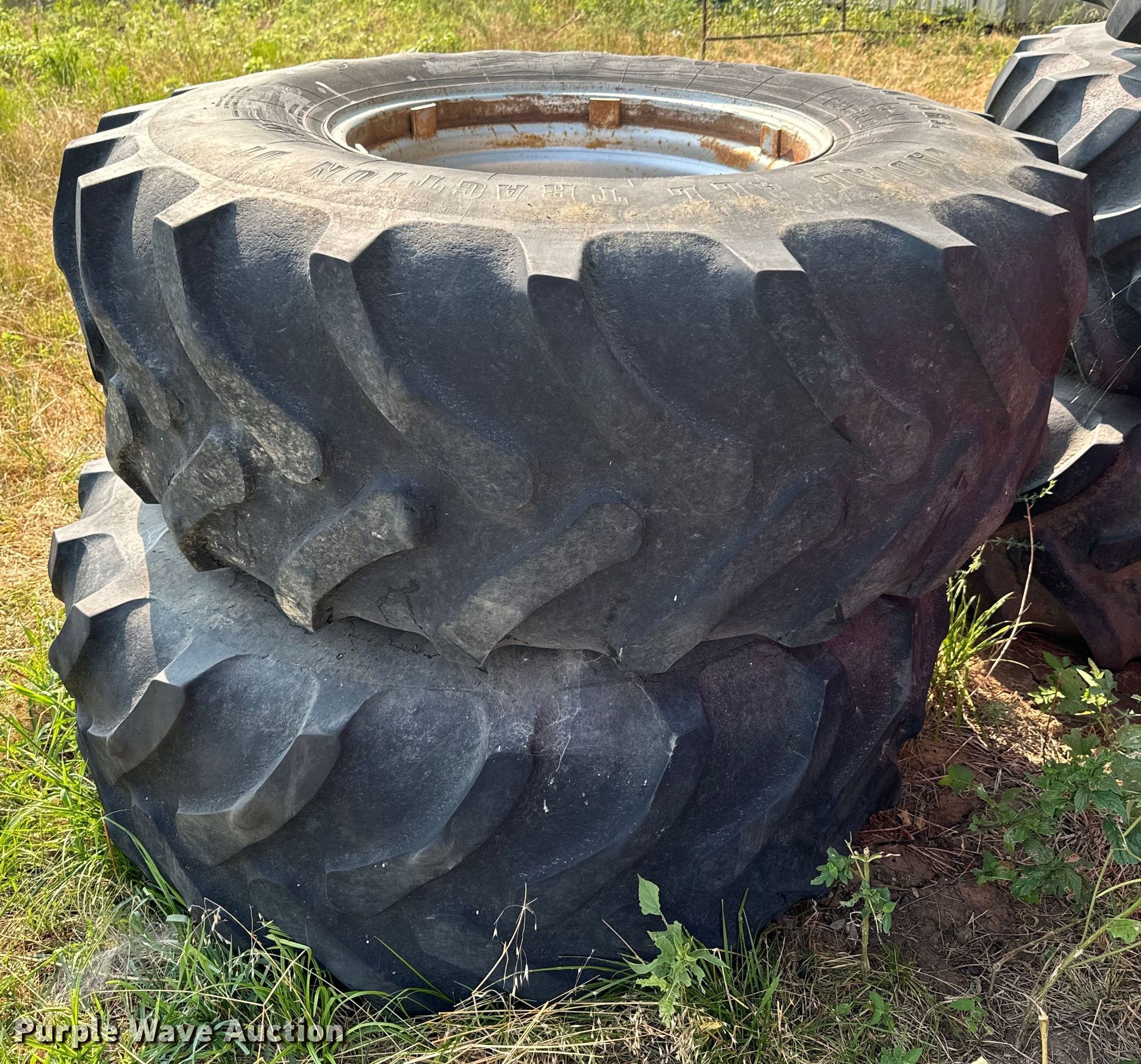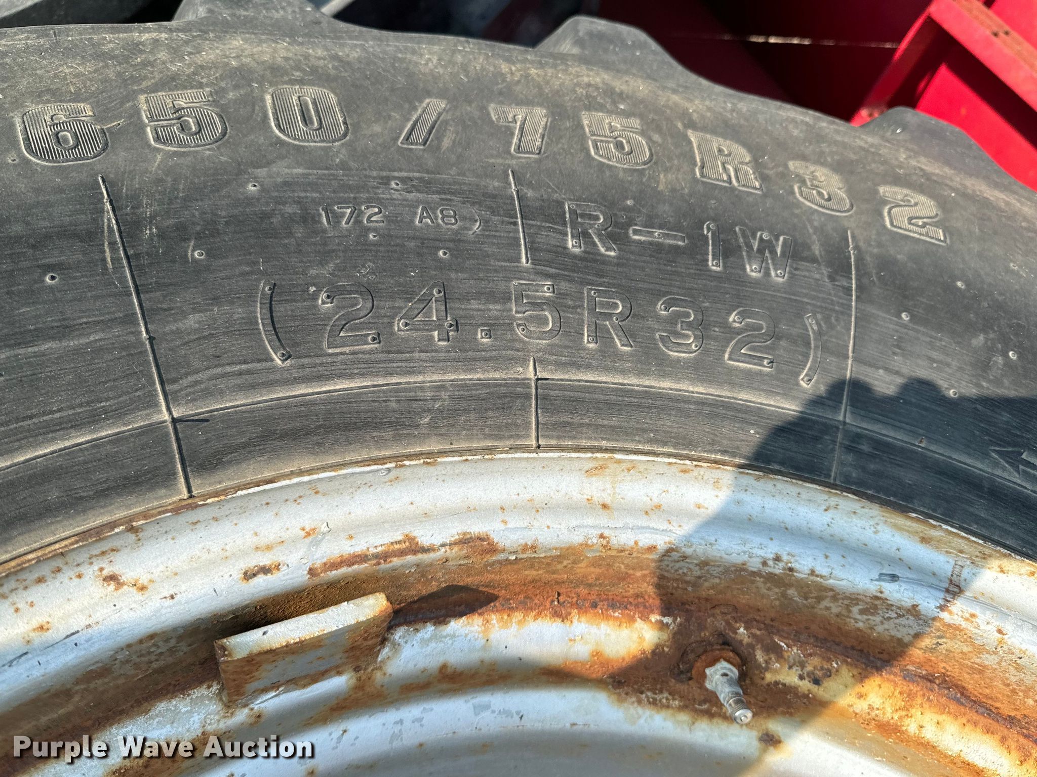 (8) tractor wheels and tires. (7) wheels and tires, (1) without wheel, Tire size: 24.5R32. Notes Removed from a Case IH 9270 tractor. Myers Dozer Service. Dennis, KS 67341