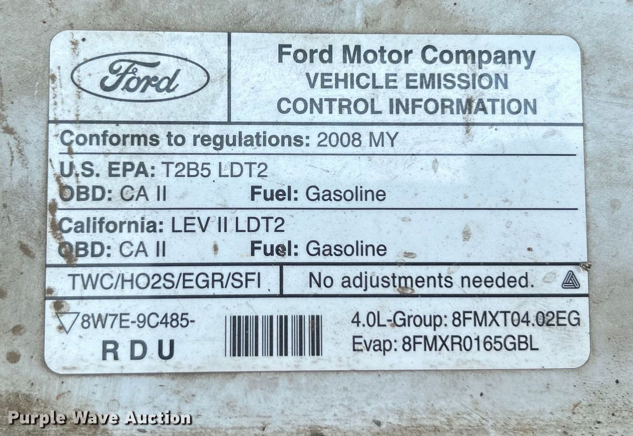 2008 Ford Ranger SuperCab pickup truck. Miles: 56,558 on odometer, VIN: 1FTYR15E88PB08016. Engine Displacement: 4.0L V6 SOHC, Cylinders: 6, Fuel type: Gas. Transmission Automatic, Four wheel drive. Interior AC, Heat, Cruise control. Tires Size: 255/70R16. Notes Dash warning indicator: TPMS. Oklahoma title. Title distribution may be delayed up to 14 days from verification of funds. 15107 North 137th East Avenue. Collinsville, OK 74021