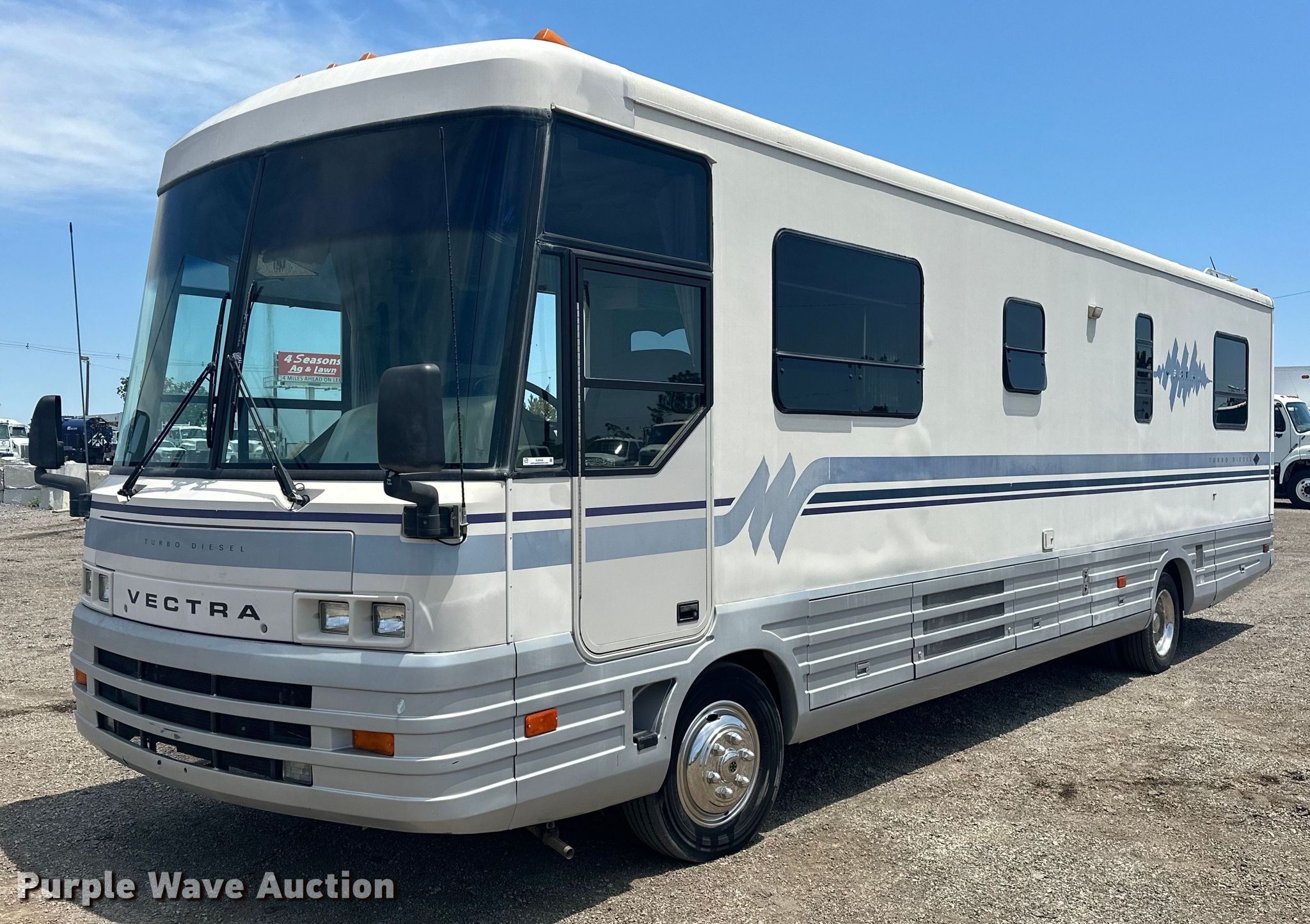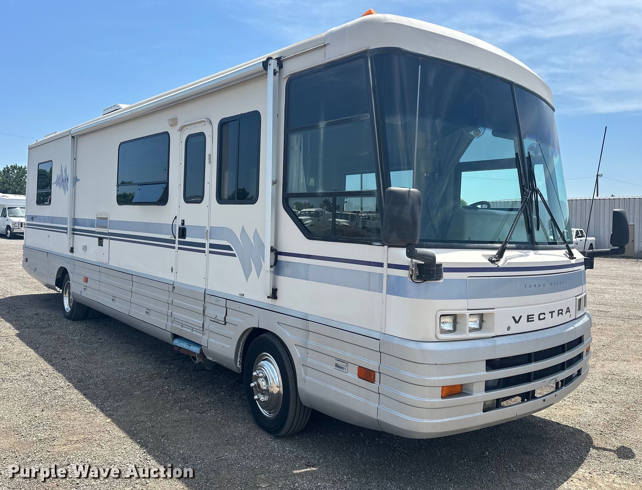 Purple Wave is selling a used RV or Camper in Oklahoma. This item is a 1994 Winnebago Vectra RV with the following: Miles: 96,291 on odometer, Camper length: 35', VIN: 4S7UT9J15RC014216