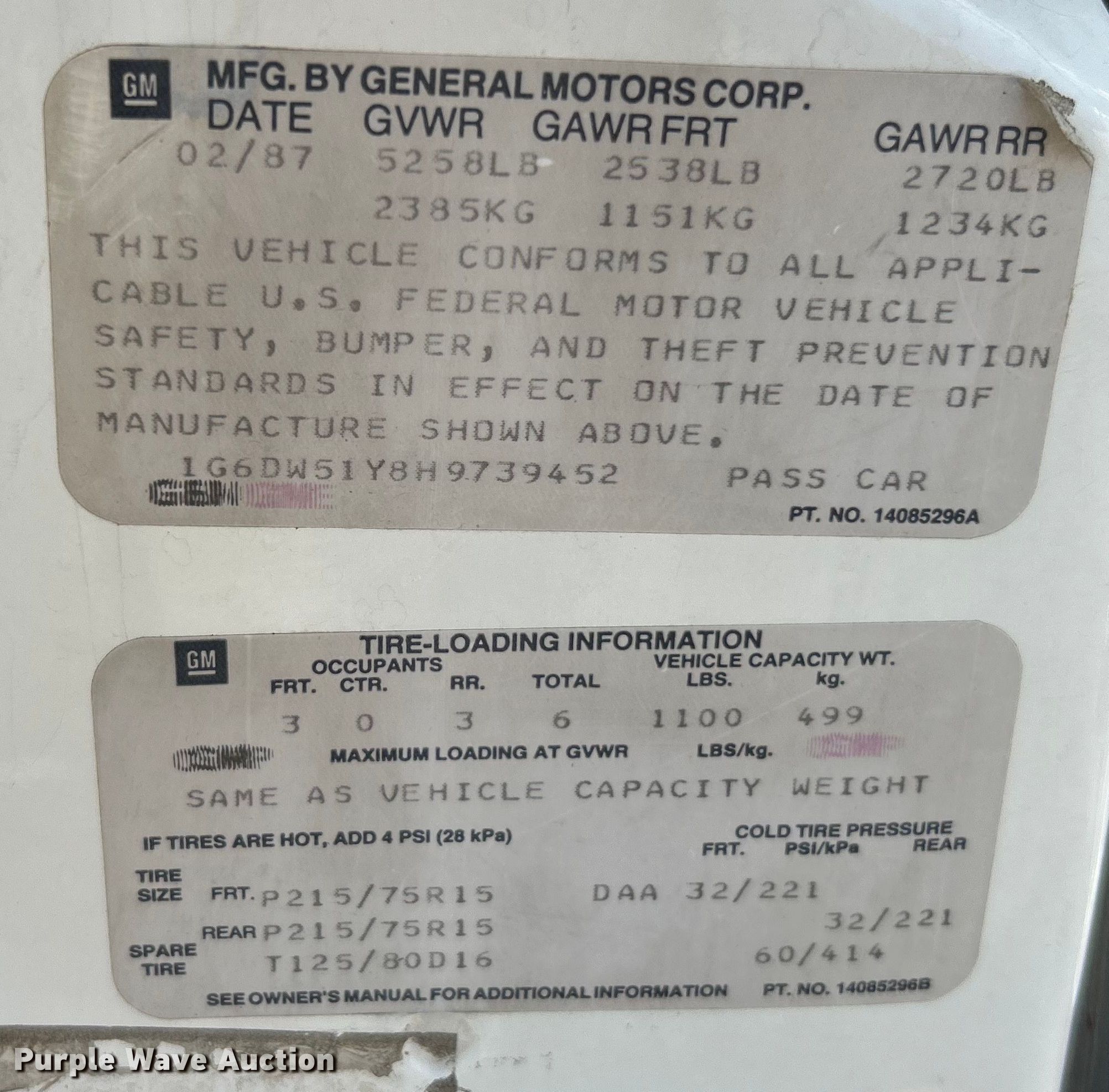 Purple Wave is selling a used Passenger Vehicle in Missouri. This item is a 1987 Cadillac Brougham with the following: Miles: 47,407 on odometer, Actual hours unknown, VIN: 1G6DW51Y8H9739452
