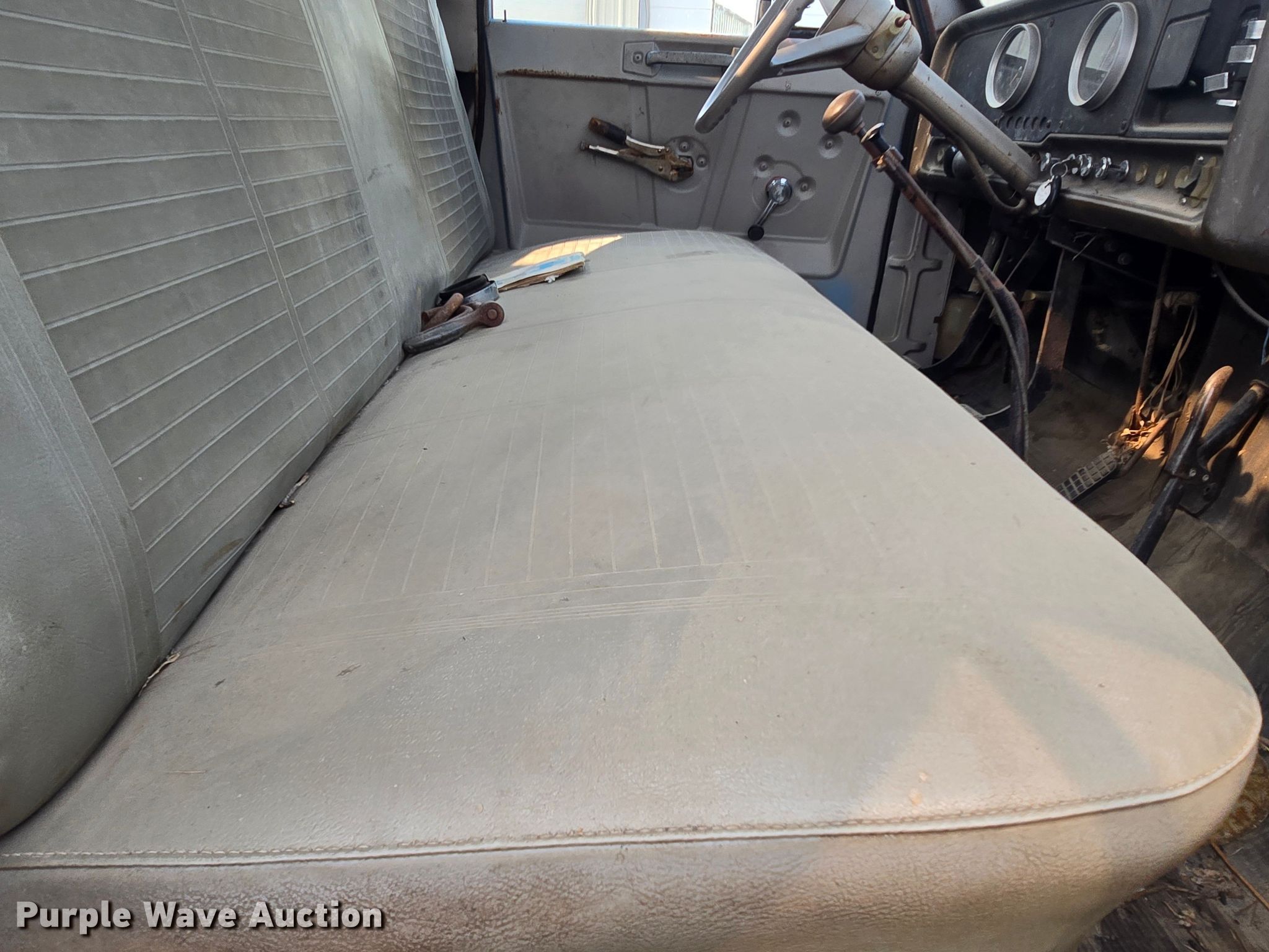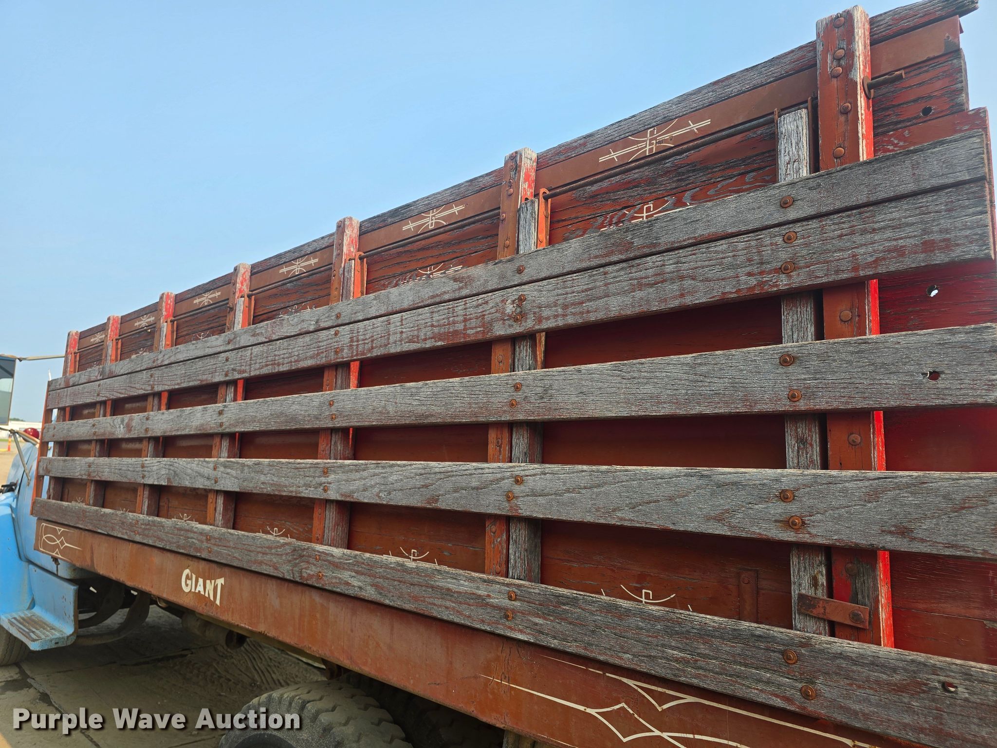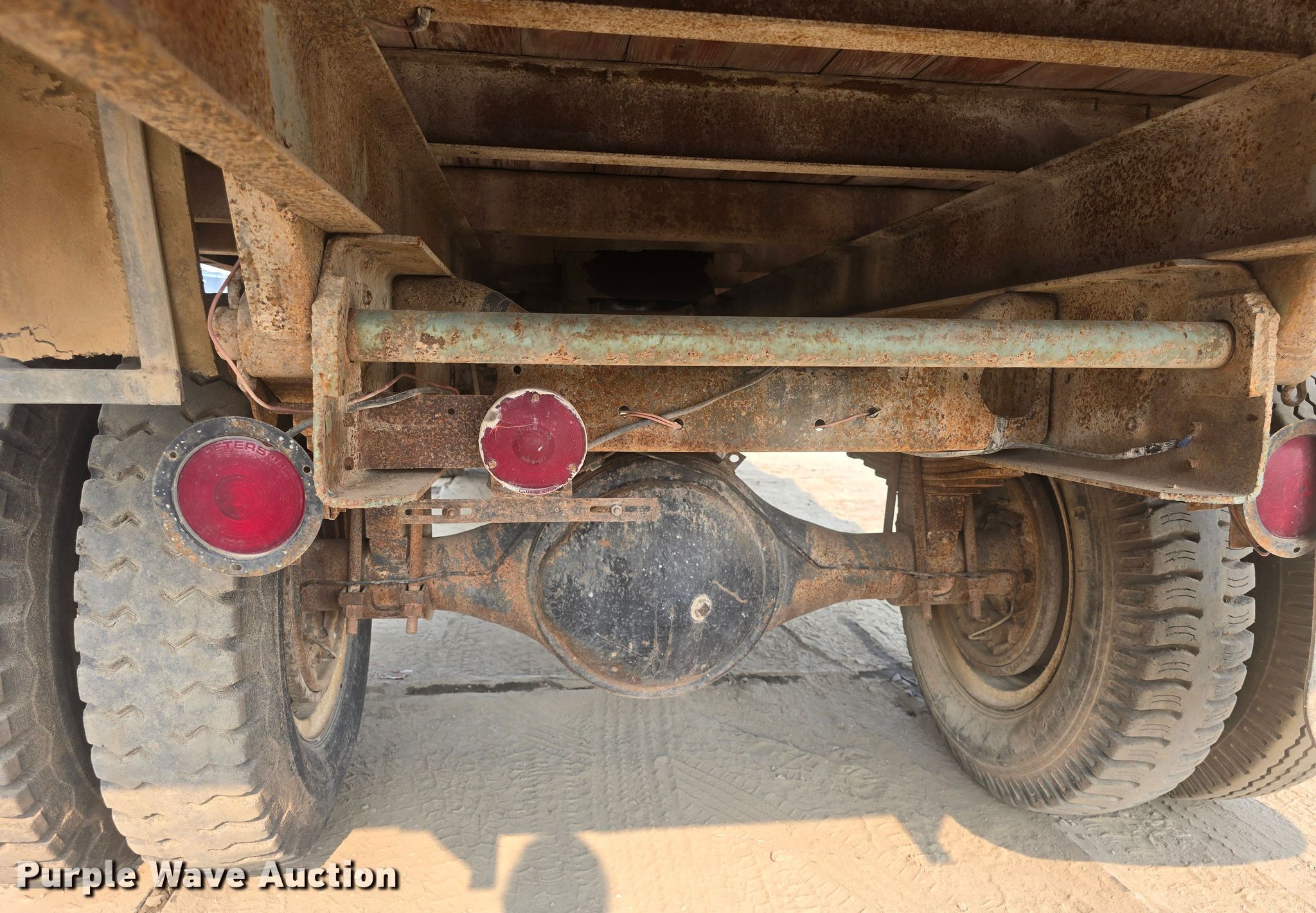 1967 GMC grain truck. Miles: 23,792 on odometer, VIN: ES4670VC1302D. Engine Cylinders: 6, Fuel type: Gas. Transmission Manual, Speed: 4, plus 2. Chassis Axles: Single, Suspension: Spring, Brakes: Hydraulic, PTO, GVWR: 16,000 lbs, Wheelbase: 169". Interior Heat. Features Dump bed Giant, 13' 6" L x 7' 10" W, Side height: 44", Ram: Single, End gate: Manual. Tires Size: 8.25-20. Notes Grain end gates included. Kansas antique title. Topeka, KS 66618