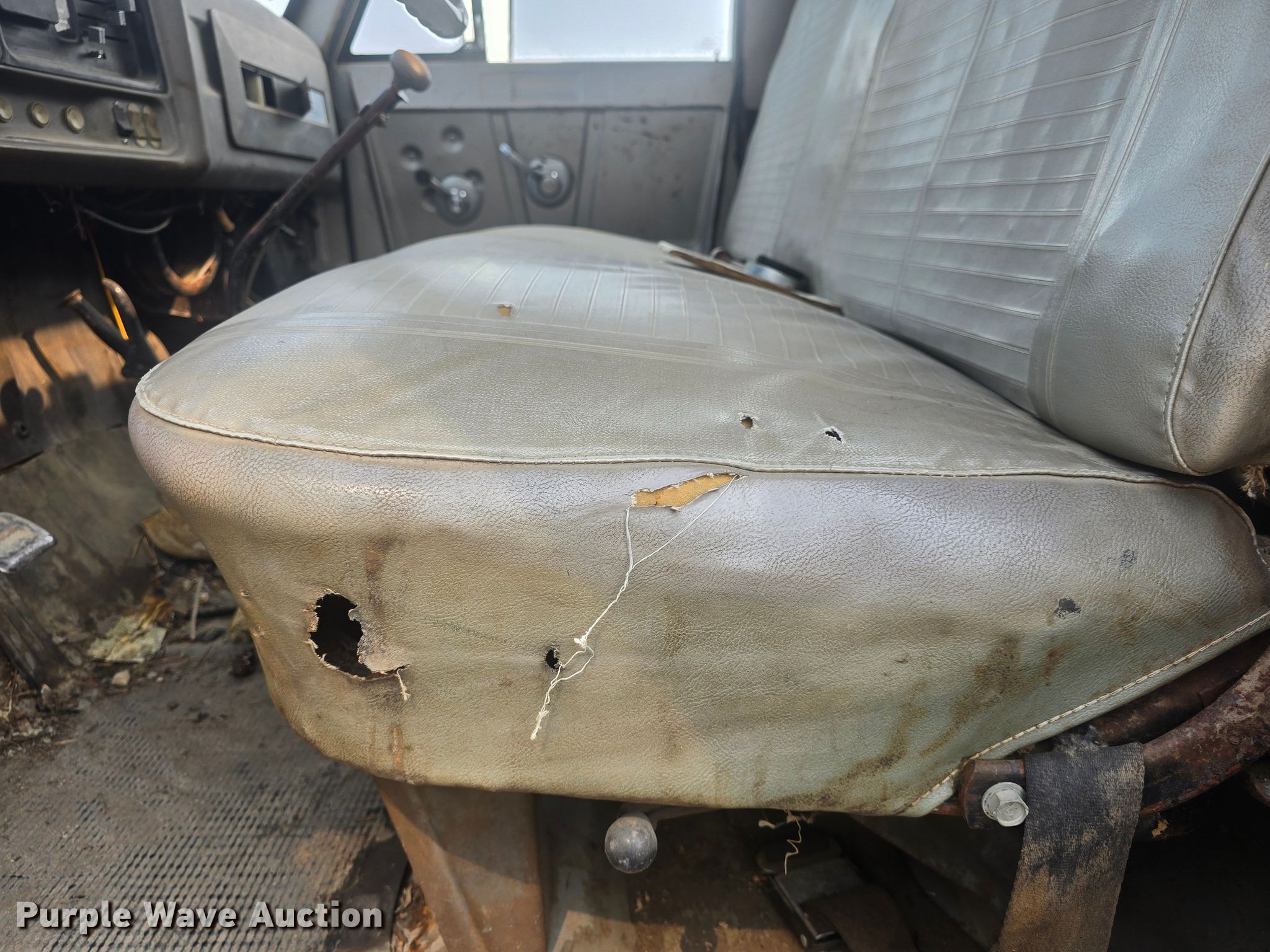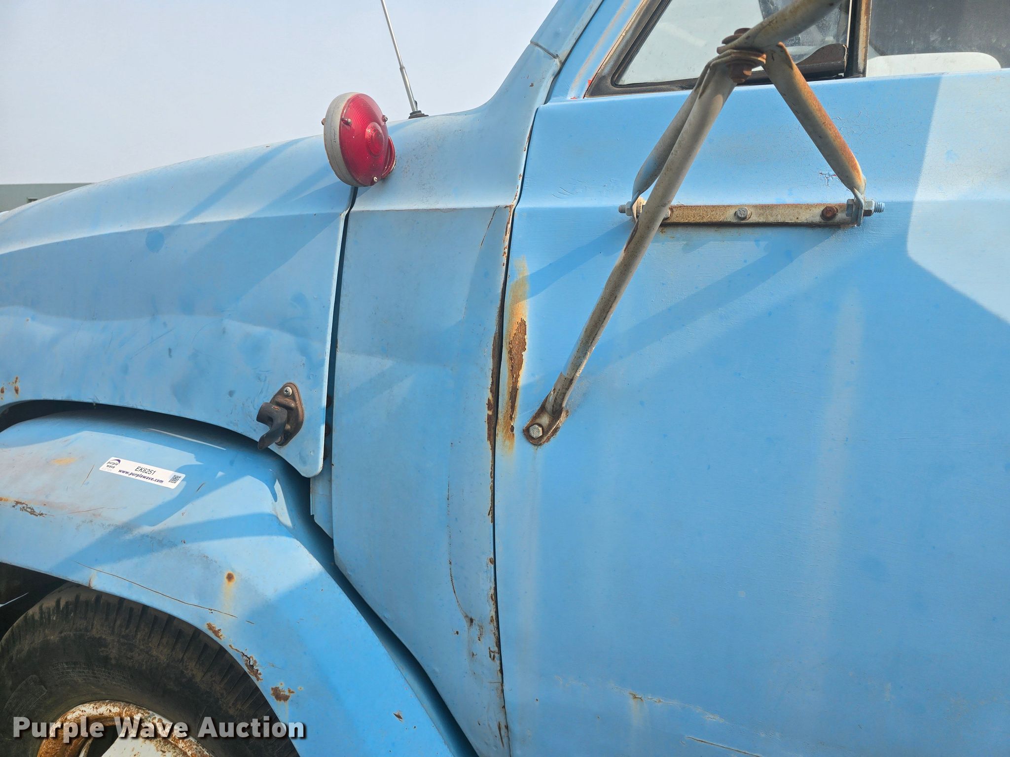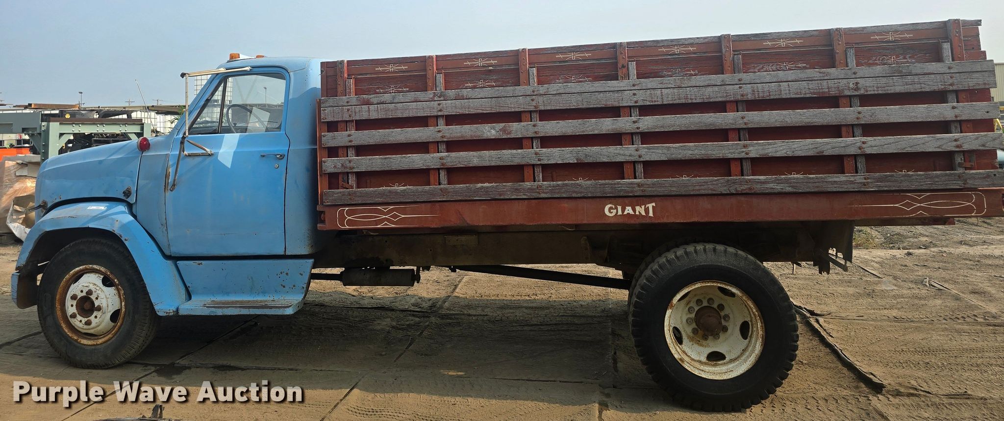 1967 GMC grain truck. Miles: 23,792 on odometer, VIN: ES4670VC1302D. Engine Cylinders: 6, Fuel type: Gas. Transmission Manual, Speed: 4, plus 2. Chassis Axles: Single, Suspension: Spring, Brakes: Hydraulic, PTO, GVWR: 16,000 lbs, Wheelbase: 169". Interior Heat. Features Dump bed Giant, 13' 6" L x 7' 10" W, Side height: 44", Ram: Single, End gate: Manual. Tires Size: 8.25-20. Notes Grain end gates included. Kansas antique title. Topeka, KS 66618