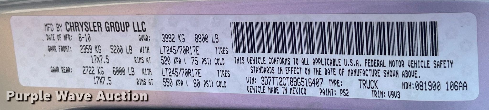 - VIN: 3D7TT2CT8BG516407