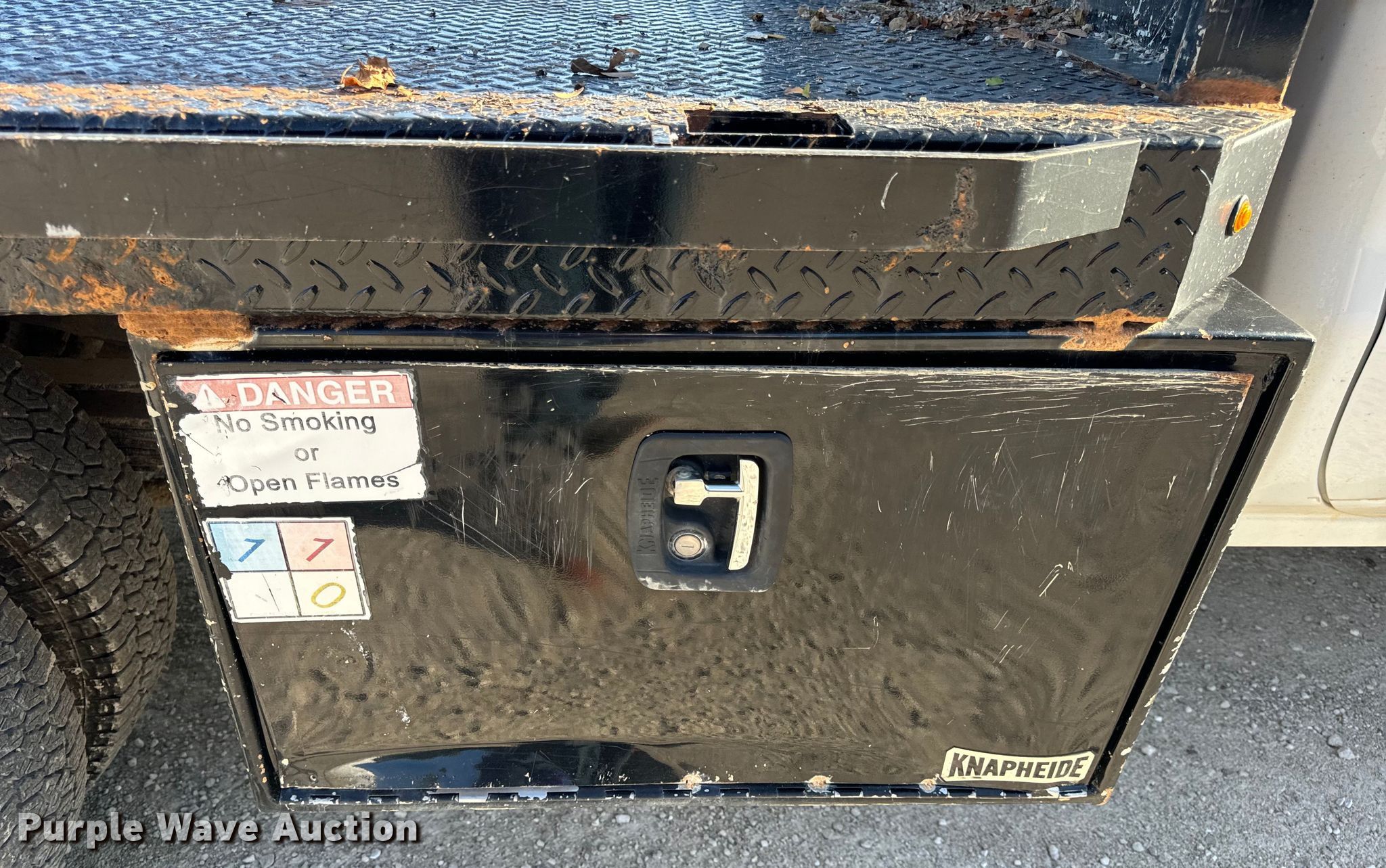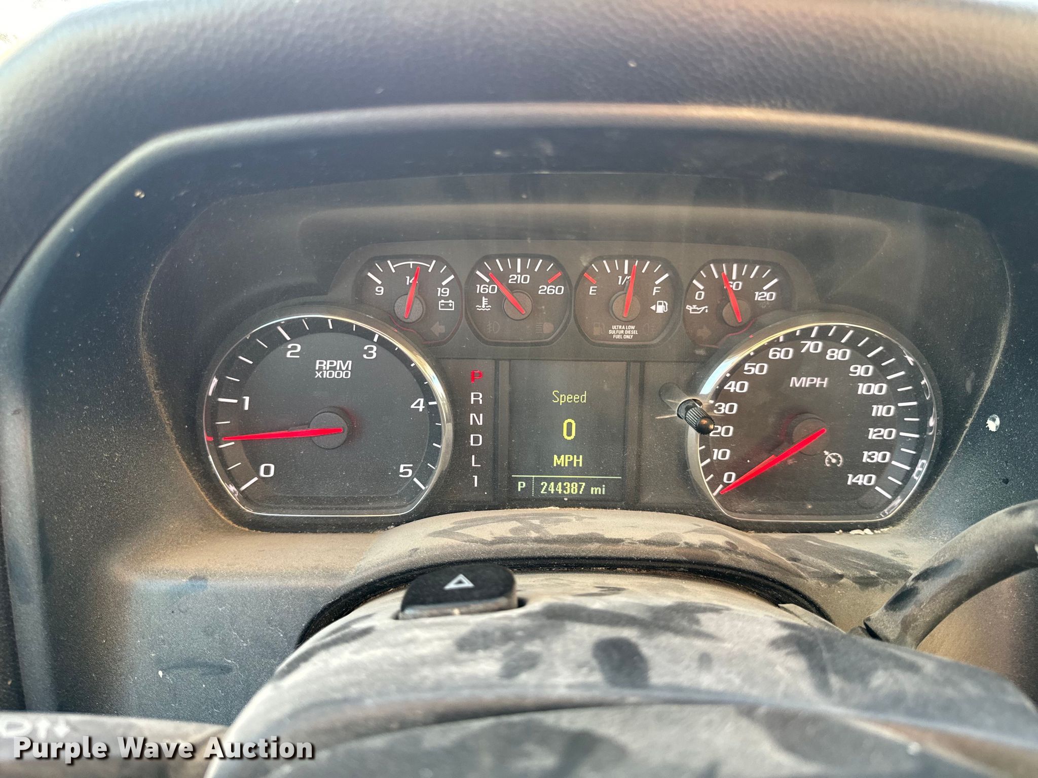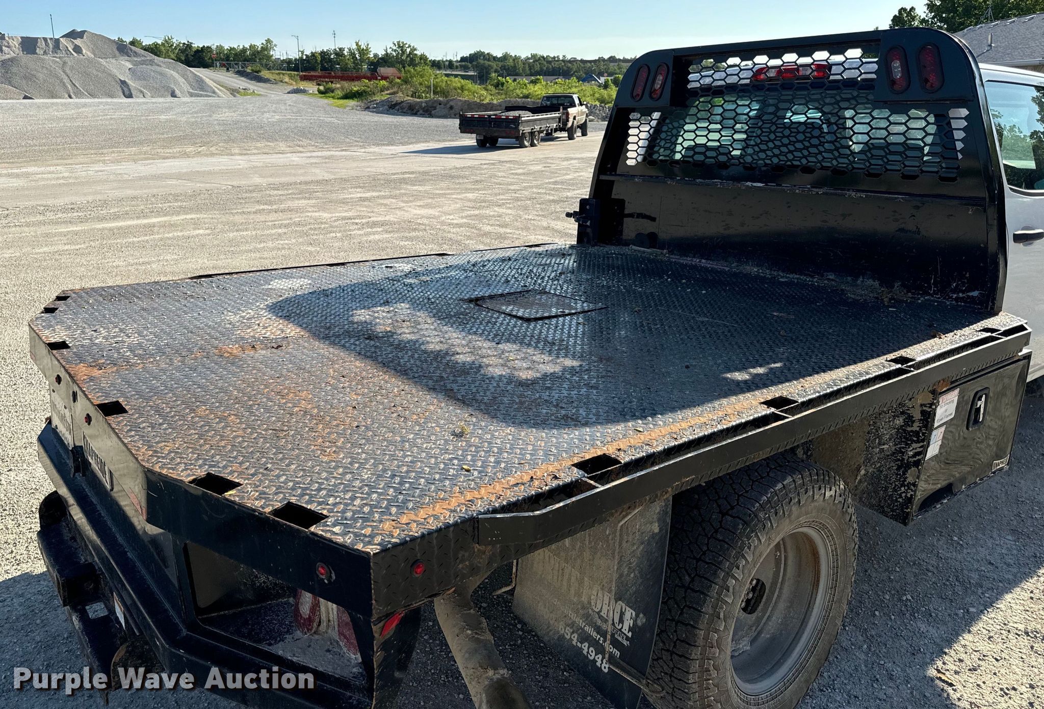 2018 Chevrolet Silverado 3500 HD Crew Cab flatbed pickup truck. Miles: 244,387 on odometer, VIN: 1GB4KYCY0JF129385. Engine Displacement: 6.6L V8 OHV, Cylinders: 8, Fuel type: Diesel. Transmission Automatic, Four wheel drive. Interior AC, Heat, Heated mirrors, Power windows, Power locks, Cruise control. Features Flatbed Knapheide, 9' 6" L x 91.5" W, Hitch: Gooseneck. Tires Size: LT235/80R17. Notes Contents included, Windshield chipped or cracked. Missouri title. Capital Quarries Company, Inc.. Jefferson City, MO 65109