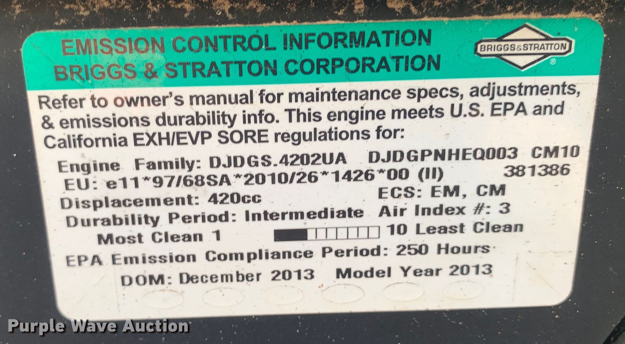 2002 Ditch Witch 1230H trencher. Serial: 1W0590. Engine Briggs & Stratton CM10, Displacement: 420 cc, Cylinders: 1, Fuel type: Gas. Transmission Hydrostatic. Features Trencher Estimated dig depth: 42", Cutting width: 4". Tires Front: 13x5.00-6NHS, Rear: 16x6.50-8NHS. Notes Possible engine issues , Non-operational unit. Vermeer Equipment of Texas. Irving, TX 75062
