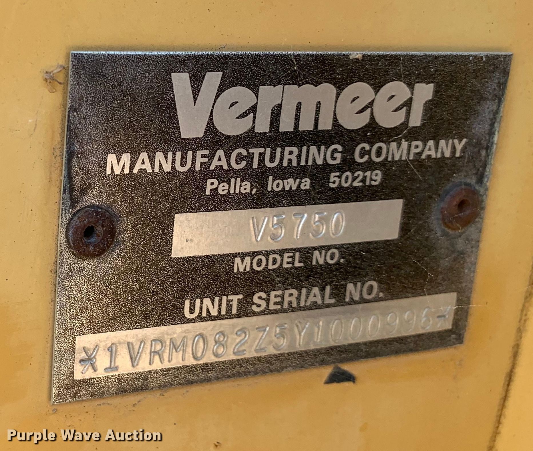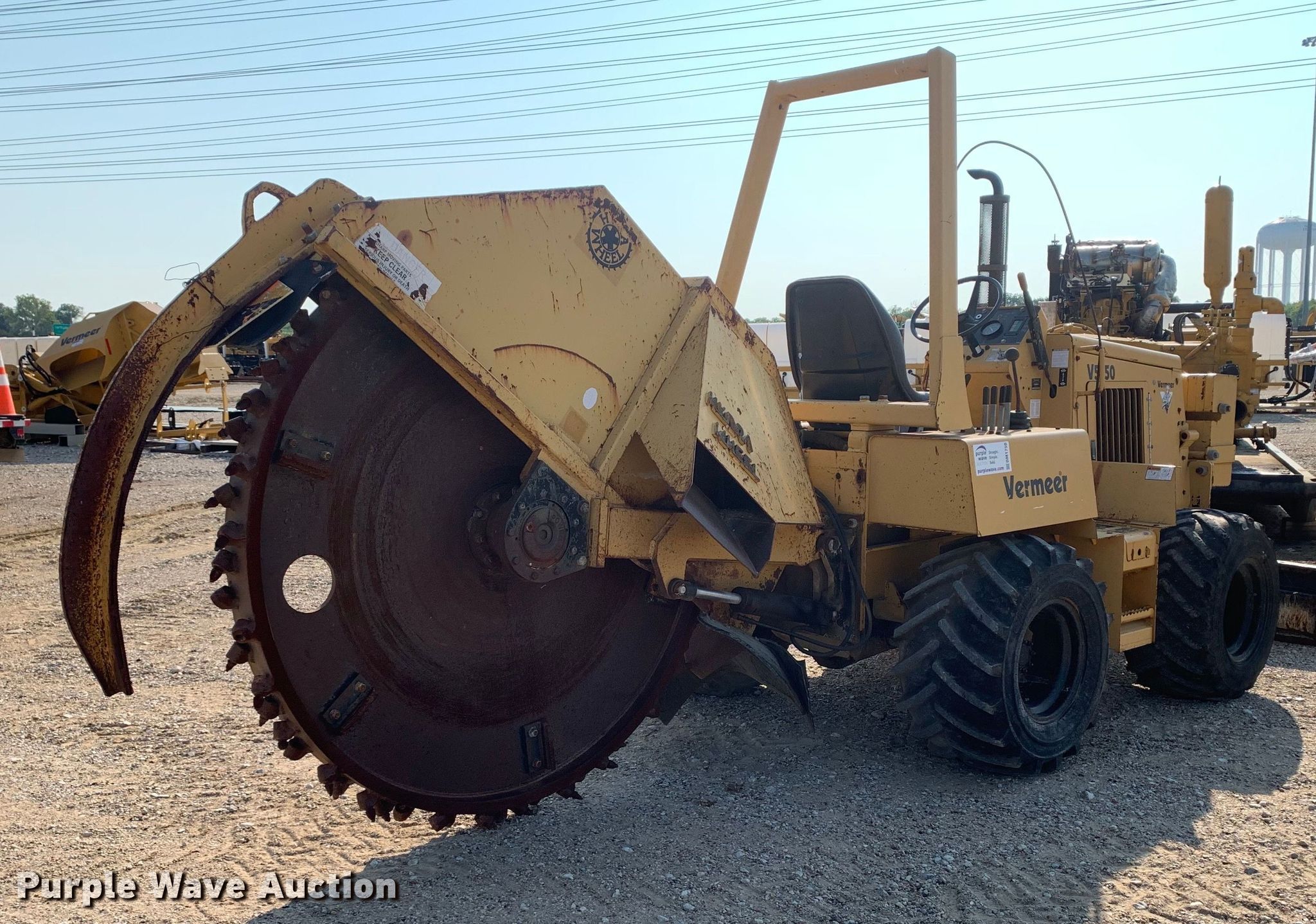 Purple Wave is selling a used Trencher or Rock Saw in Texas. This item is a 2000 Vermeer V5750 rock saw with the following: Hours: 8 on meter, Actual hours unknown, Serial: 1VRM082Z5Y1000996