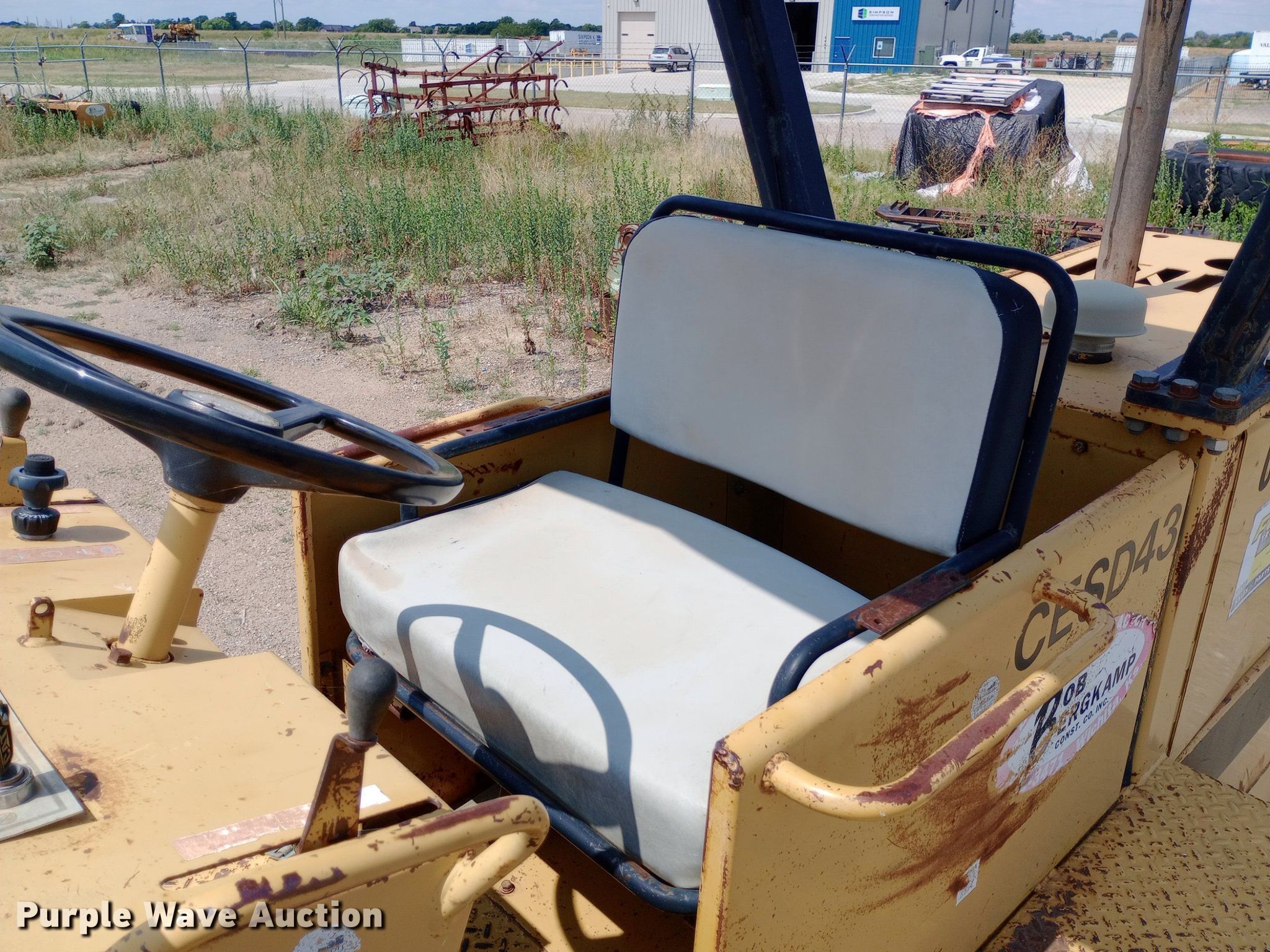 1992 Caterpillar CS-433B single drum vibratory roller. Hours: 839 on meter, Serial: 4FK00085, Unit #: CES43. Engine Detroit Diesel, Cylinders: 4, Fuel type: Diesel. Transmission Hydrostatic, Two speed travel. Operators station OROPS. Features Drum: Smooth, Vibratory system: Single, Two speed, Front drum Width: 66", Diameter: 48", Drum scrapers: Front. Tires Size: 14.9-24. Bob Bergkamp Construction Inc.. Wichita, KS 67215