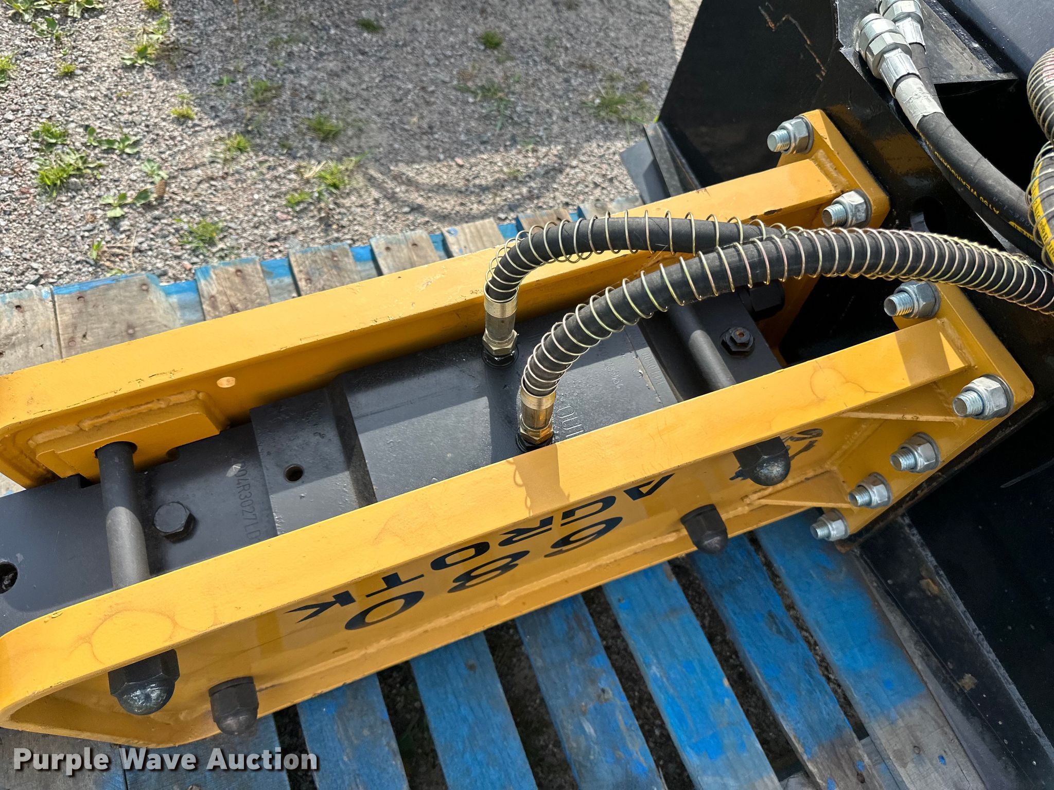 This 2022 Agrotk SSHH680 skid steer breaker will sell to the highest bidder regardless of price.