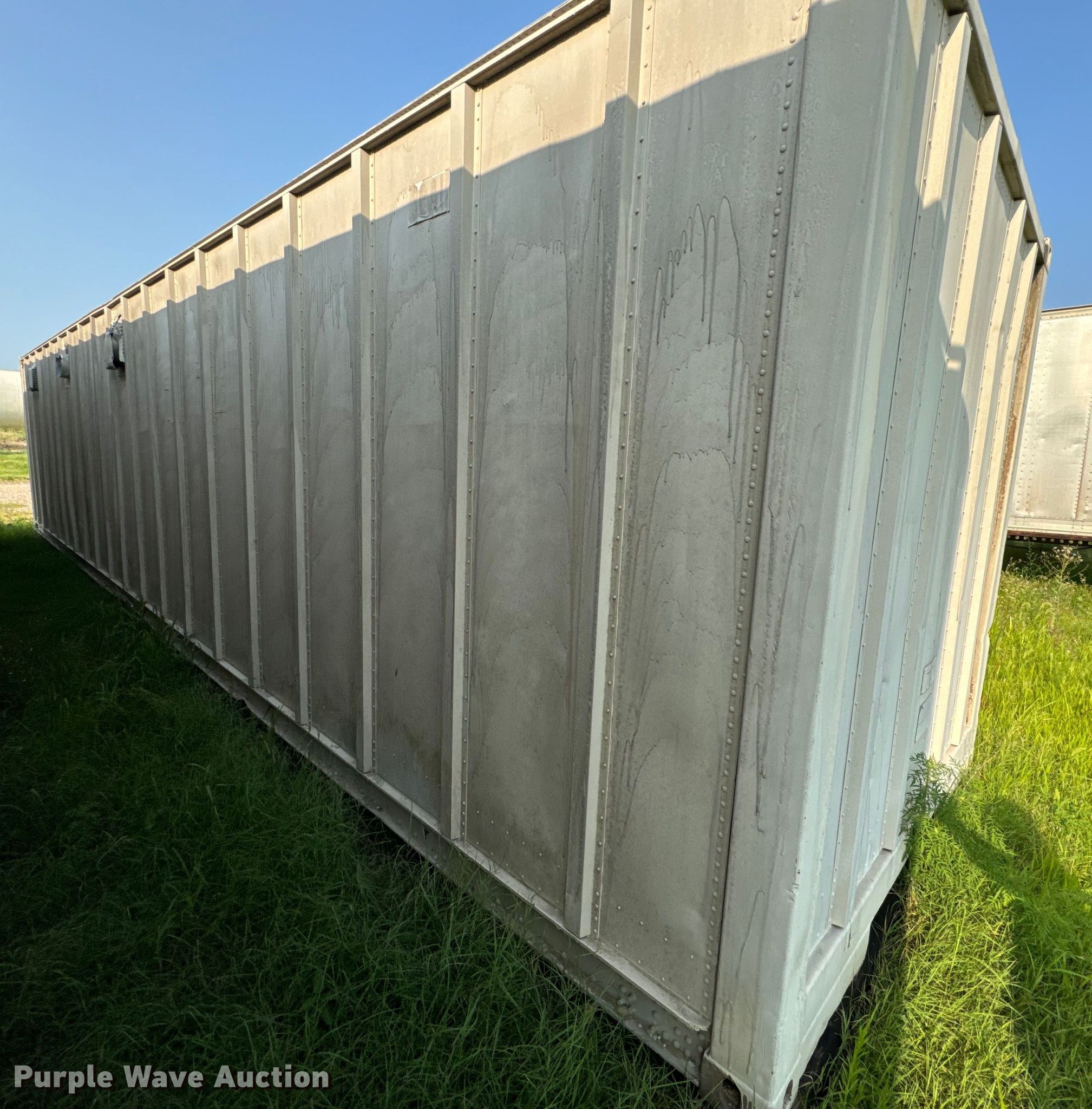 Shipping container. 40' x 96" x 102". Notes Hole in floor, Non-operational left door handle. Midwest Concrete Materials, Inc.. Manhattan, KS 66502
