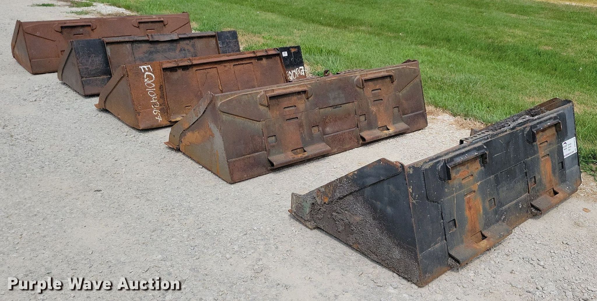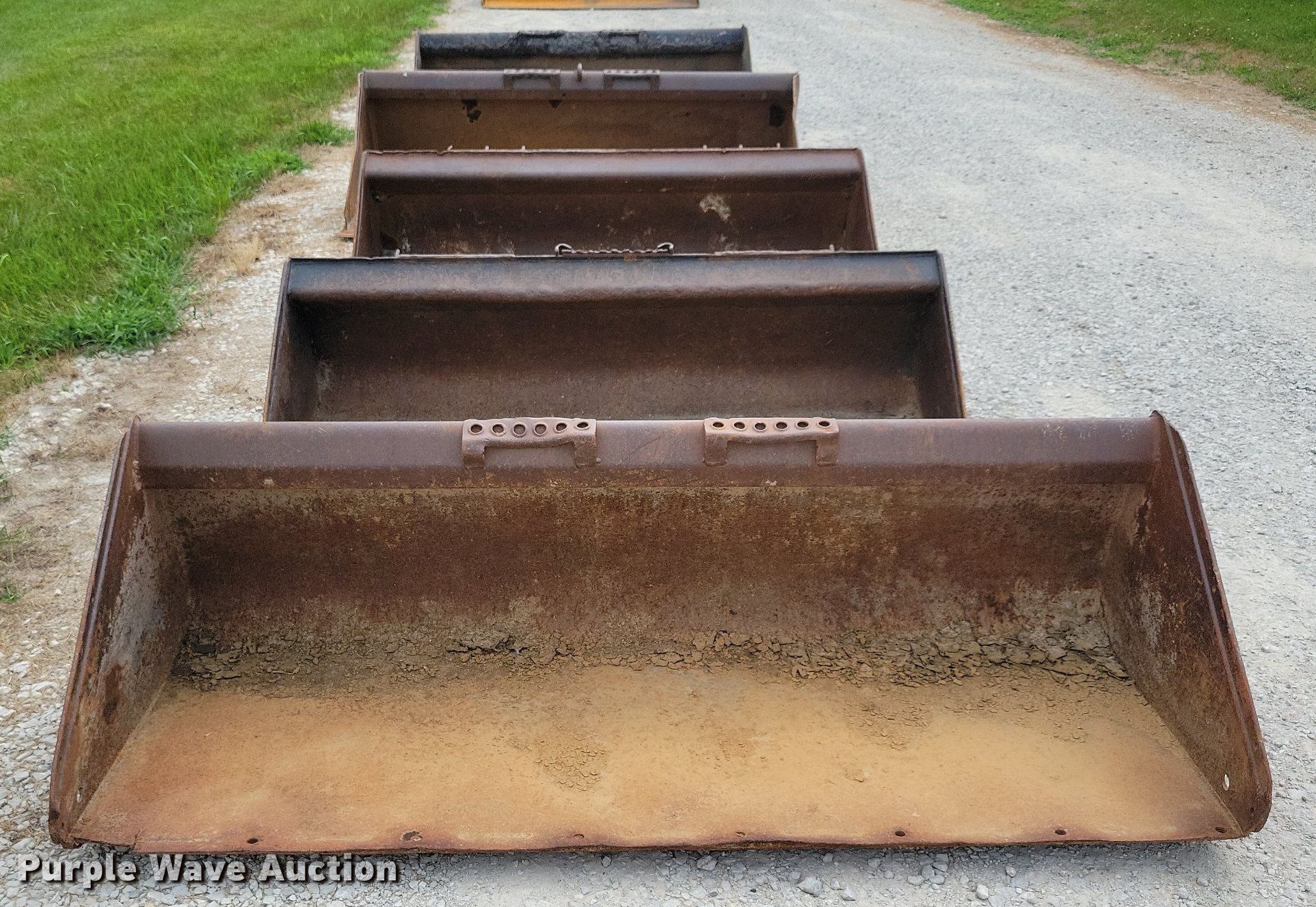 Purple Wave is selling a used Skid Steer Attach. in Iowa. This item is a (5) skid steer buckets with the following: 72" W, 67" W, 68" W, Cutting edge: Bolt-on, 75" W, Cutting edge: Bolt-on, 68" W, Cutting edge: Bolt-on