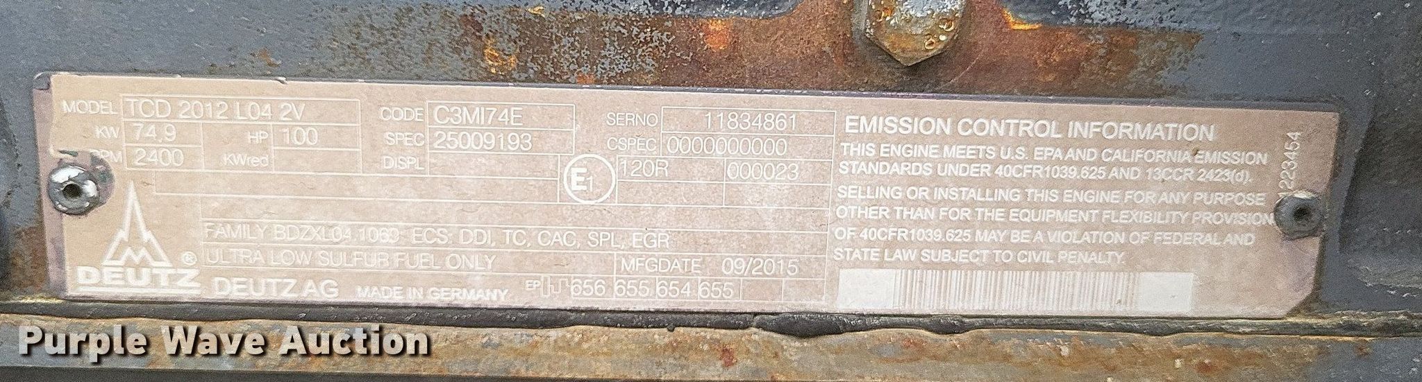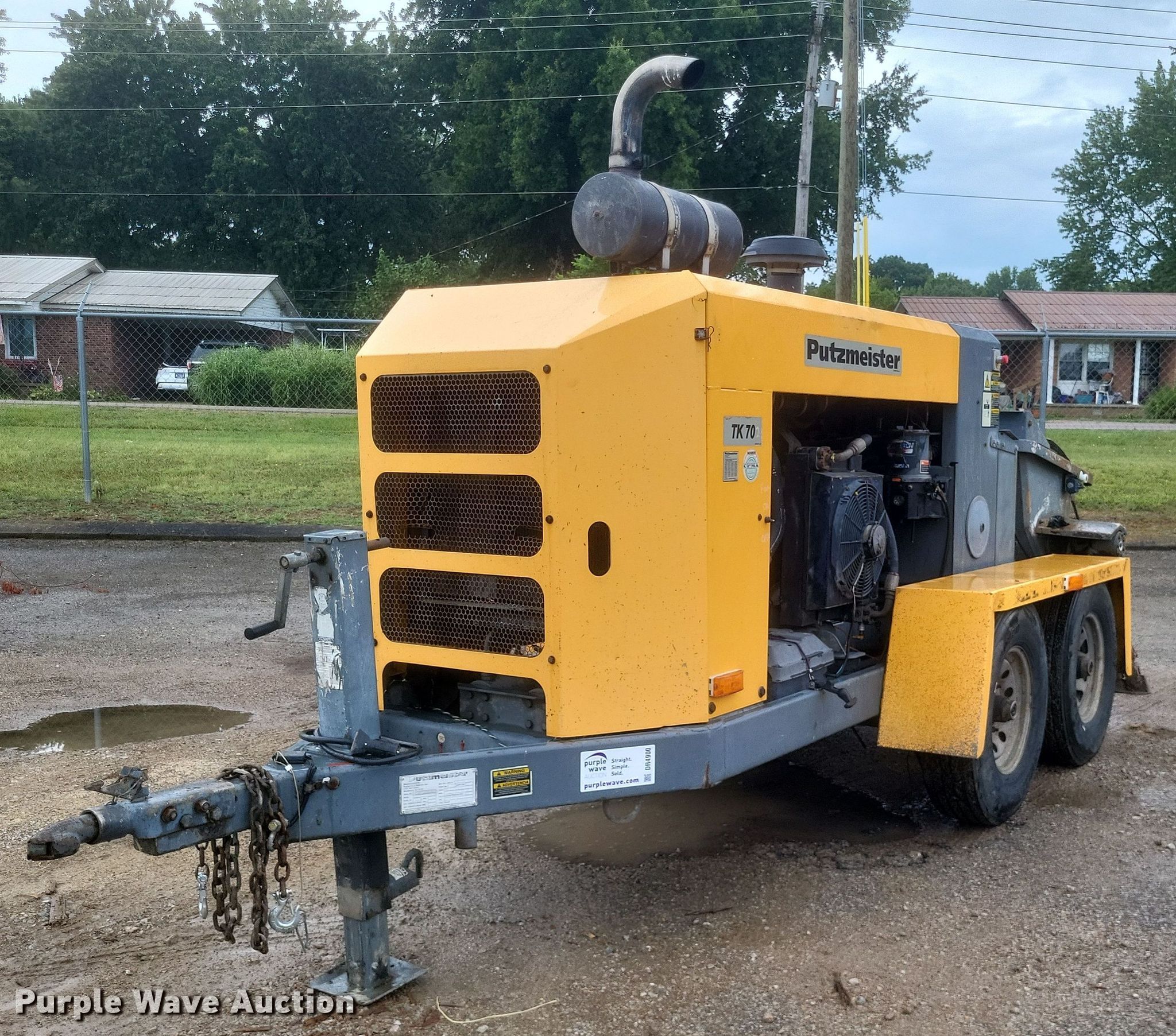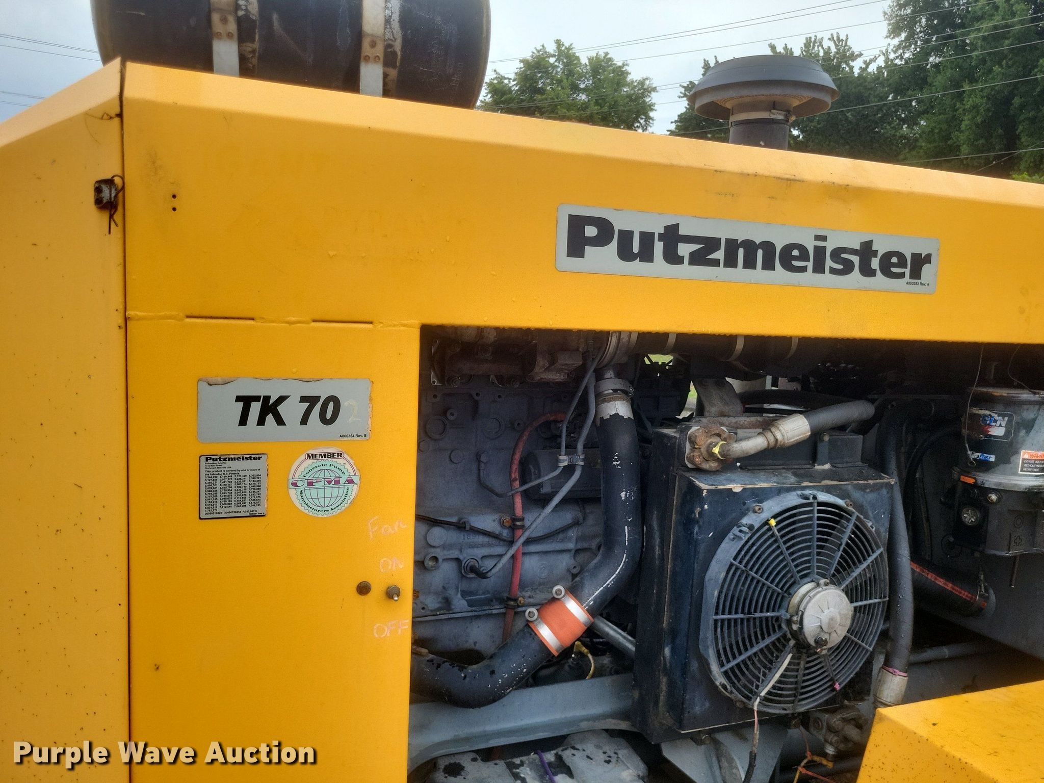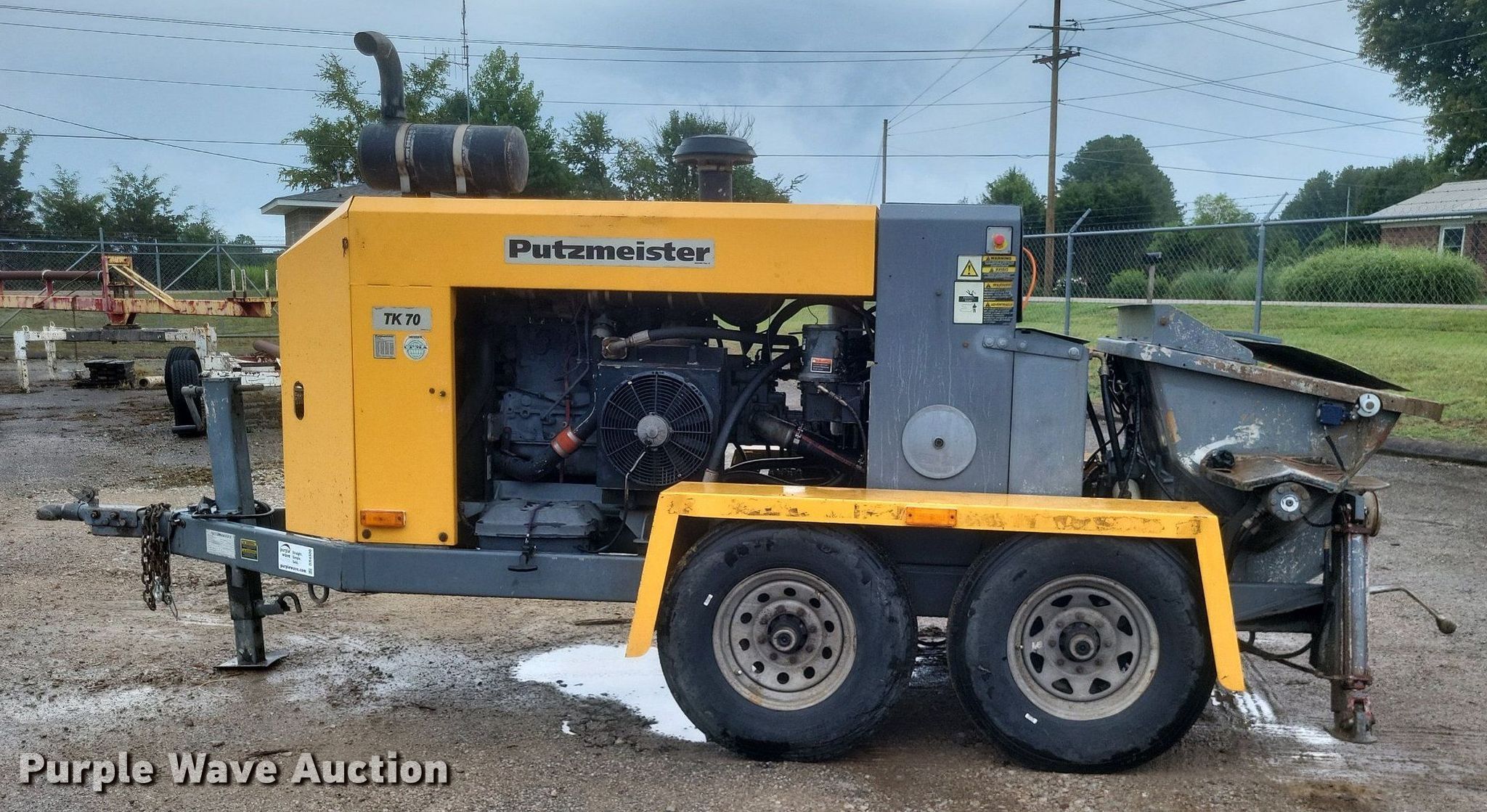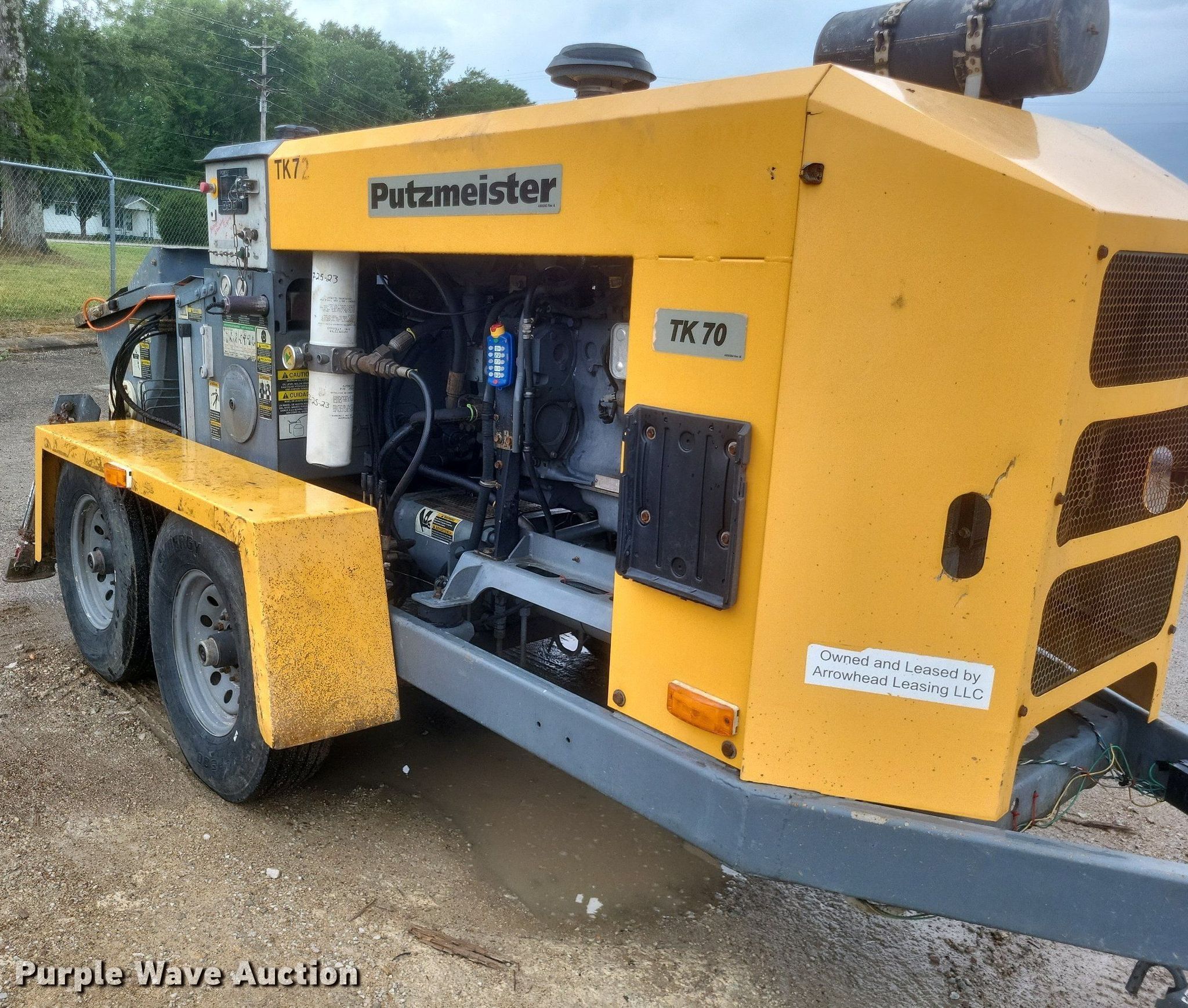 2015 Putzmeister TK70 concrete pump. Hours: 3,550 on meter, VIN: 1P9AP1620FR330214, Serial: 2106T4214. Engine Deutz TCD 2012 L04 2V, Cylinders: 4, Fuel type: Diesel, HP: 100. Features Remote control. Tires Size: 235/85R16. This is worksite support equipment and will not come with a title. Transfer of ownership documentation will be a bill of sale. Arrowhead Leasing LLC. Savannah, TN 38372