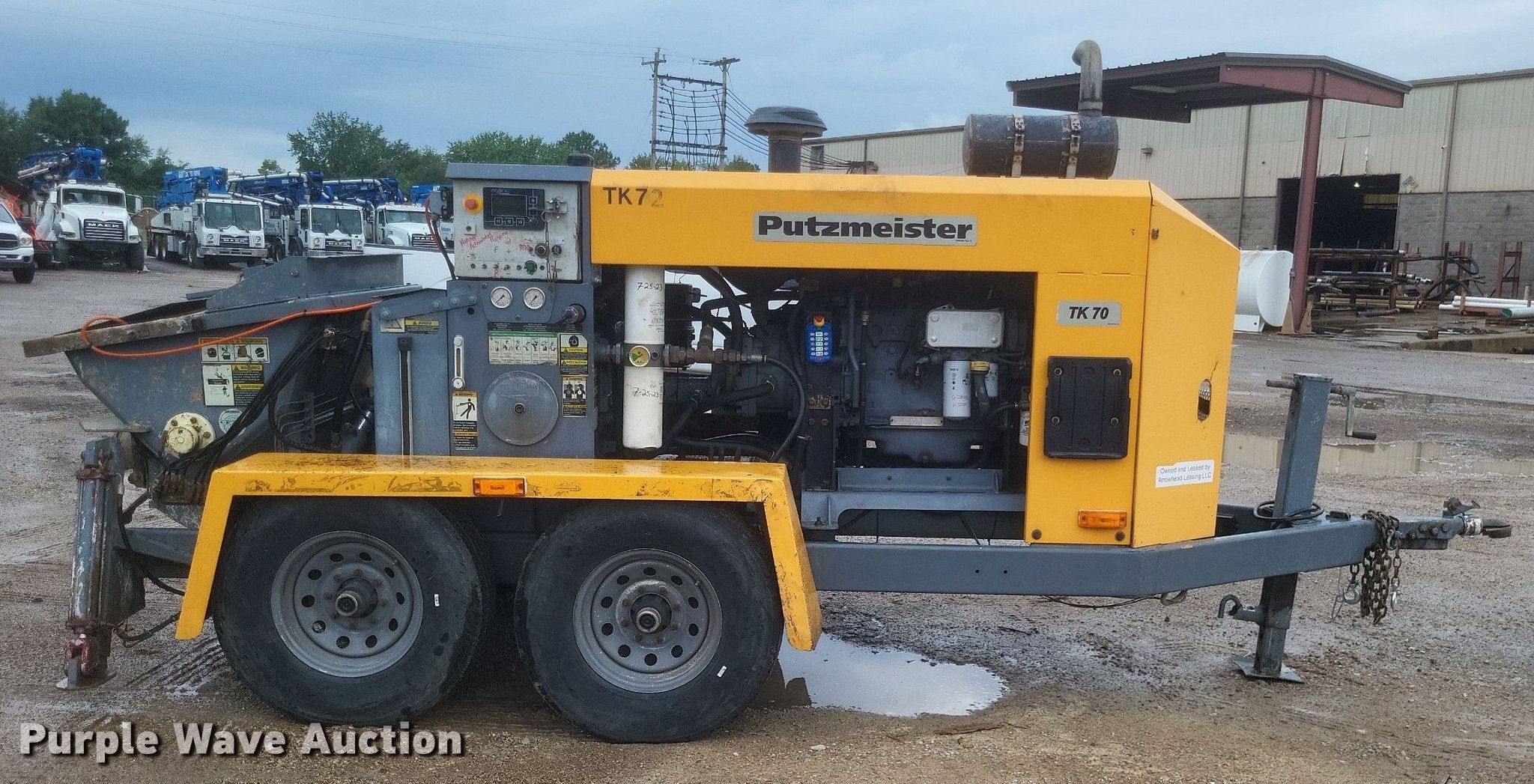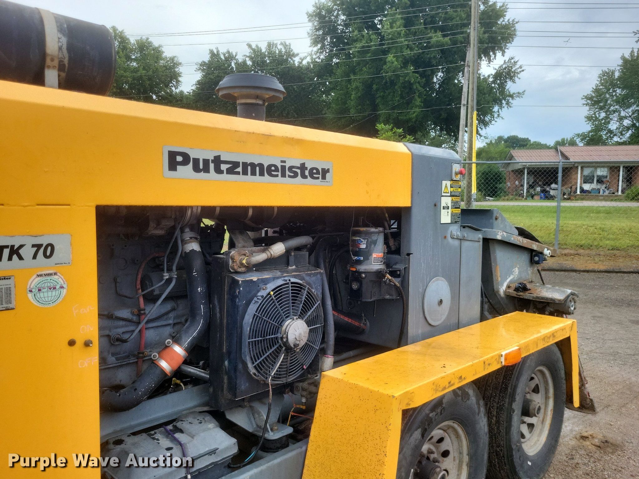Purple Wave is selling a used Concrete Pump in Tennessee. This item is a 2015 Putzmeister TK70 concrete pump with the following: Hours: 3,550 on meter, VIN: 1P9AP1620FR330214, Serial: 2106T4214