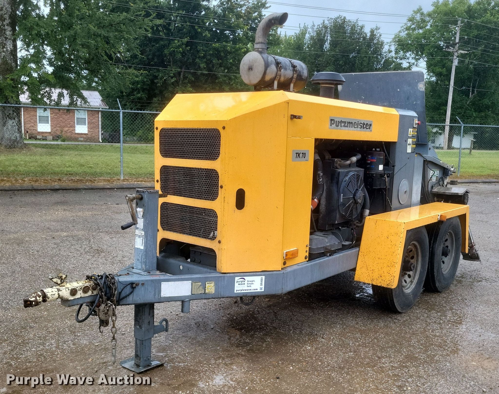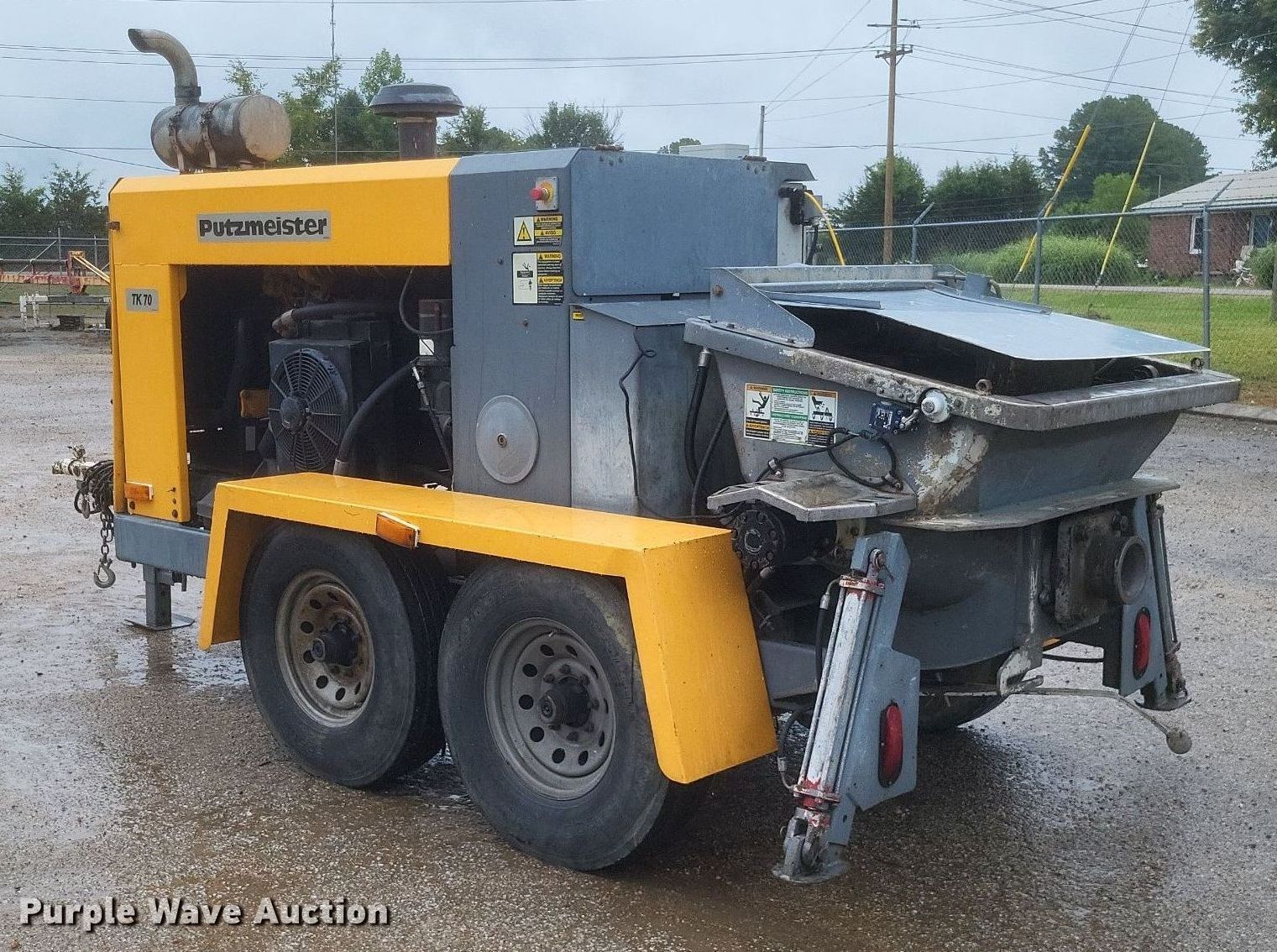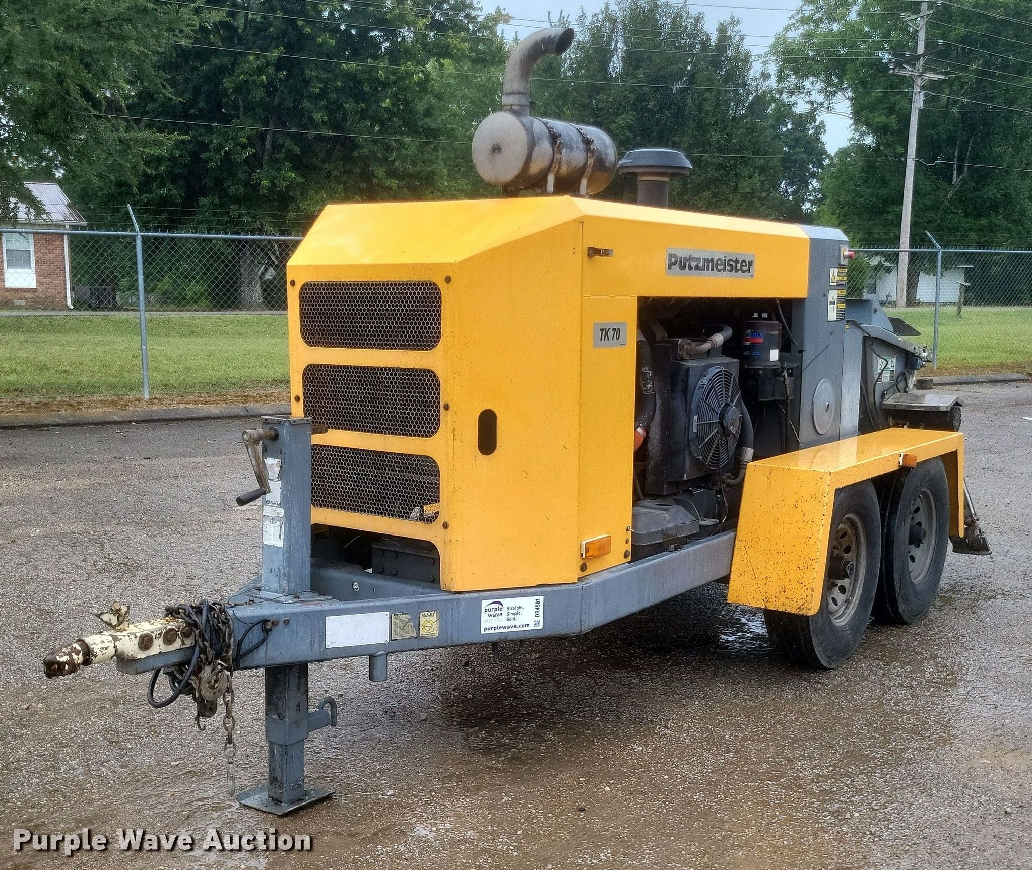 2015 Putzmeister TK70 concrete pump. Hours: 5,312 on meter, VIN: 1P9AP1626FR330167, Serial: 2106T4167. Engine Cylinders: 4, Fuel type: Diesel. Features Remote control. Tires Size: 235/85R16. This is worksite support equipment and will not come with a title. Transfer of ownership documentation will be a bill of sale. Arrowhead Leasing LLC. Savannah, TN 38372