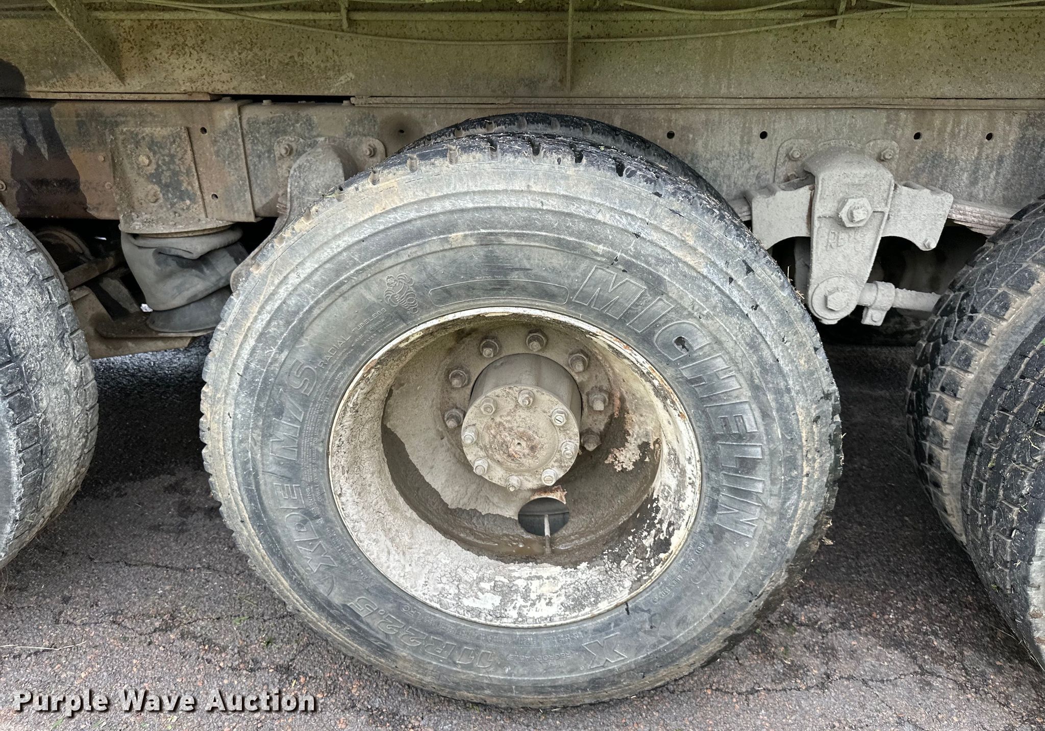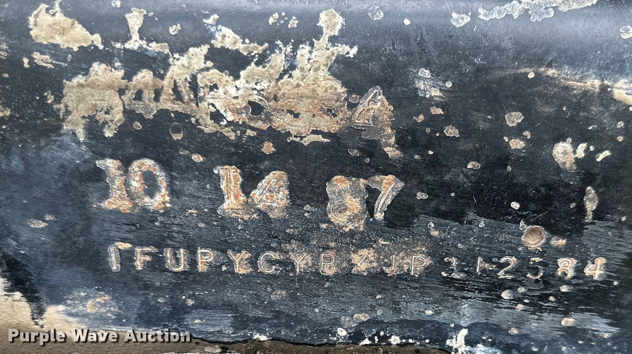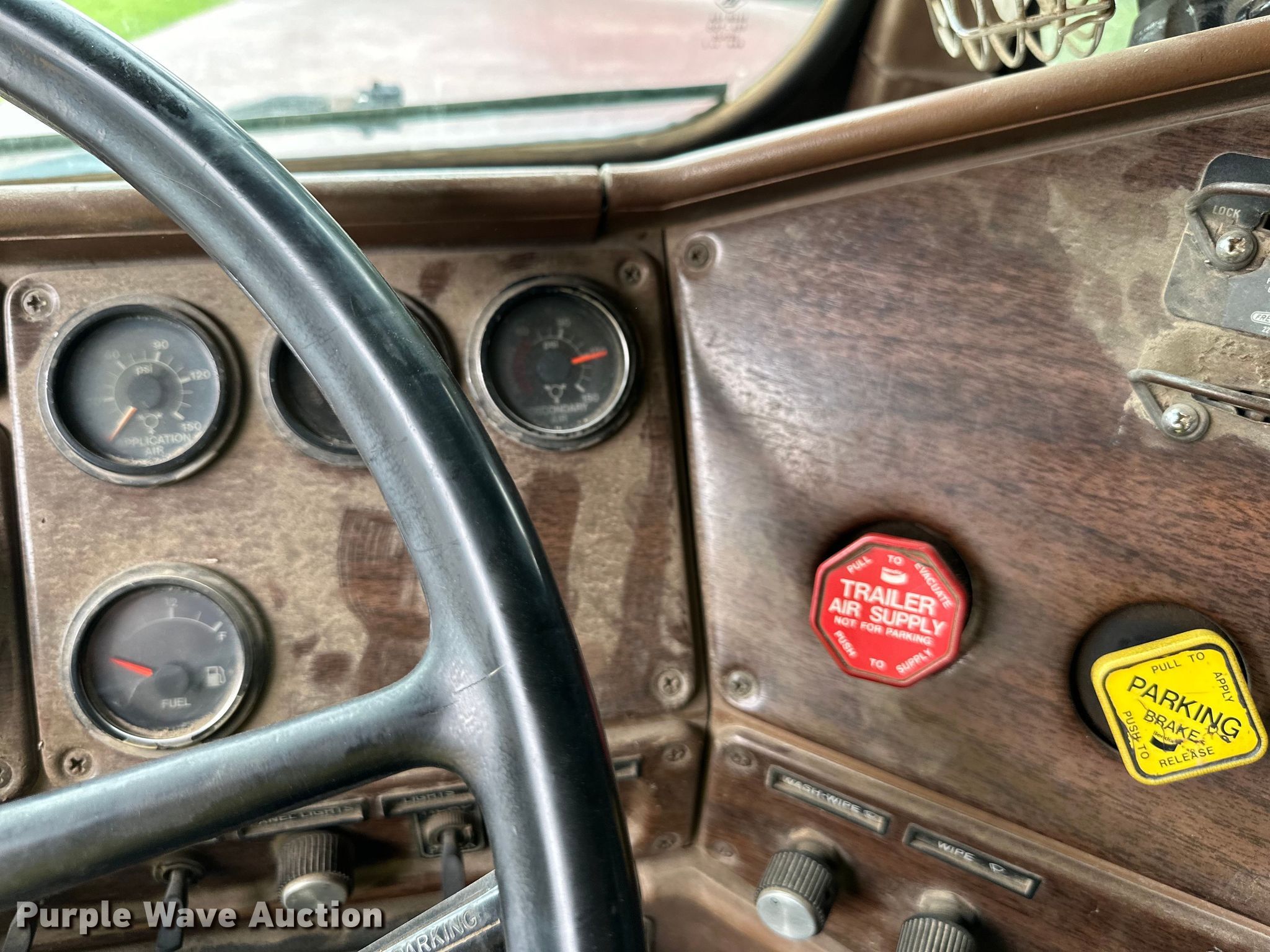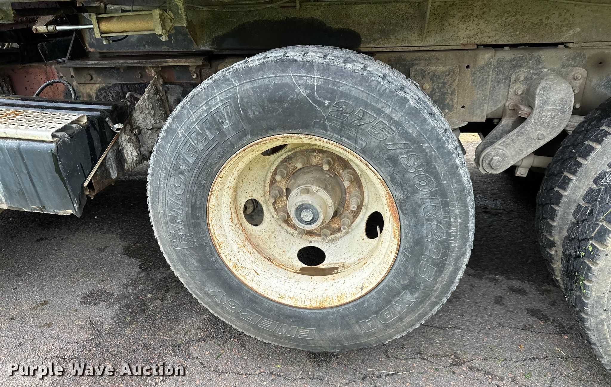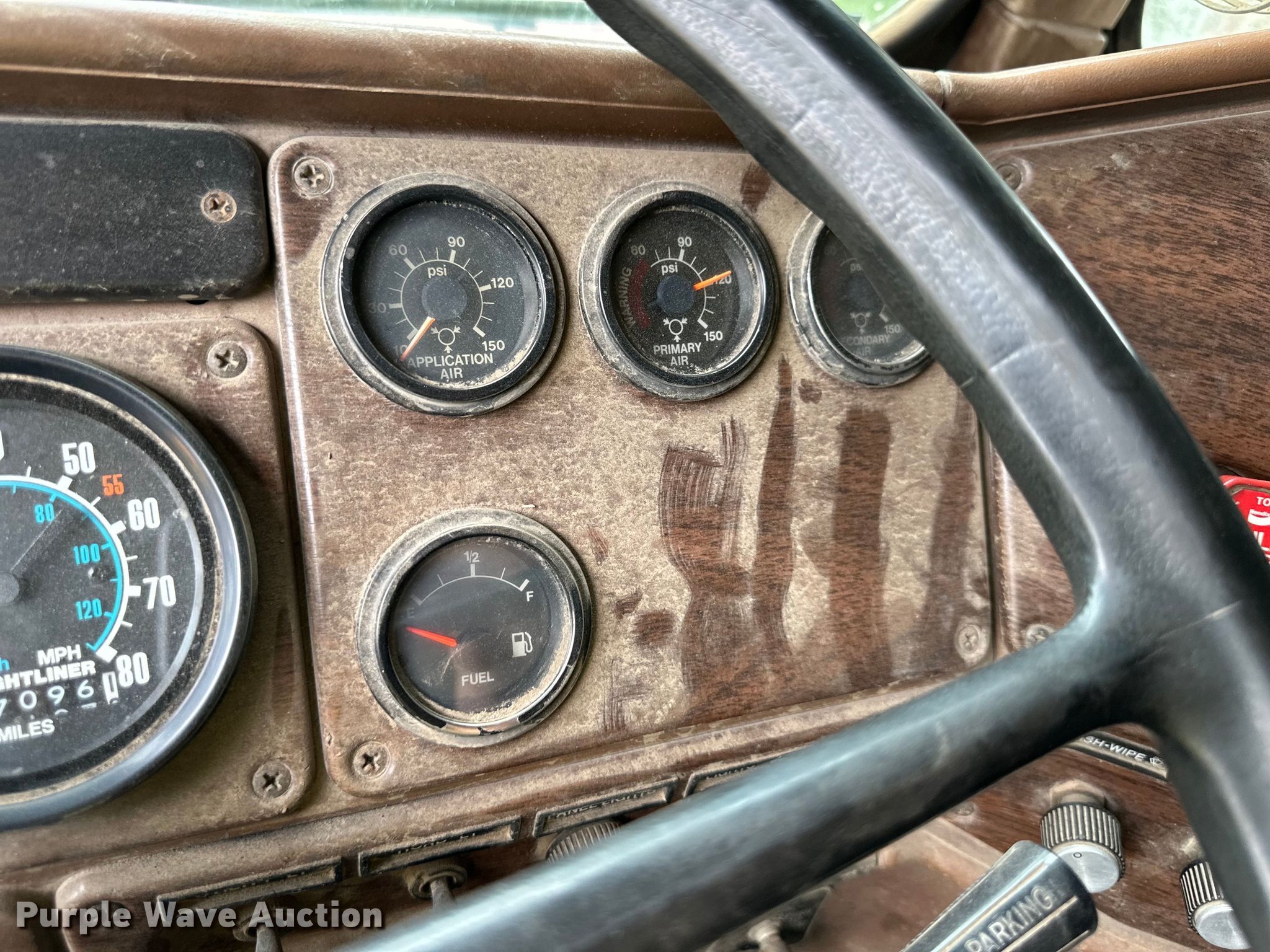 1988 Freightliner FLC dump truck. Miles: 17,096 on odometer, VIN: 1FUPYCYBXJP312584. Engine Cummins, Displacement: 14.0 L, Cylinders: 6, Fuel type: Diesel. Transmission Manual, Speed: 9. Chassis Axles: Tandem, Pusher axle, Differential lock: Inter-axle, Suspension: Spring, Brakes: Air, PTO. Interior AC, Heat. Features Dump bed 15' L x 96" W, Side height: 54", Bed type: Steel, Ram: Single, End gate: Air operated. Tires Front: 385/65R22.5, Rear: 11R22.5, Lift axle: 275/80R22.5. Notes Battery issues, parts may be missing, Dead battery. Kansas title. Exchange National Bank & Trust. Rushville, MO 64484