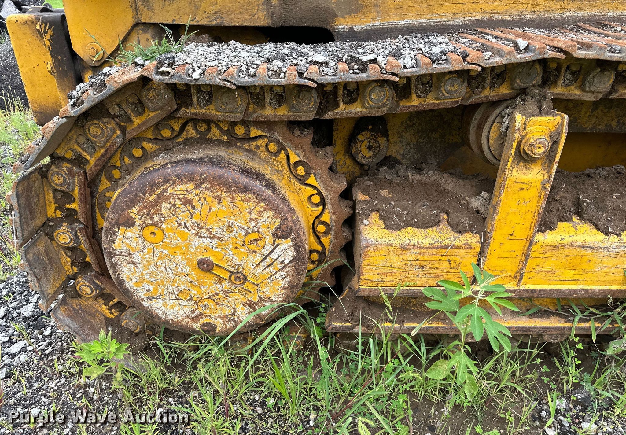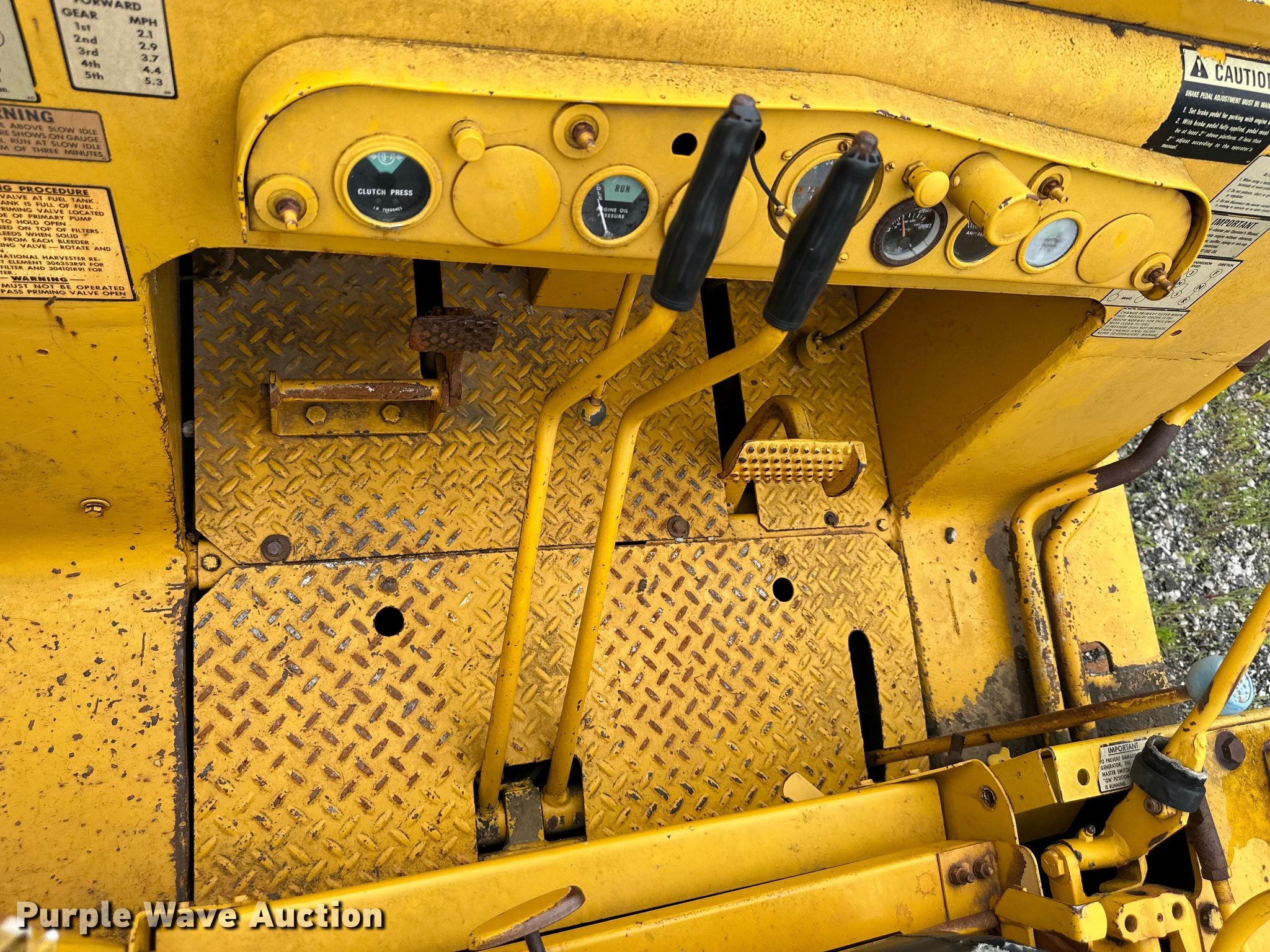 International Harvester 250 track loader. Serial: 8534. Engine International, Cylinders: 4, Fuel type: Diesel. Operators station Bucket controls: Joystick. Features Bucket Width: 94", Cutting edge: Weld-on, Teeth: 10. Tracks Width: 18", Grouser pads: Triple. Exchange National Bank & Trust. Atchison, KS 66002