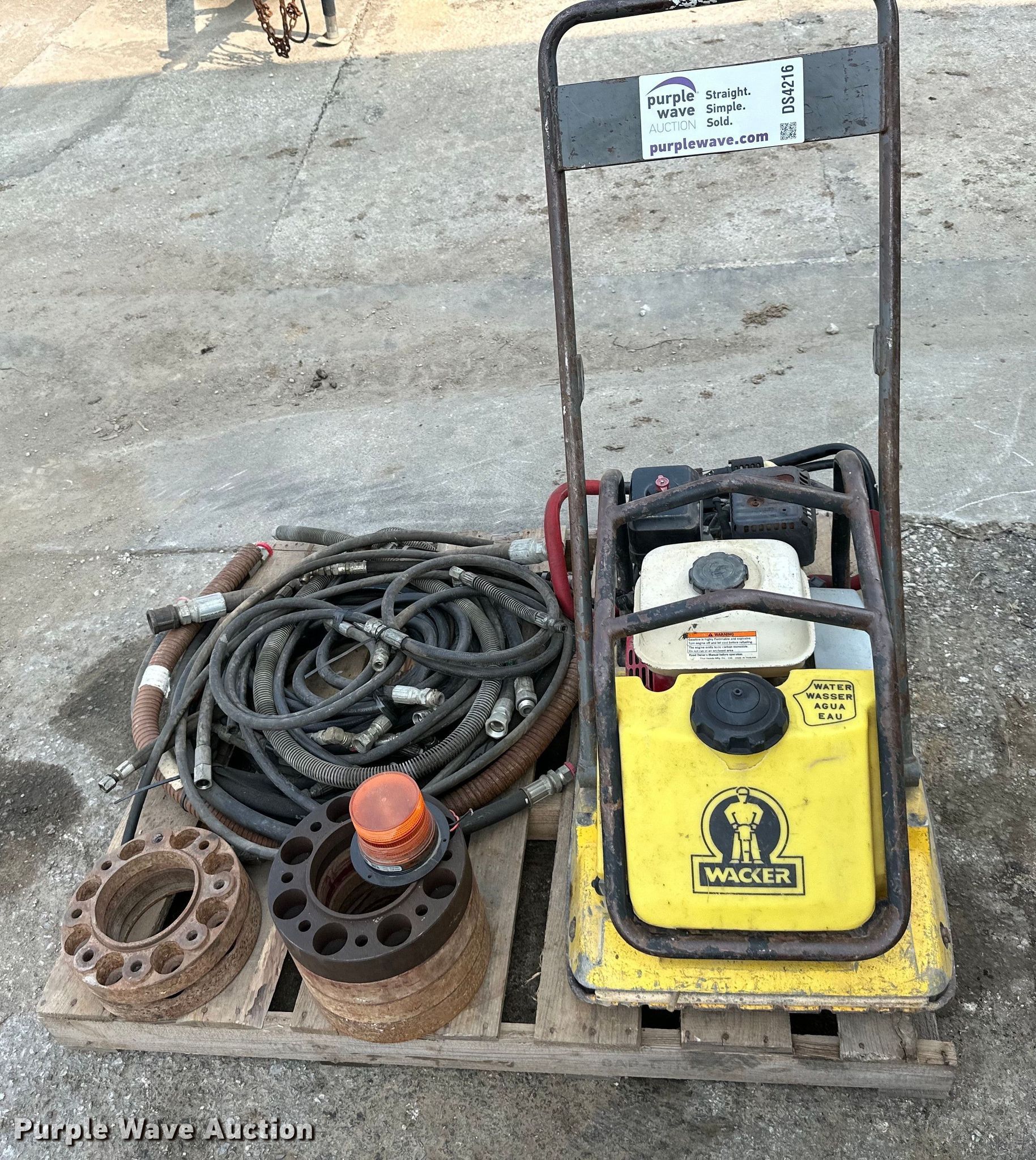 Purple Wave is selling a used Walk Behind Compactor in Missouri. This item is a Wacker Neuson plate compactor with the following: Skid steer wheel spacers, Hydraulic hoses