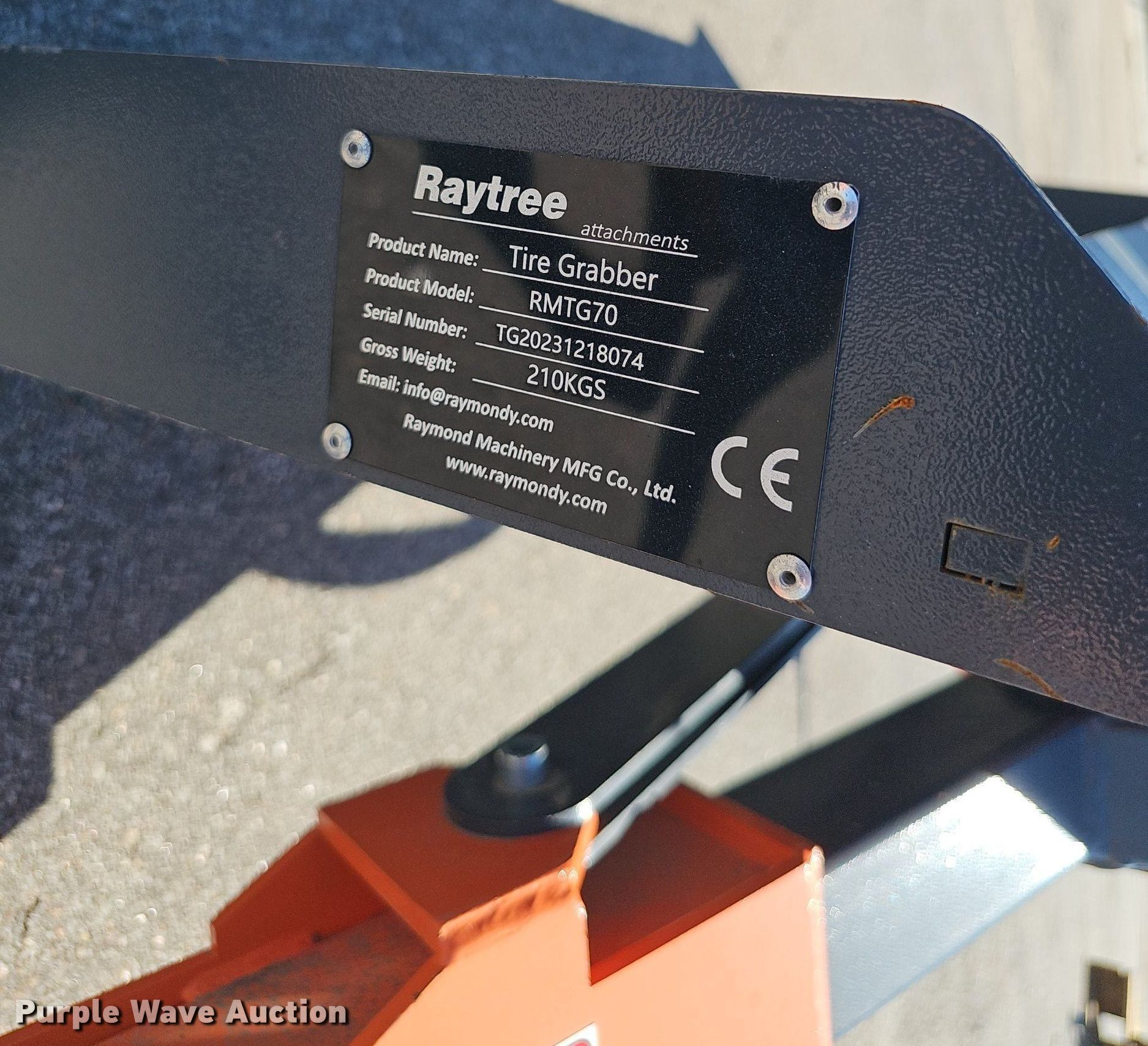 Purple Wave is selling a used Skid Steer Attach. in Nebraska. This item is a 2023 Raytree Attachments RMTG70 skid steer tire grabber with the following: Serial: TG20231218074, Tire diameter capacity: 50" to 70", Unused