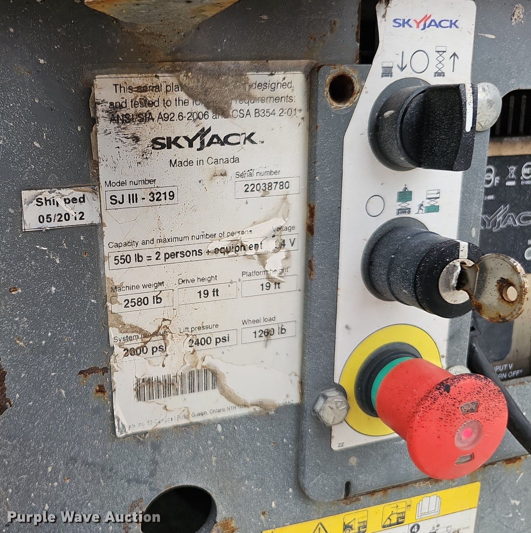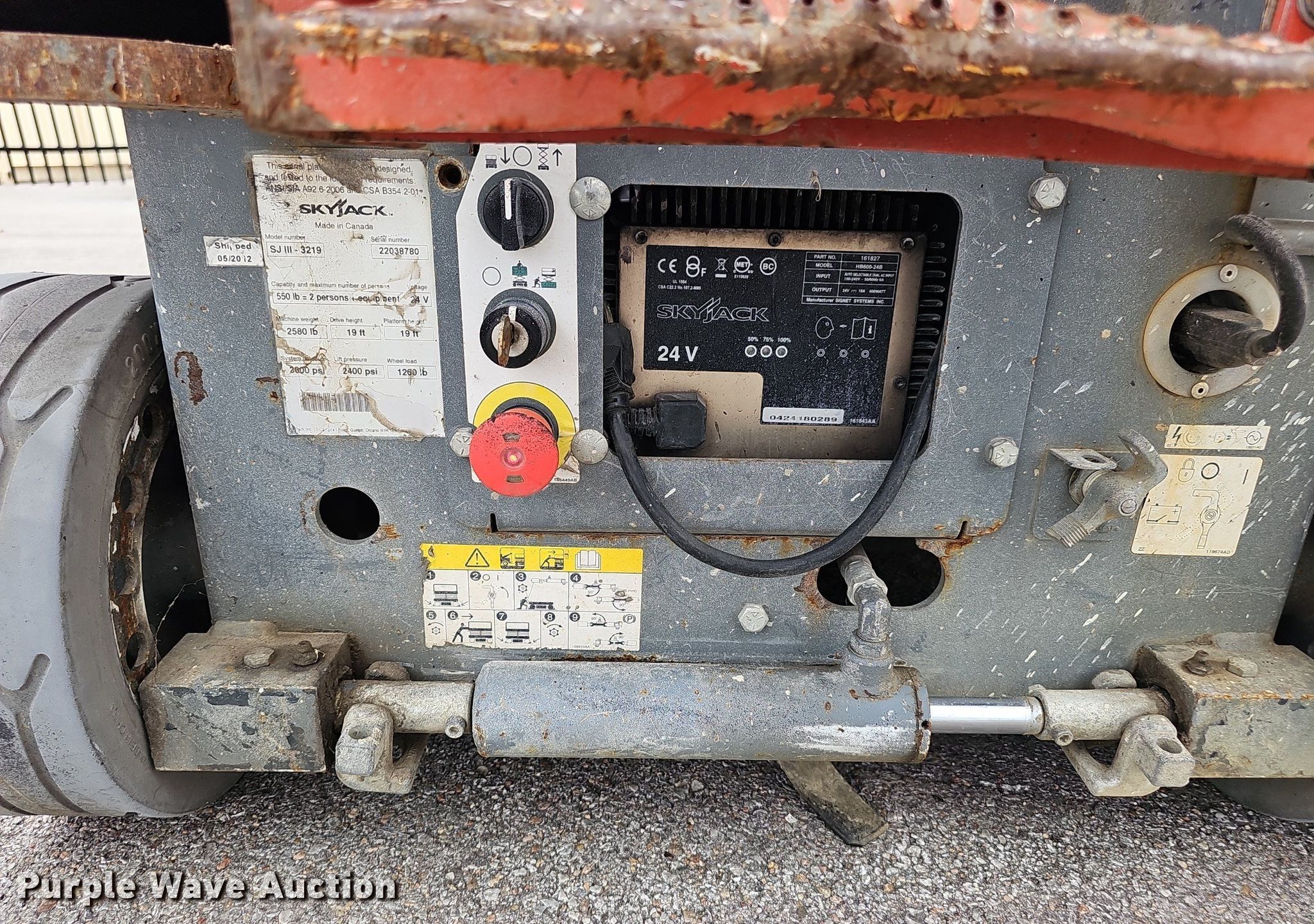 Purple Wave is selling a used Scissor or Vertical Lift in Nebraska. This item is a 2012 Skyjack SJIII 3219 scissor lift with the following: Hours: 223 on meter, Serial: 22038780