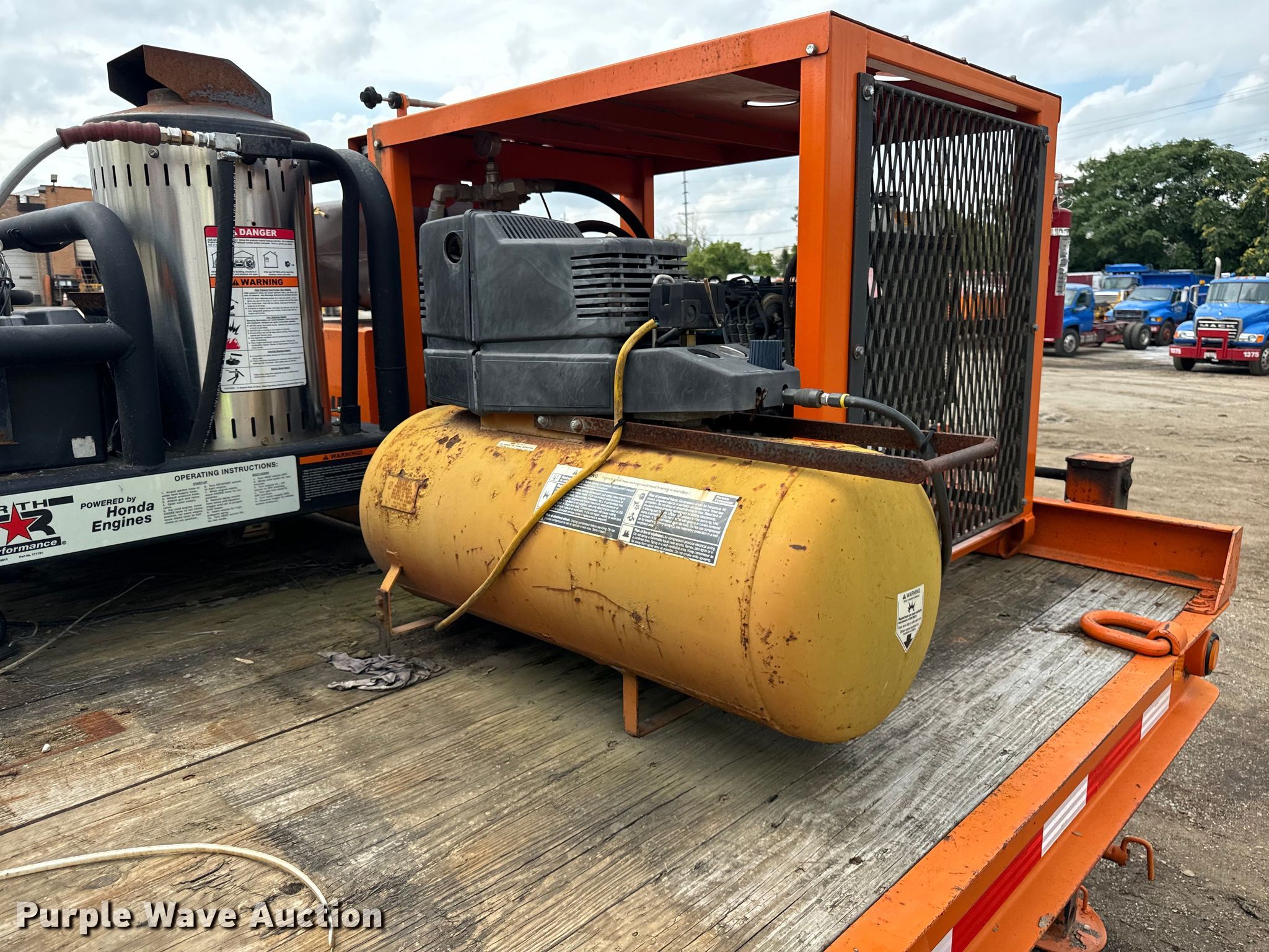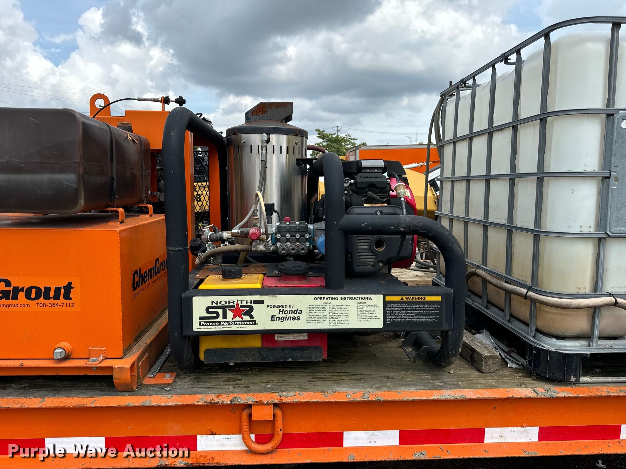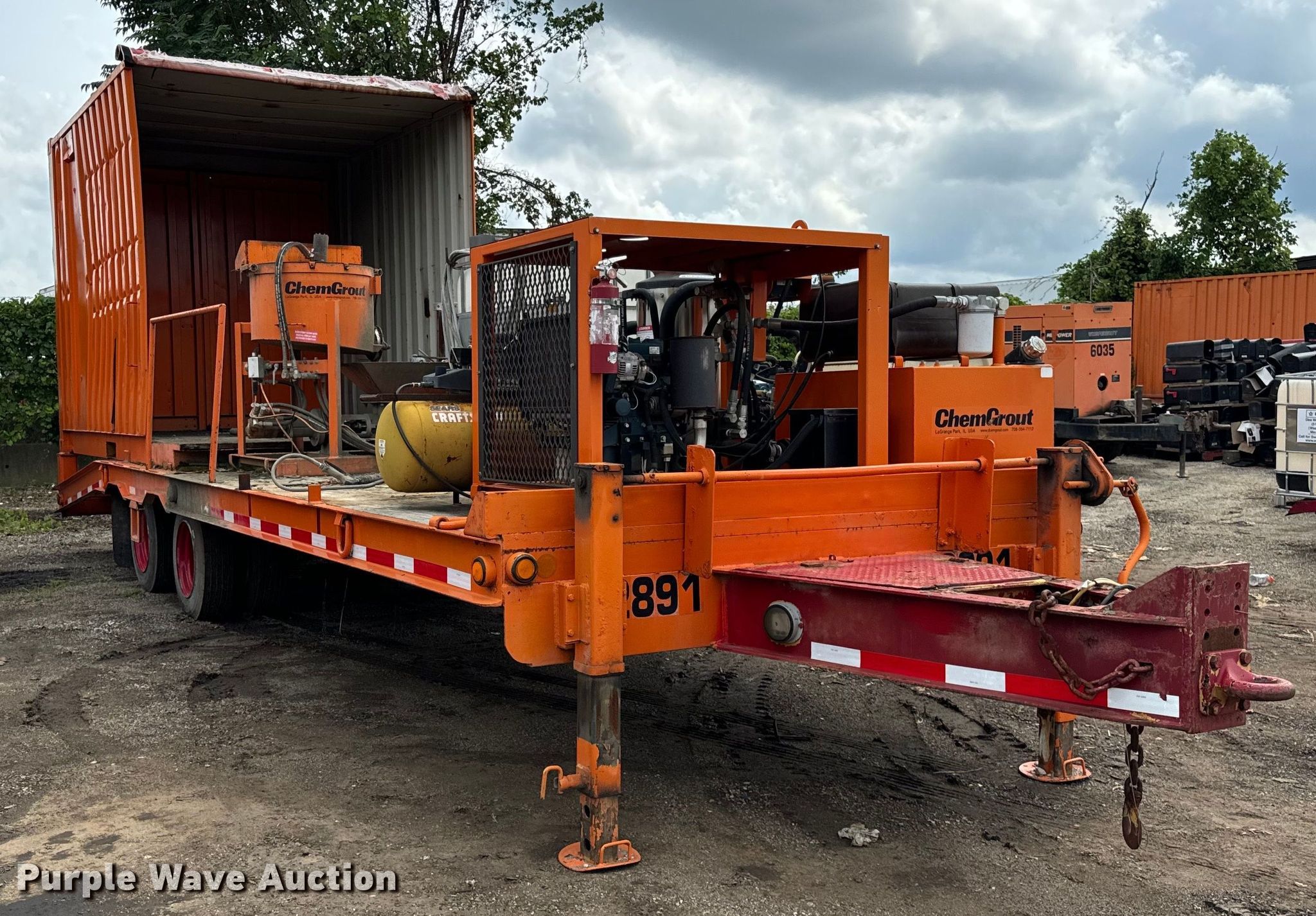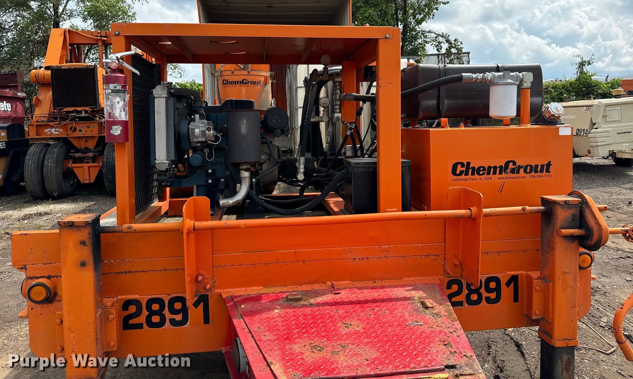 2011 Belshe DT255 grout trailer. VIN: 16JF02128B1046183, Unit #: 2891. Dimensions Overall: 32' 6" L x 101" W, Deck: 21' L x 101" W, Deck height: 36", Tail length: 6' 6". Features Deck type: Steel, Storage area. Chassis Hitch: Pintle, Landing gear: Dual, Suspension: Spring, Brakes: Electric, Axles: Tandem, GVWR: 25,500 lbs, GAWR: 10,000 lbs. Tires Steel wheels, Size: 215/75R17.5. Grout mixer Chem Grout, Hours: 174 on meter. Engine Kubota D902, Cylinders: 3, Fuel type: Diesel. Features Air compressor Sears, Capacity: 25 gallons, Hot pressure washer North Star 77721 Engine Honda GX630.. Notes Unknown operating condition of air compressor, Non-operational pressure washer. Illinois title. Builders Asphalt, LLC. Hillside, IL 60162