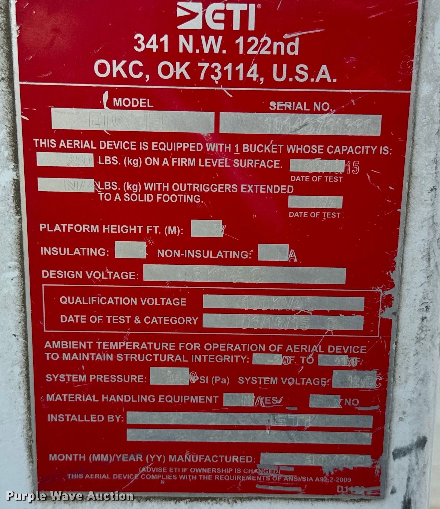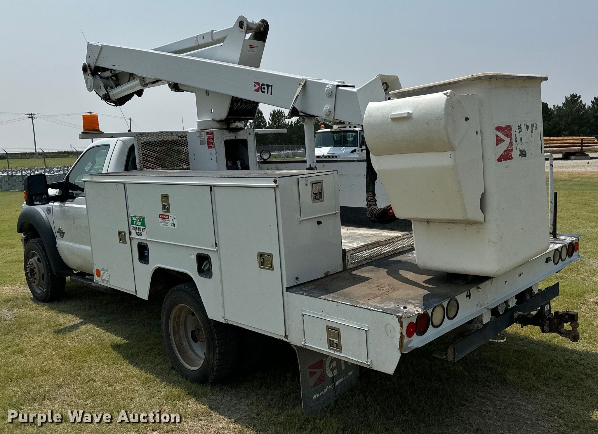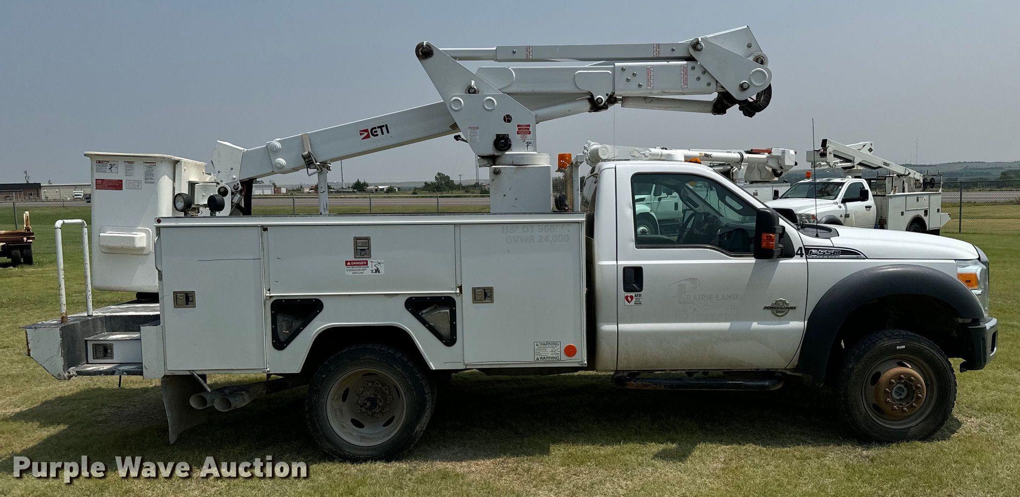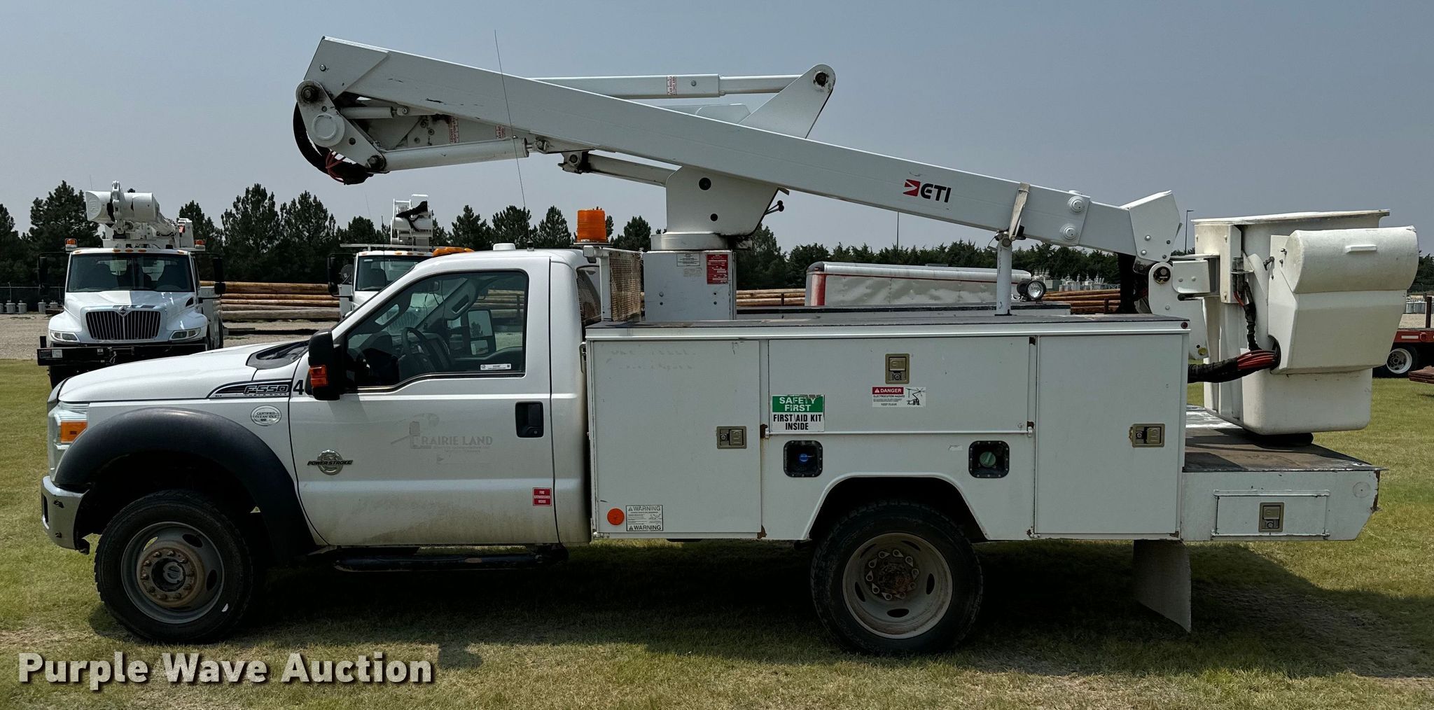2015 Ford F550 Super Duty XLT bucket truck. Miles: 157,020 on odometer, VIN: 1FDUF5HT7FEC37510. Engine Displacement: 6.7L, Cylinders: 8, Fuel type: Diesel. Transmission Automatic. Chassis Four wheel drive, Axles: Single, Suspension: Spring, Brakes: Hydraulic, PTO, GVWR: 19,500 lbs, Wheelbase: 141". Interior AC, Heat, Heated mirrors, Power windows, Power locks, Cruise control, Auxiliary controls, Brake controller. Features Bed 12' L x 96" W, Boom ETI ETC37H, Serial: 1014C711360, Mast height: 37', Maximum lift capacity: 350 lbs, Maximum lift height: 42', Boom type: Articulating, Telescopic, Man basket, Boom controls Ground, Platform/ basket.. Tires Size: 225/70R19. Kansas title. Title distribution may be delayed up to 14 days from verification of funds. Prairie Land Electric Coop Inc.. Norton, KS 67654