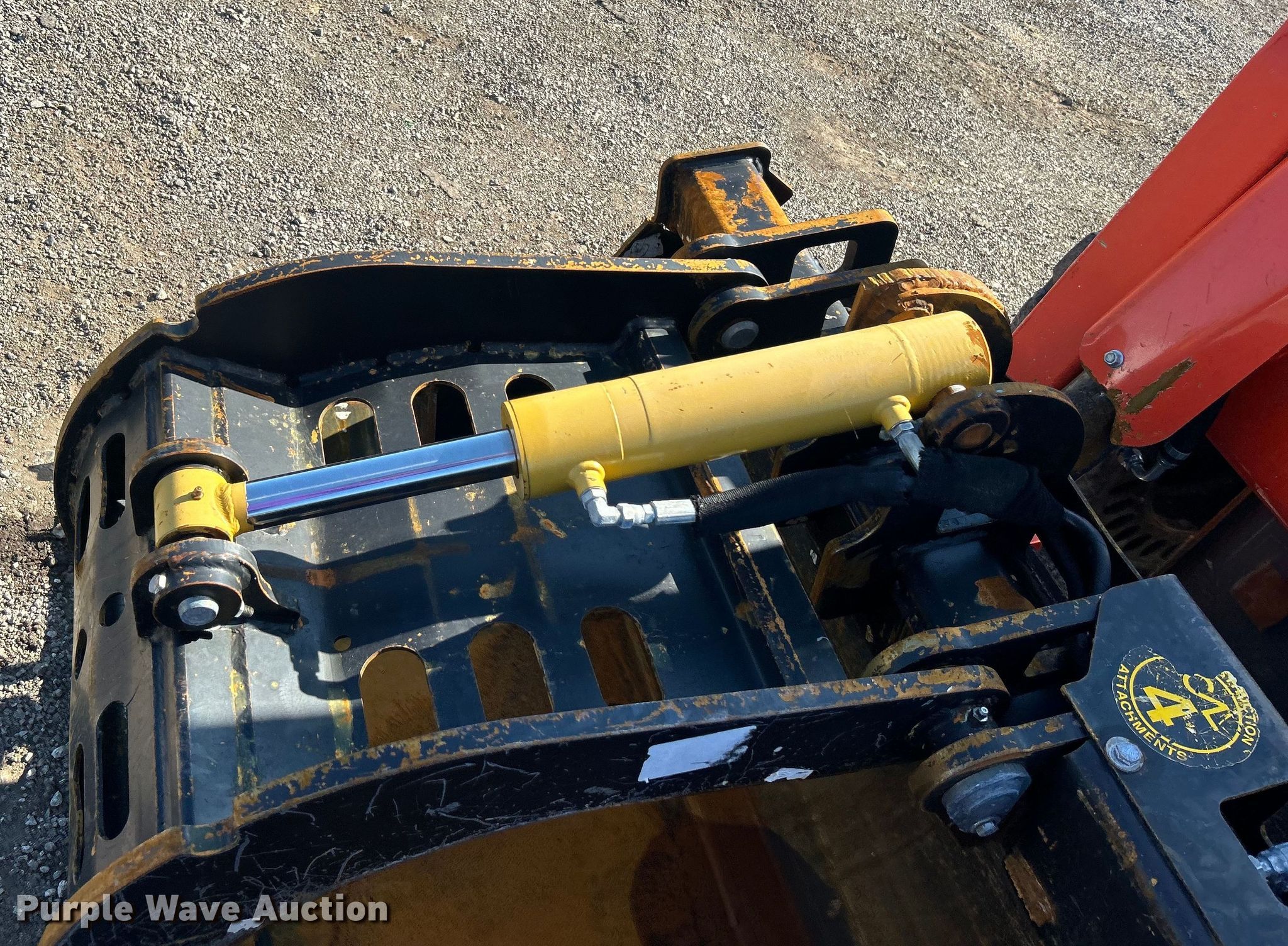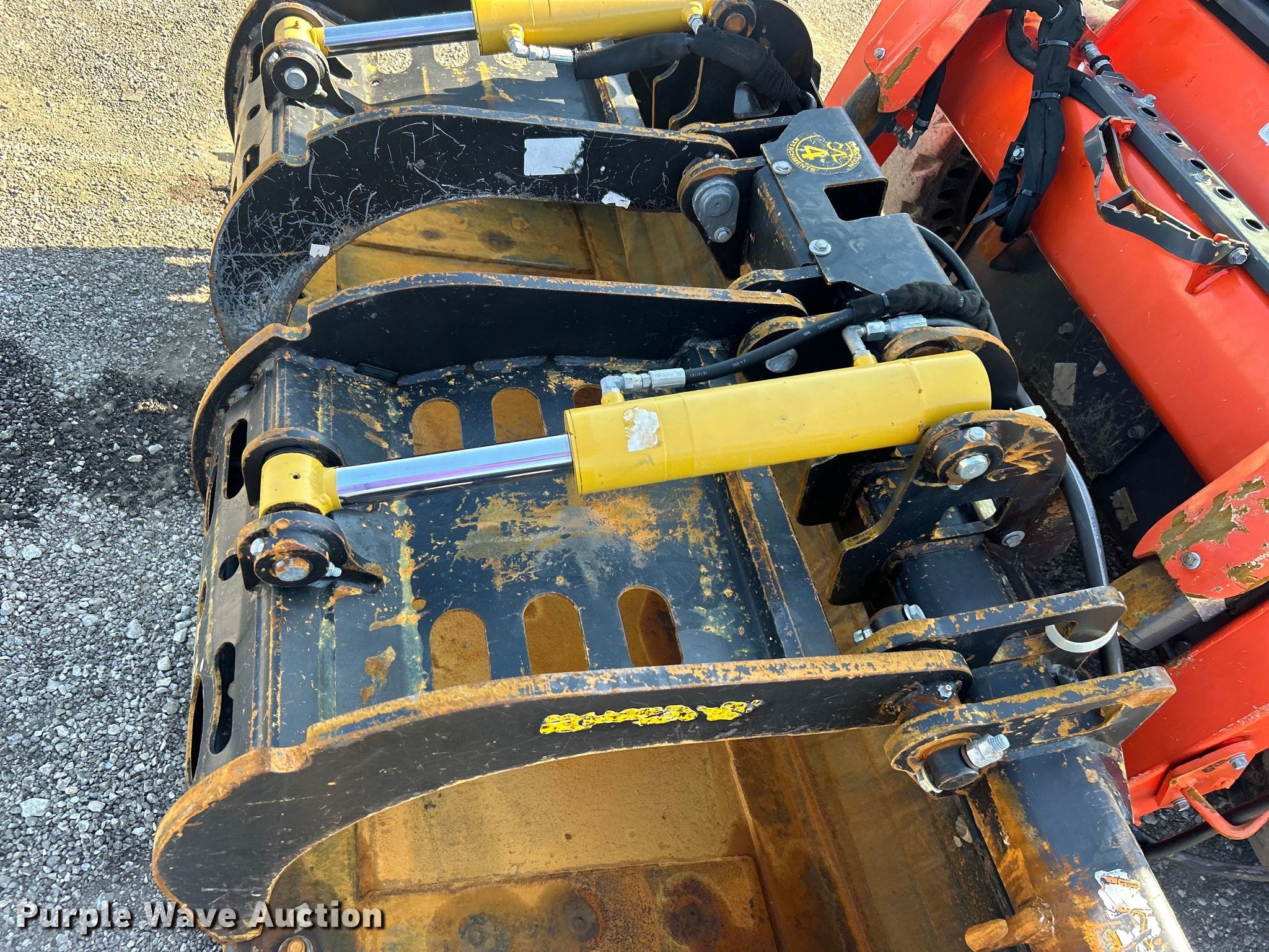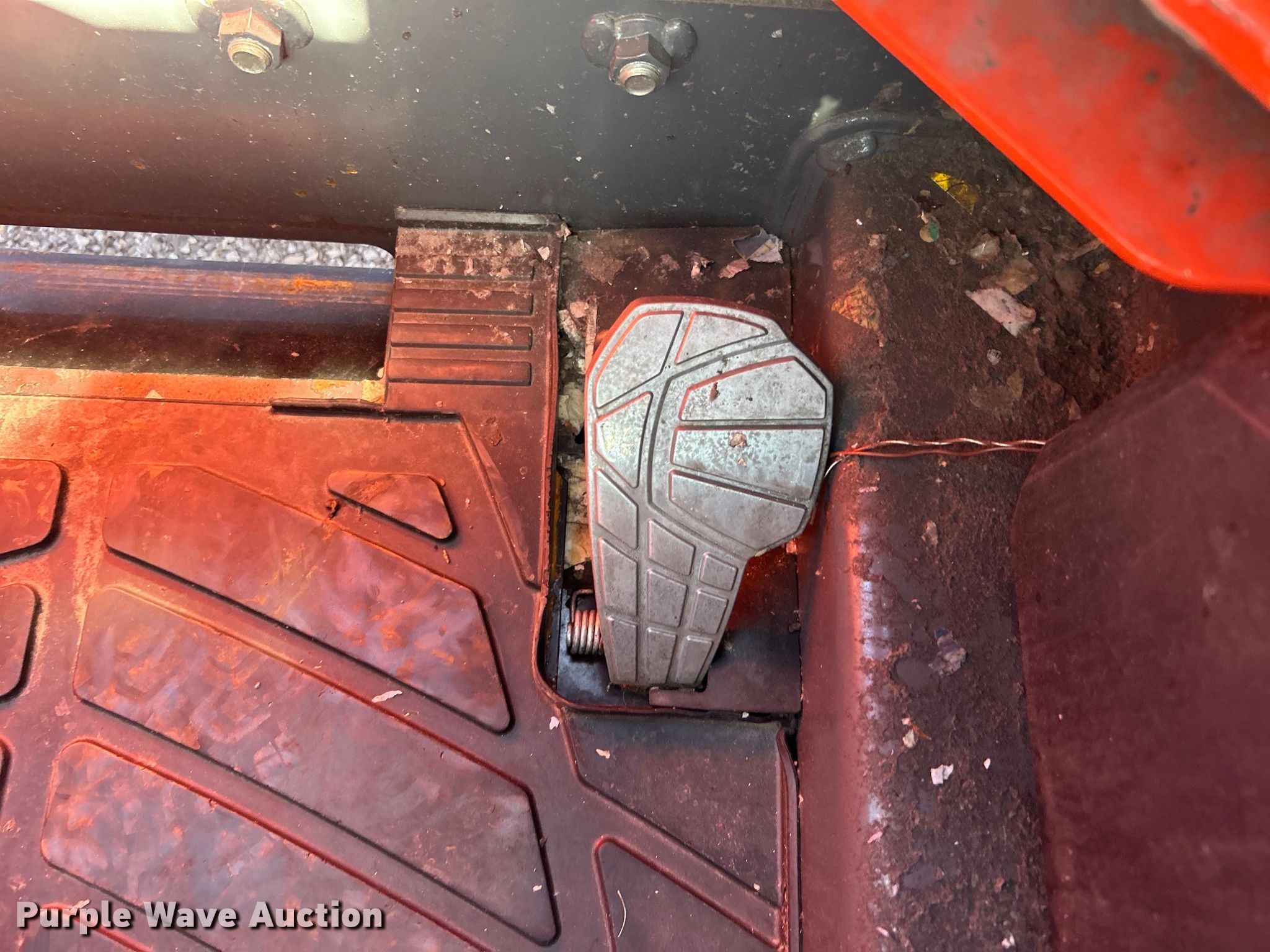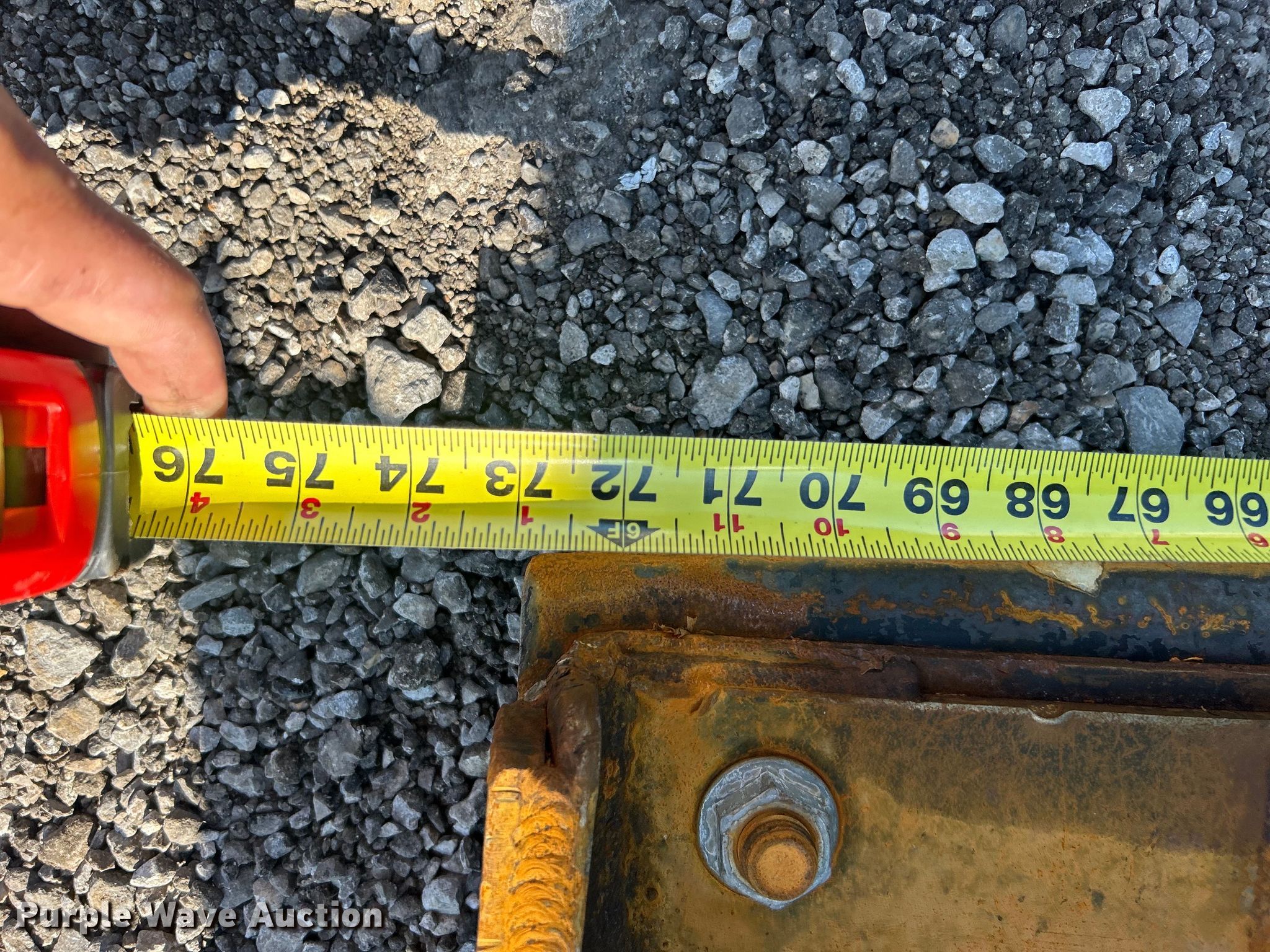 2018 Kubota SSV75 skid steer loader. Hours: 5,602 on meter, Serial: 23513. Engine Kubota V3307, Displacement: 3.3L, Cylinders: 4, Fuel type: Diesel, kW: 54. Transmission Hydrostatic, Two speed travel. Operators station Enclosed cab, AC, Heat, Bucket control: Hand, Electronic Monitoring System panel. Features Auxiliary hydraulics, Quick coupler: Manual, Bucket Width: 73", Cutting edge: Bolt-on. Tires Size: 33x6x12, Solid. Notes Door missing. 15107 North 137th East Avenue. Collinsville, OK 74021