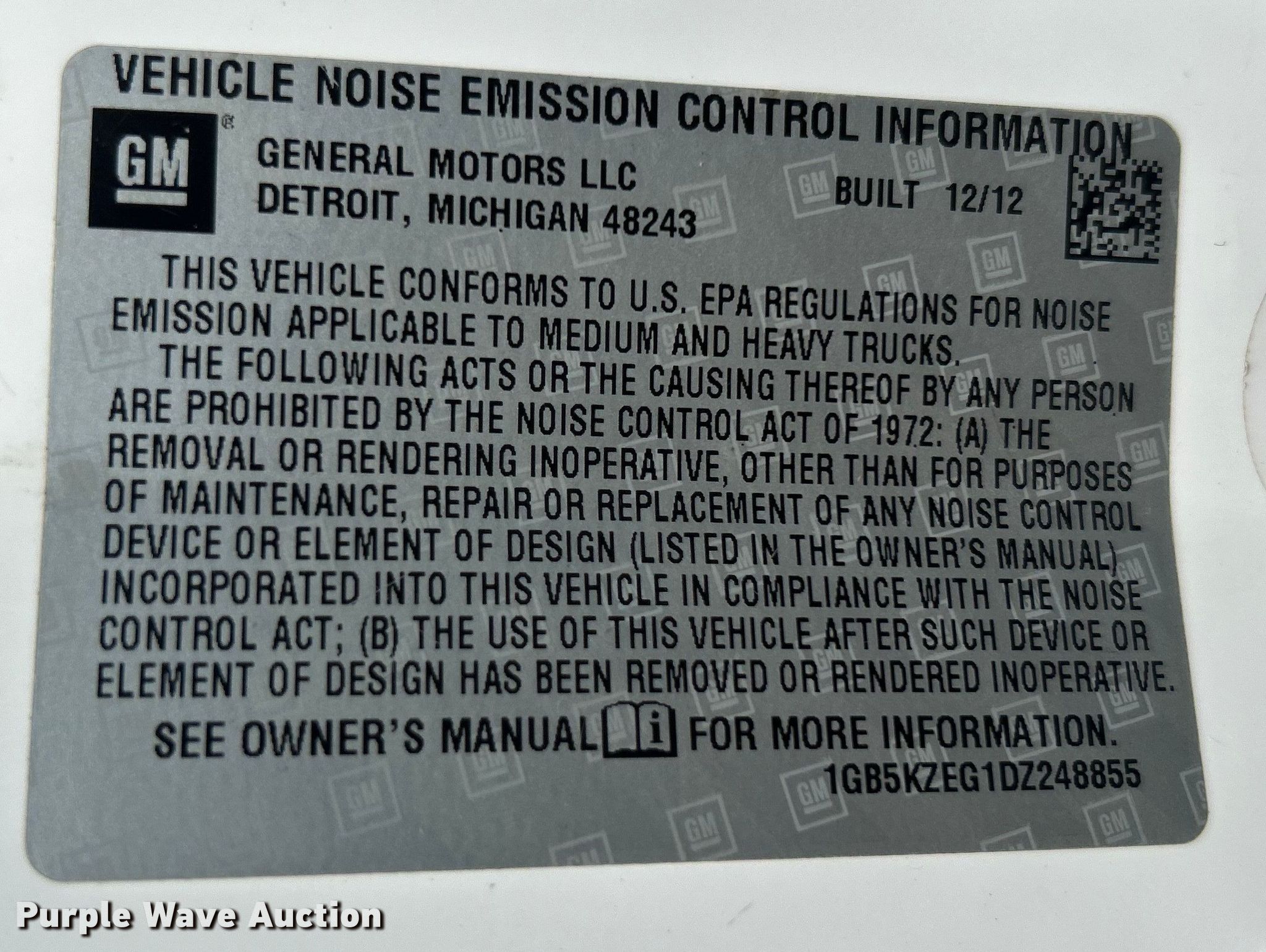 - VIN: 1GB5KZEG1DZ248855